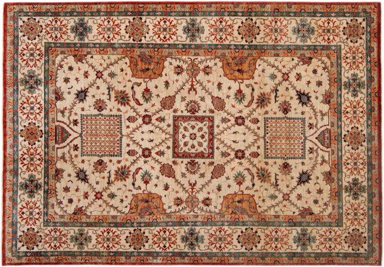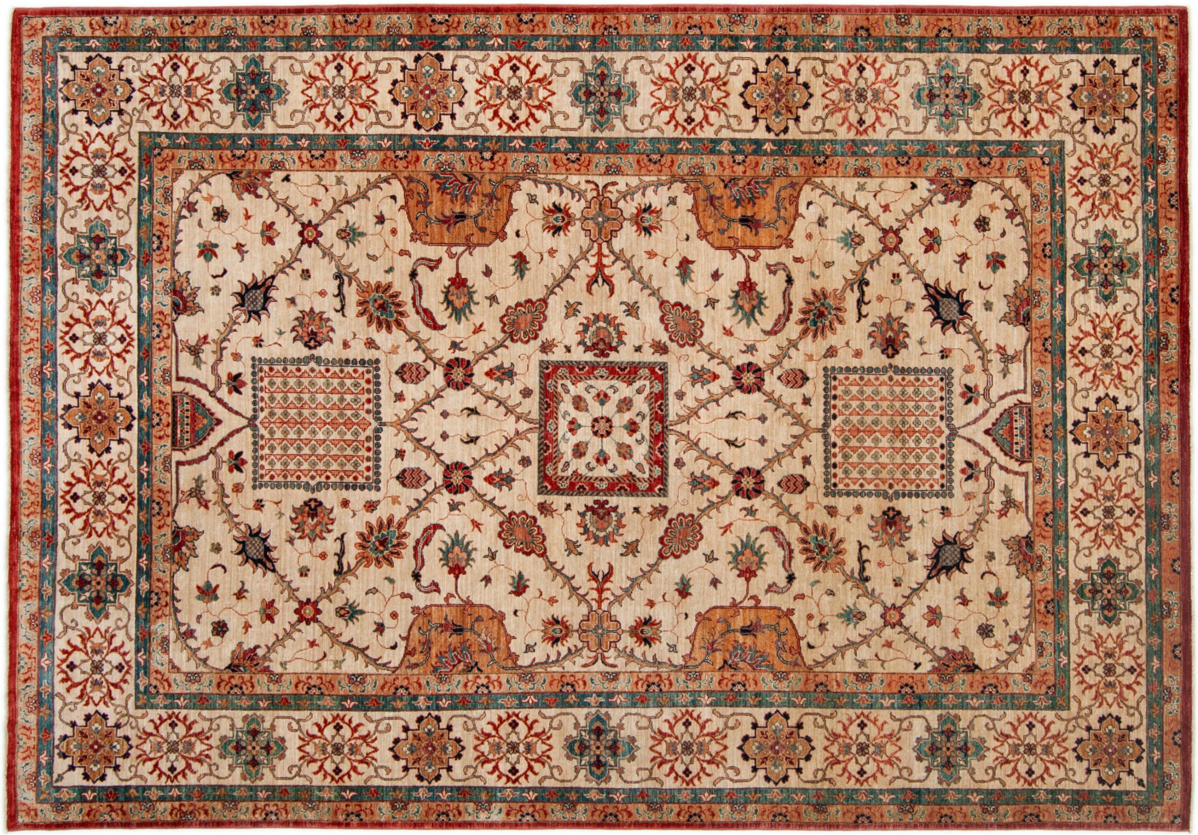Maton nro.: 311715007696284 Koko: 296x200 cm Paksuus: n. 6 mm Solmua: 200 000 - 250 000 / m² Työstäminen: Solmittu käsin Nukka: Käsinkehrätty villa Loimi: Puuvilla Alkuperä: Pakistan Ikä: uusi Paino: n. 21 kg Tunnetaan myös nimellä Ariana Készleten: Uniikki - Csak 1 van készleten