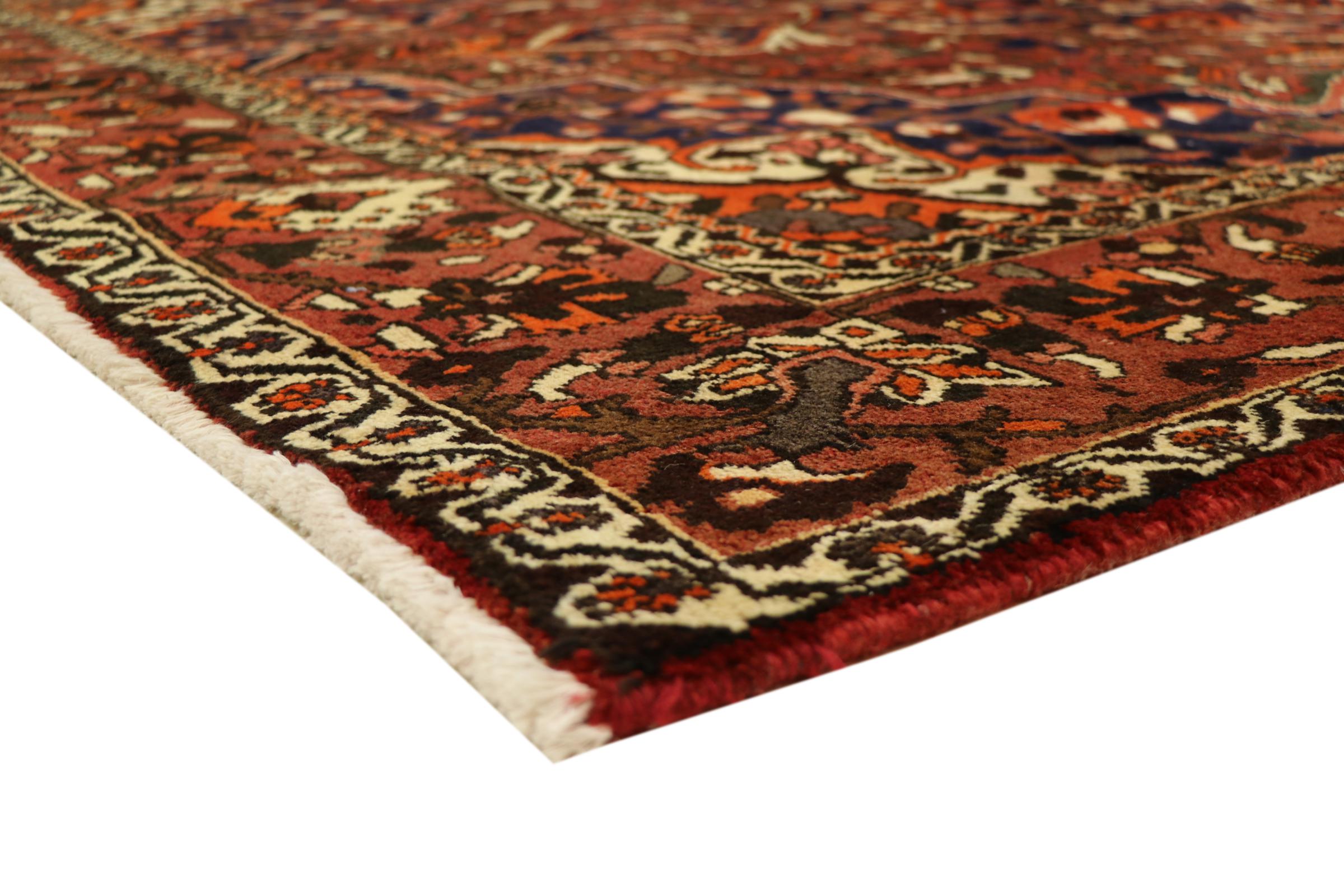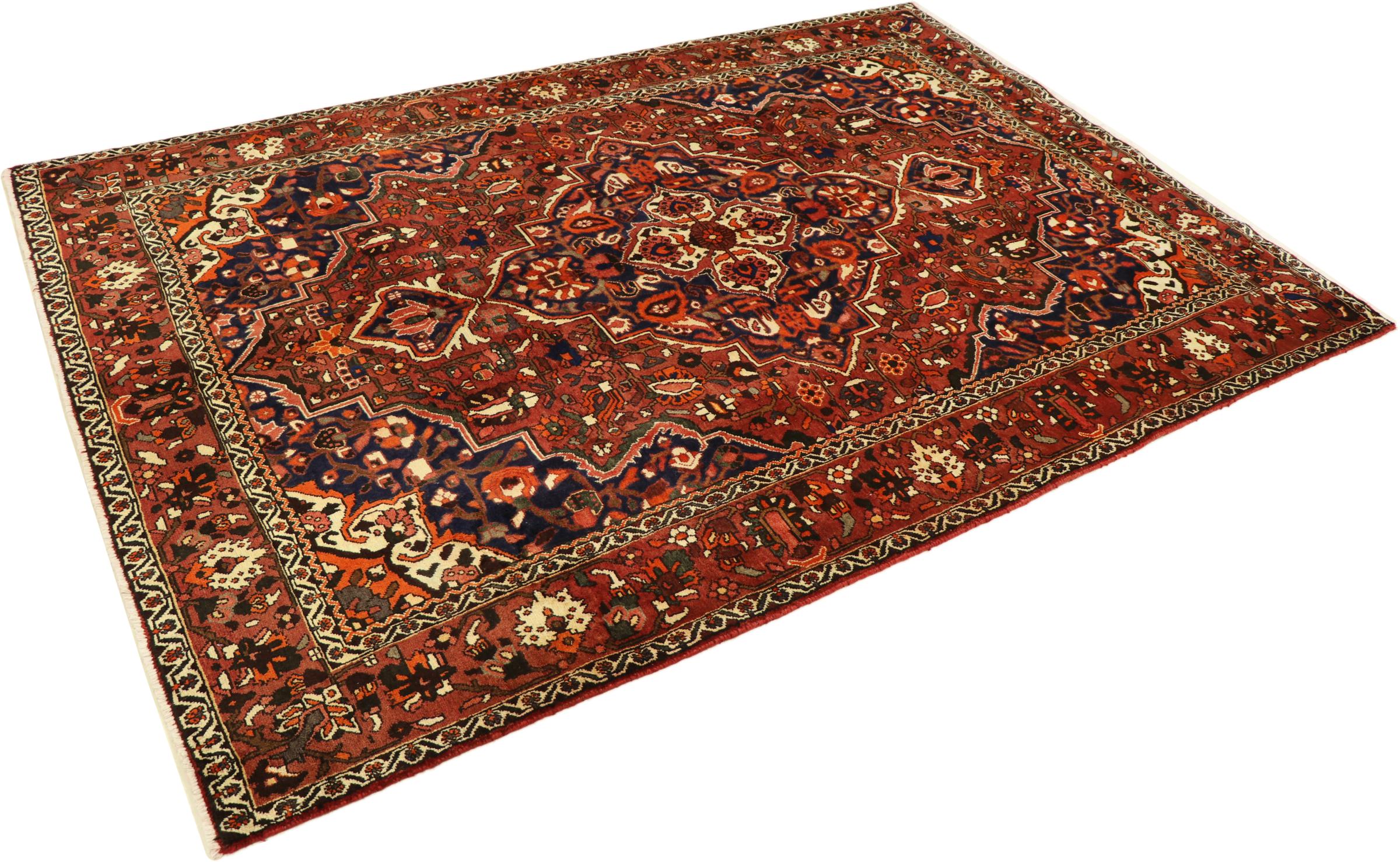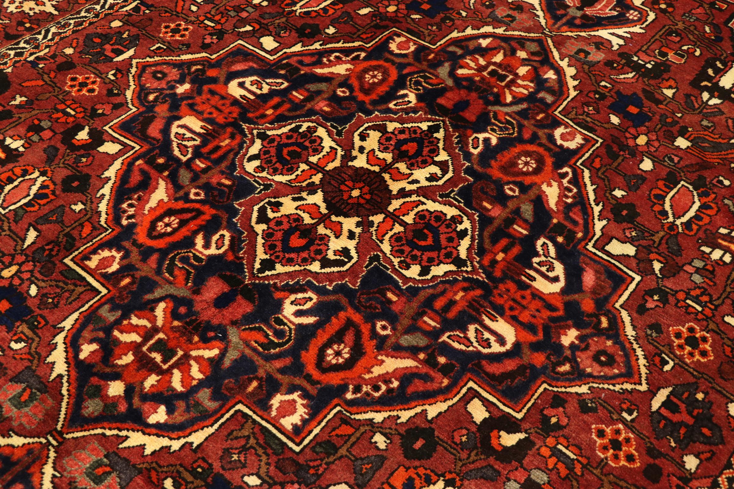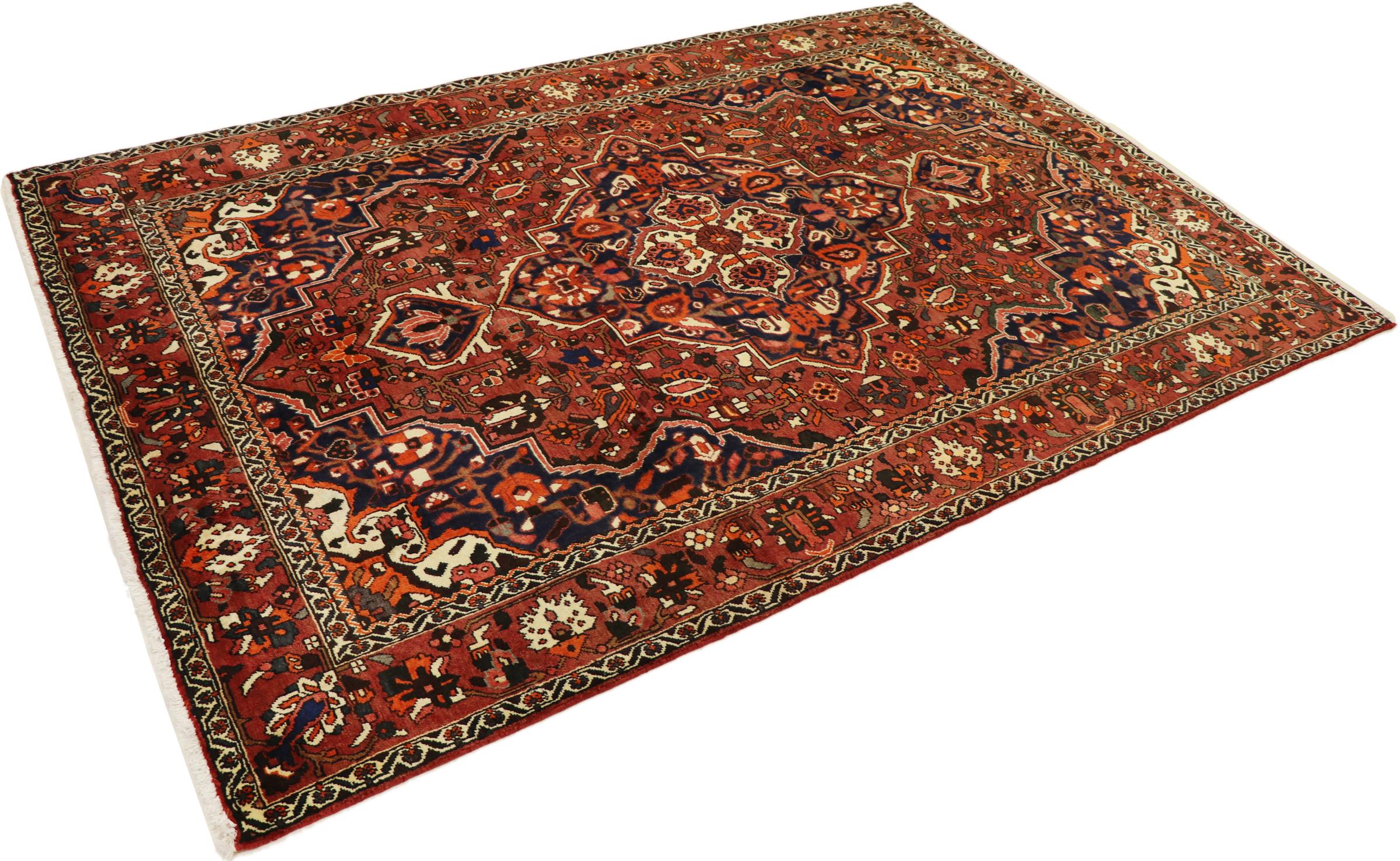 Tämän persialaisen bahtiarin solmivat käsin Bakhtiari-heimon paimentolaiset. Tämä persialainen matto leikkii itämaan väreillä kauniilla kuvioilla. Sen koristeiden suunnittelu on inspiroinut persialaisia ​​puutarhoja. Niin kutsutusta perinteisestä puutarhasuunnittelusta on tullut erittäin suosittu länsimaissa vuosien varrella. Sen suuri solmujen tiheys yhdessä vahvan langan kanssa lupaa pitkäaikaista nautintoa persialaisesta matoteoksesta.