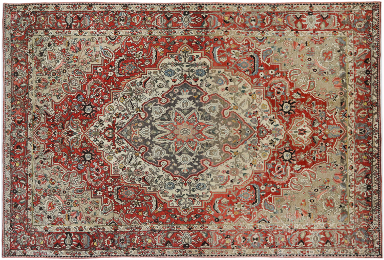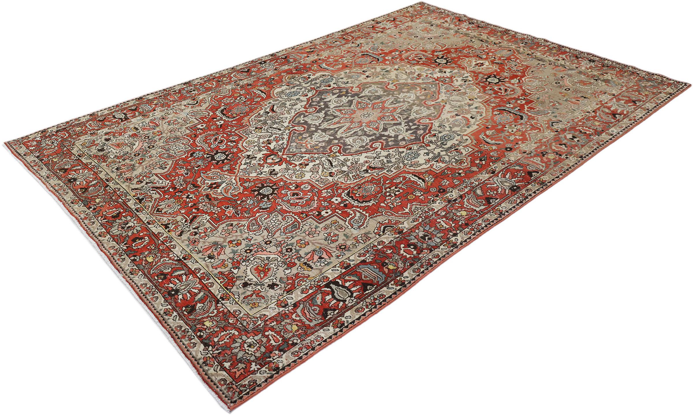 Maton nro.: 316260005716129 Koko: 306x204 cm Paksuus: n. 12 mm Solmua: 160 000 - 200 000 / m² Työstäminen: Solmittu käsin Nukka: Käsinkehrätty villa Loimi: Puuvilla Kunto / Säilytys: Virheetön Alkuperä: Persia / Iran Ikä: antiikkinen, yli 80 vuotta vanha Paino: n. 25 kg Tunnetaan myös nimellä Baktjar Készleten: Uniikki - Csak 1 van készleten
