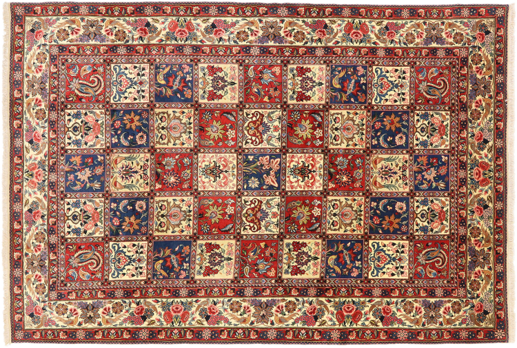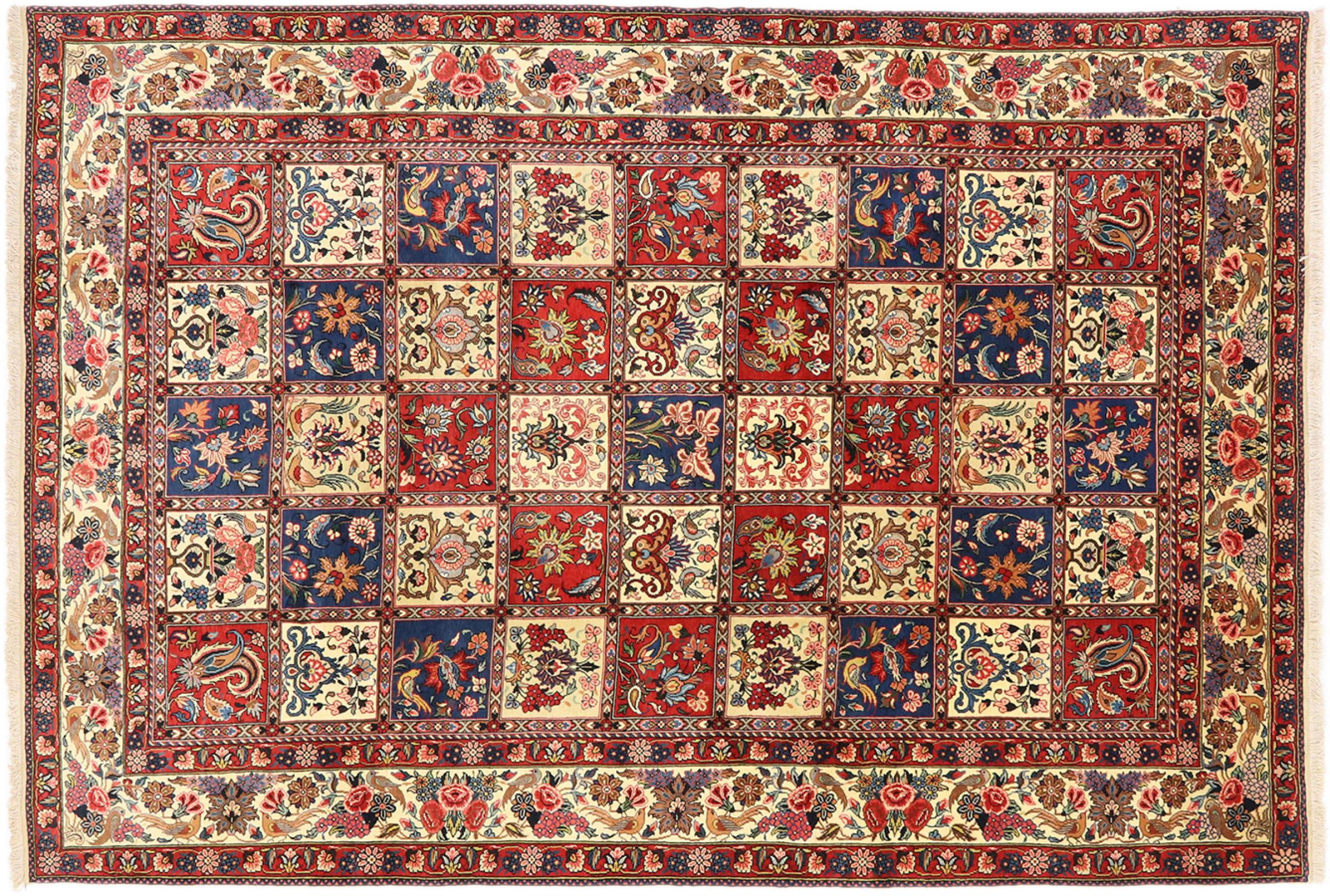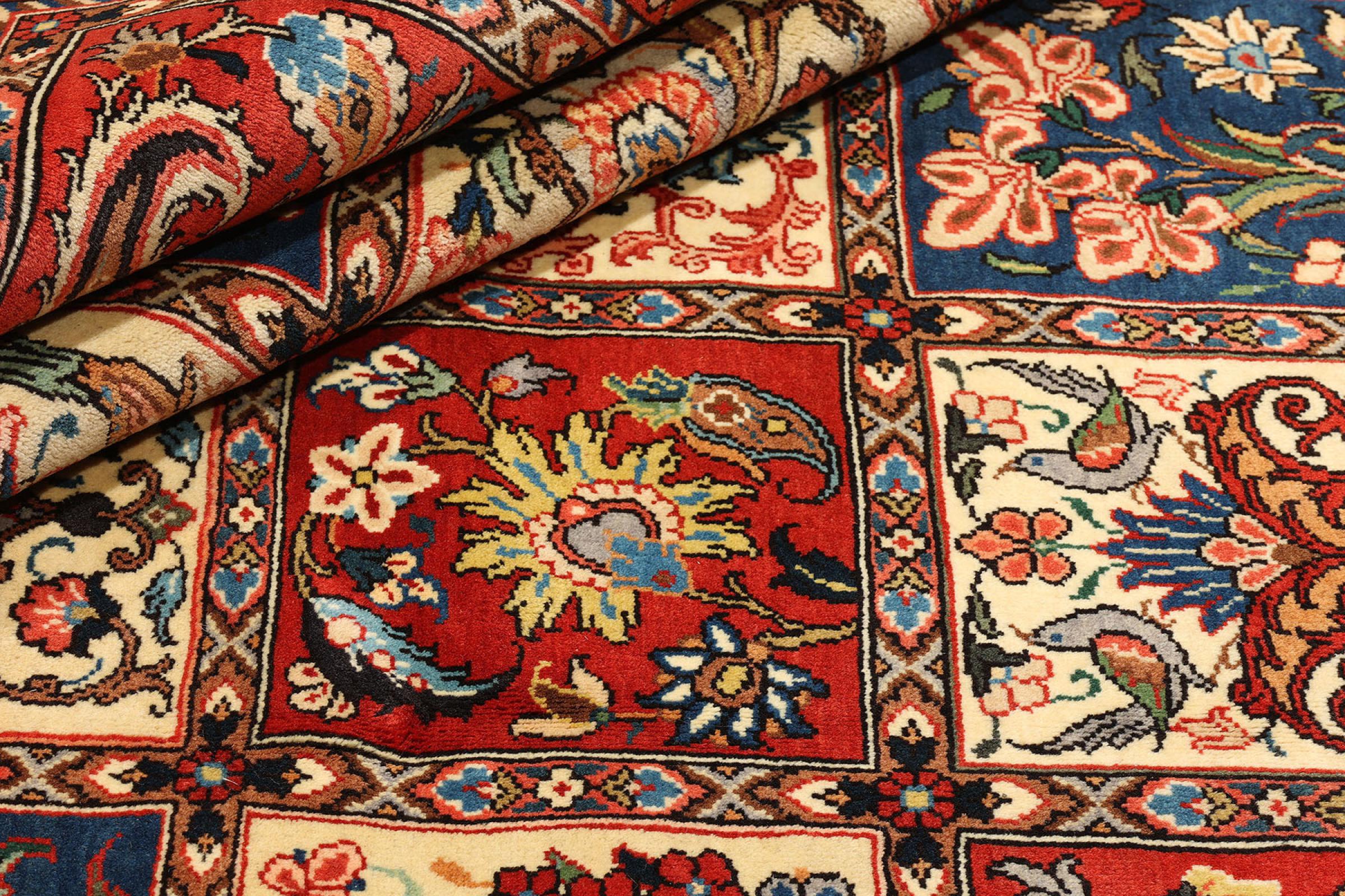 Tämän persialaisen bahtiarin solmivat käsin Bakhtiari-heimon paimentolaiset. Tämä persialainen matto leikkii itämaan väreillä kauniilla kuvioilla. Sen koristeiden suunnittelu on inspiroinut persialaisia ​​puutarhoja. Niin kutsutusta perinteisestä puutarhasuunnittelusta on tullut erittäin suosittu länsimaissa vuosien varrella. Sen suuri solmujen tiheys yhdessä vahvan langan kanssa lupaa pitkäaikaista nautintoa persialaisesta matoteoksesta.