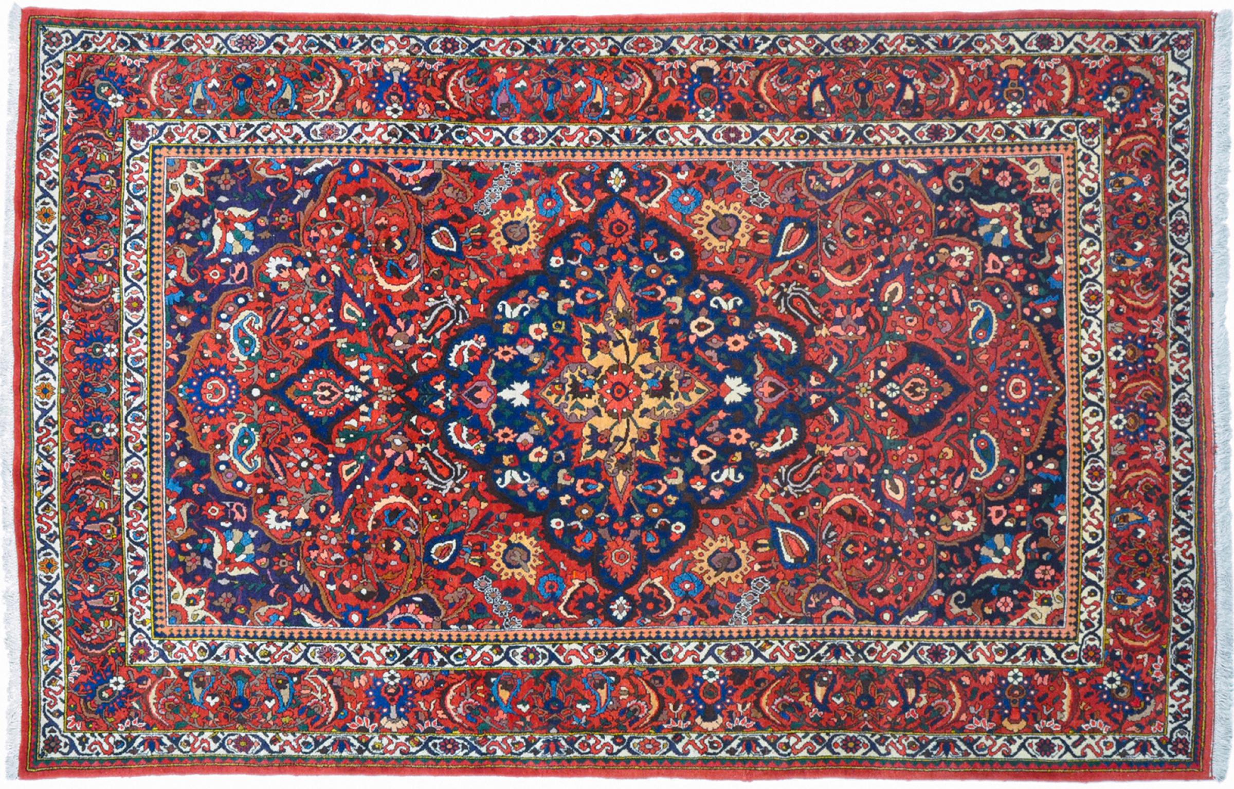Tämän persialaisen bahtiarin solmivat käsin Bakhtiari-heimon paimentolaiset. Tämä persialainen matto leikkii itämaan väreillä kauniilla kuvioilla. Sen koristeiden suunnittelu on inspiroinut persialaisia ​​puutarhoja. Niin kutsutusta perinteisestä puutarhasuunnittelusta on tullut erittäin suosittu länsimaissa vuosien varrella. Sen suuri solmujen tiheys yhdessä vahvan langan kanssa lupaa pitkäaikaista nautintoa persialaisesta matoteoksesta.