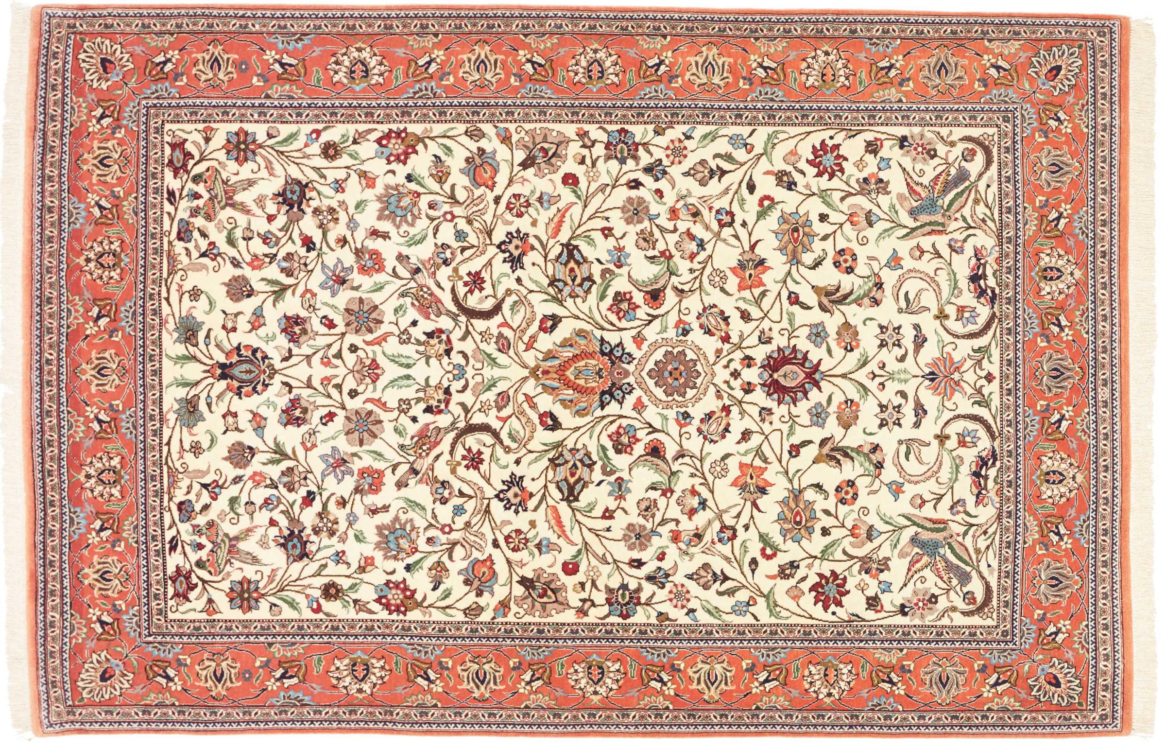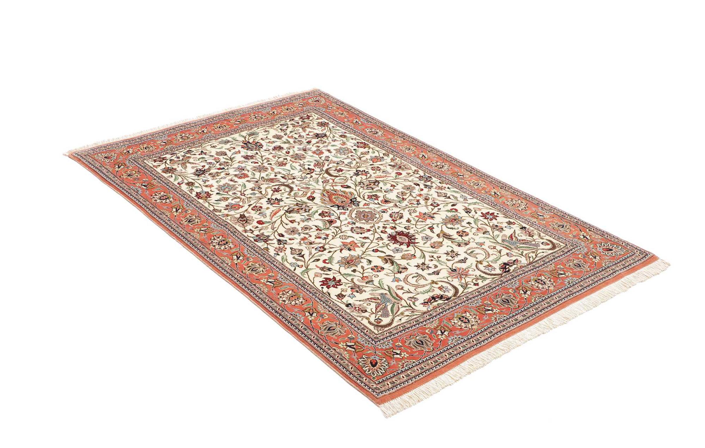 Tämä Isfahan-matto on kaikkein korkeinta taidetta. Se on upeasti työstetty ja mitä kauneimmilla kuvioilla koristeltu. Tämä Persialaismatto on tehty Isfahanissa, Iranin kauneimmassa kaupungissa, hienoimmasta langasta käsinsolmittu. Enempää vaadittu on tuskin mahdollista.