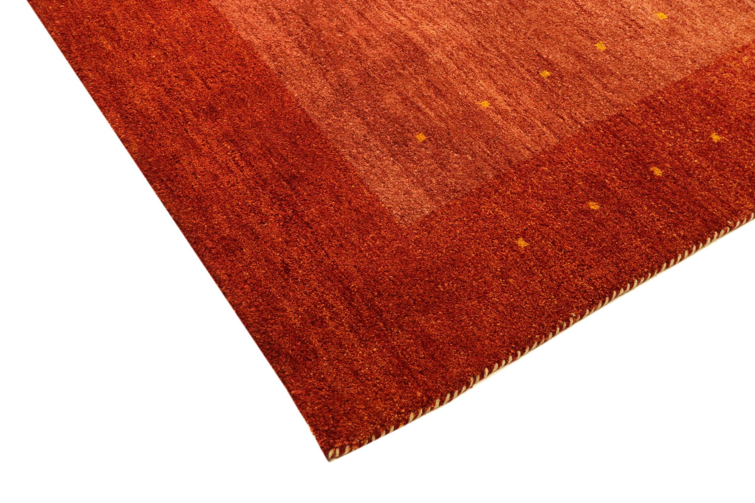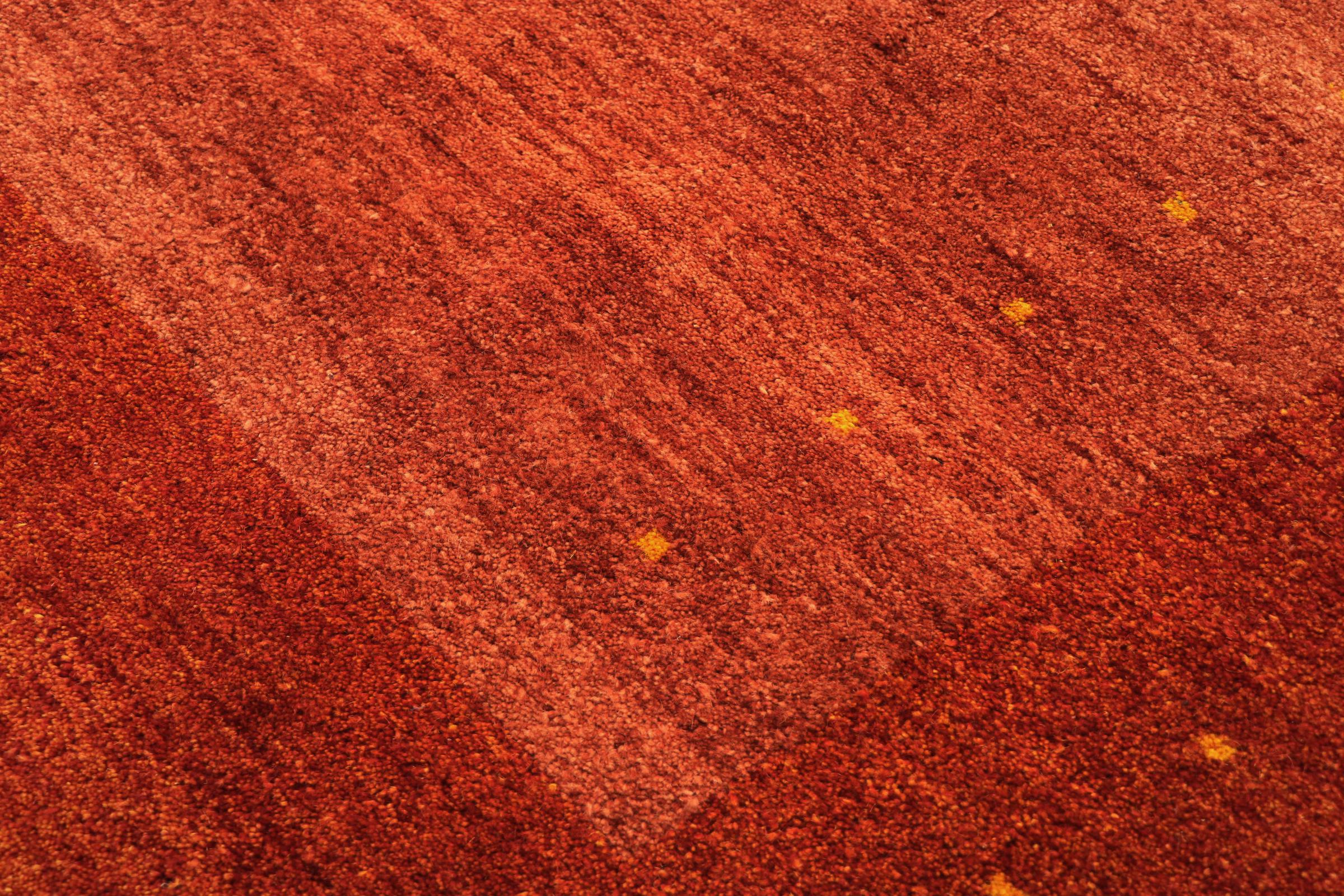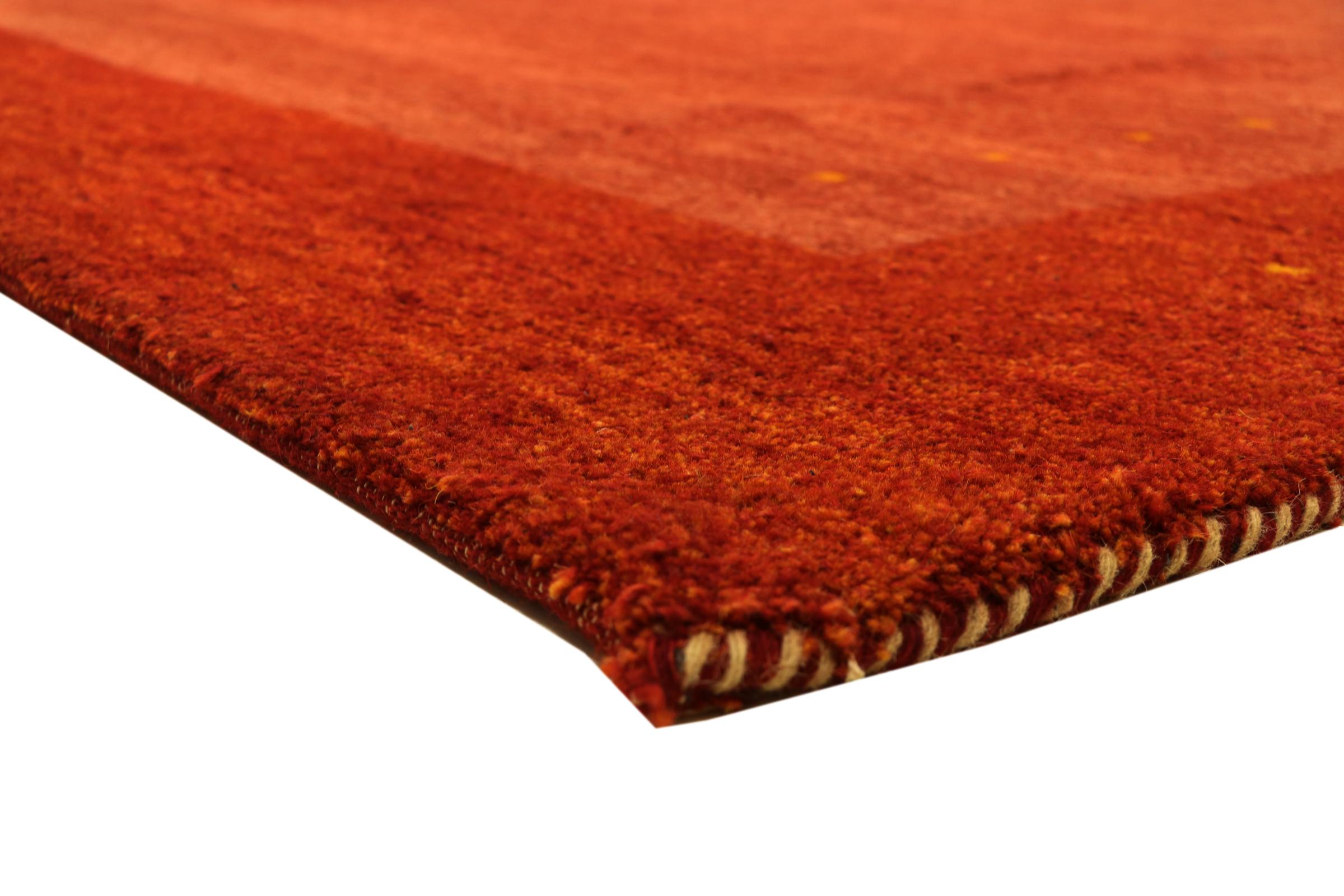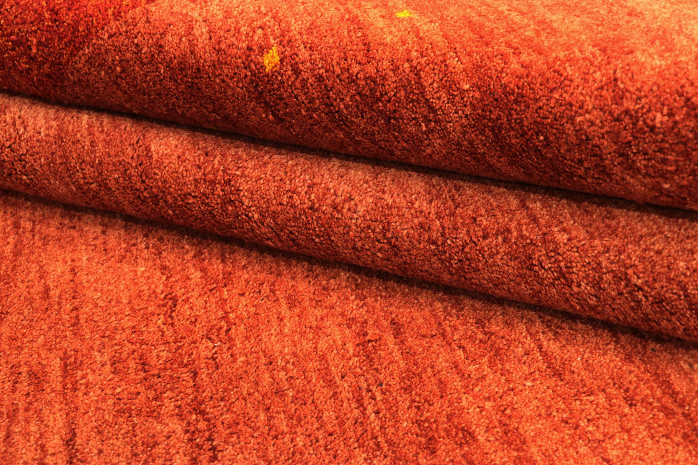 Tämä kaunis Gabbeh-matto oli käsinsolmittu Intiassa. Intialaiset Gabbeh-matot on valmistettu pehmeästä lampaan villasta, ne ovat miellyttäviä jaloissa ja niillä on lämpöä eristävät ominaisuudet. Suurin osa heidän suunnittelustaan ​​on yksinkertaista ja ajattoman modernia. Heitä inspiroivat nomadin kansakunnat, jotka päästivät hyvin yksinkertaisia ​​kuvioita ympäristöstään kulkemaan mattoihin. Intialaiset Gabbeh-matot eivät vastaa aivan persialaisen Gabbehin laatua, mutta niillä on erittäin hyvä hinta-laatusuhde. Tämä tekee niistä ihanteellisia käsinsolmittuna lähtötason matona.