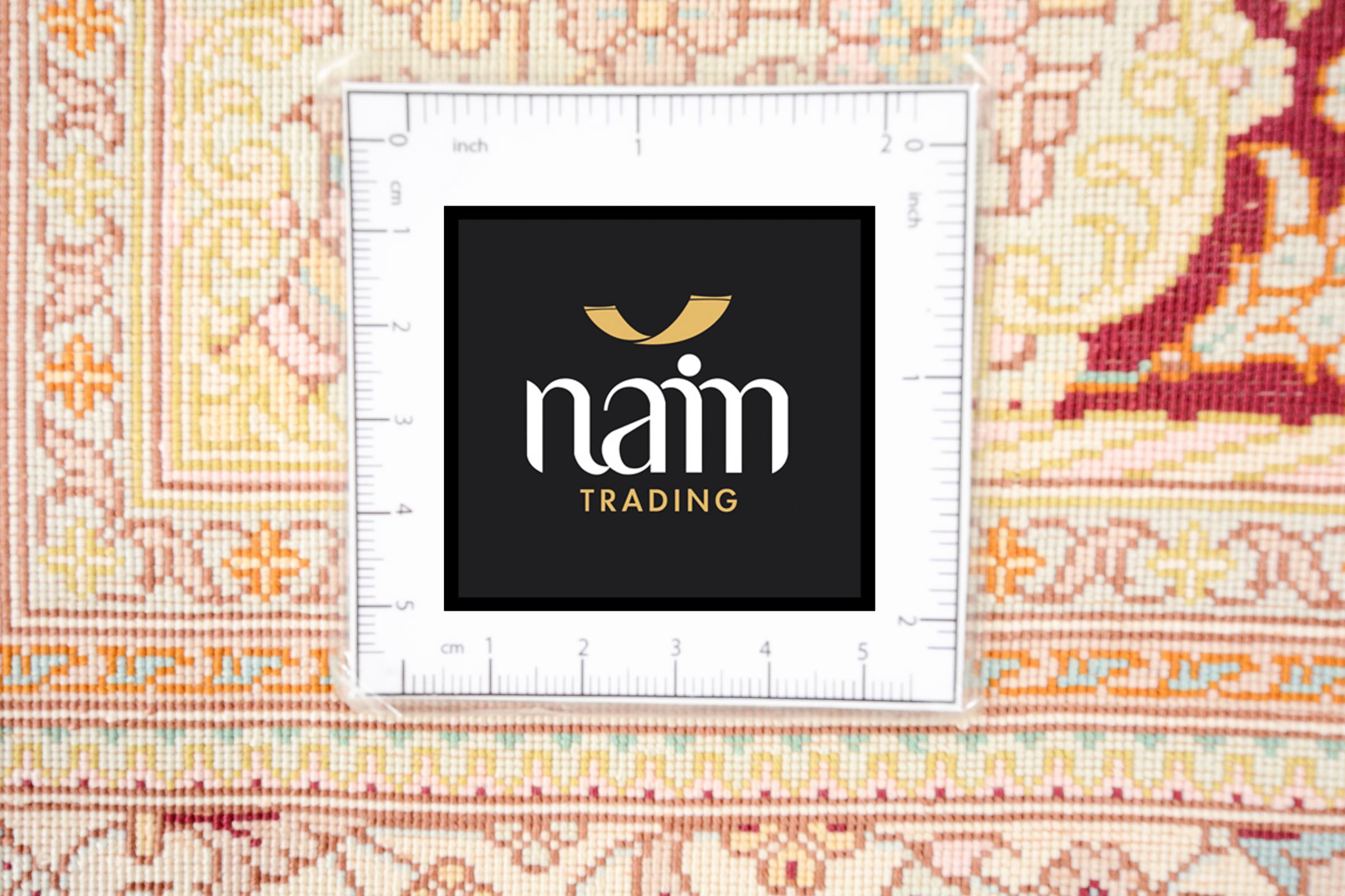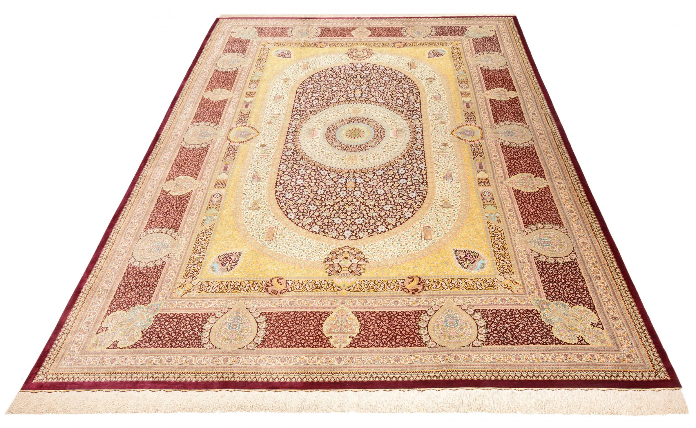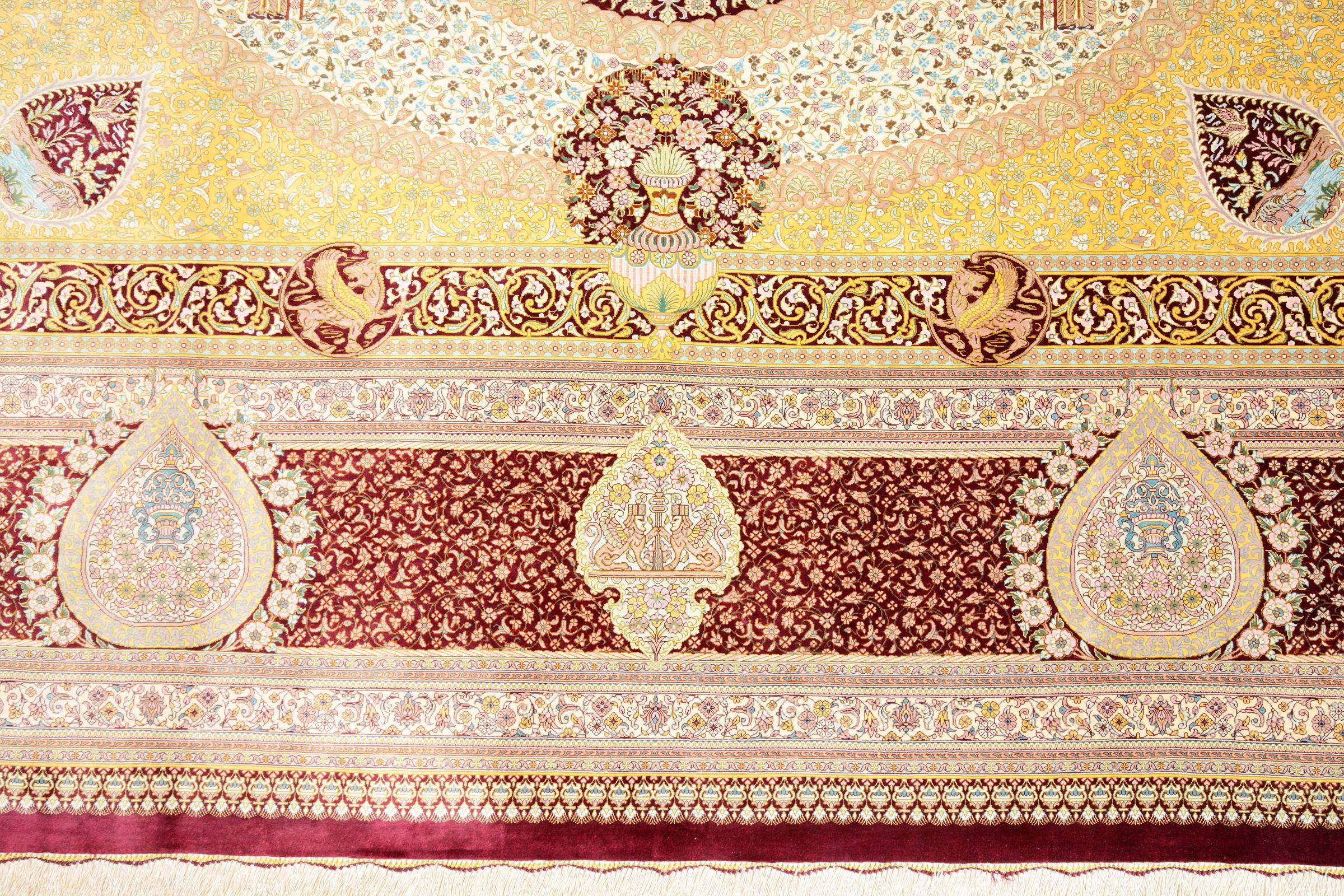 Maton nro.: 127350009914913 Koko: 391x293 cm Paksuus: n. 3 mm Solmua: 1 000 000 / m² Työstäminen: Solmittu käsin Nukka: Silkki Loimi: Silkki Alkuperä: Persia / Iran Ikä: uusi Paino: n. 23 kg Készleten: Uniikki - Csak 1 van készleten