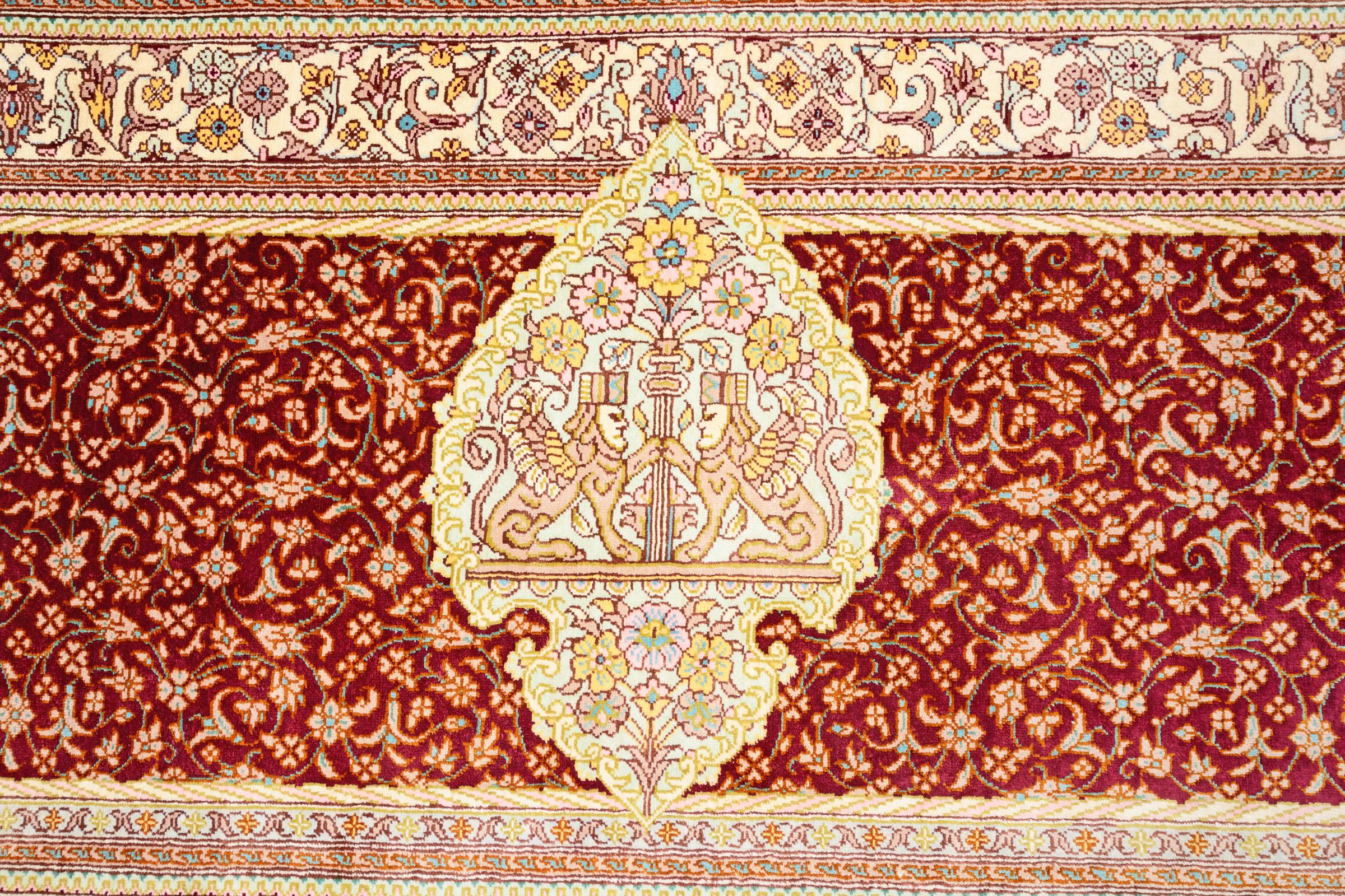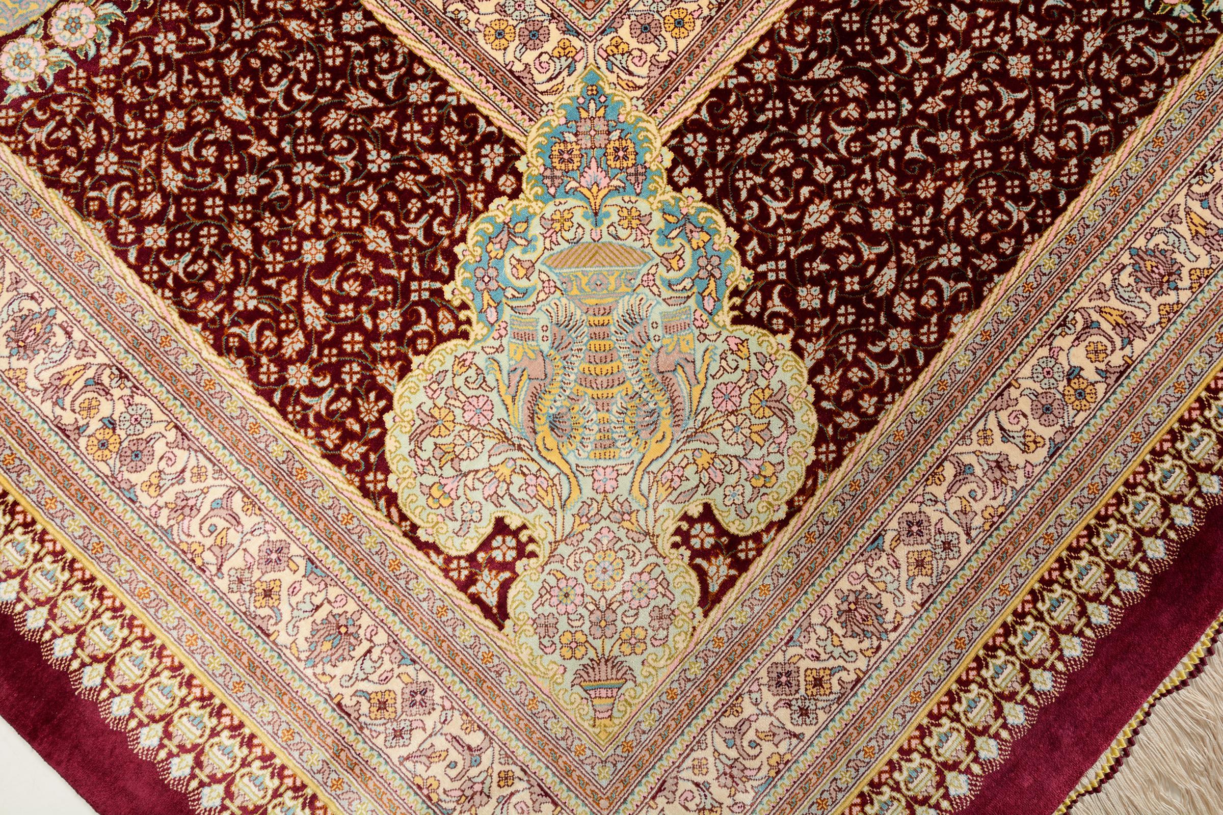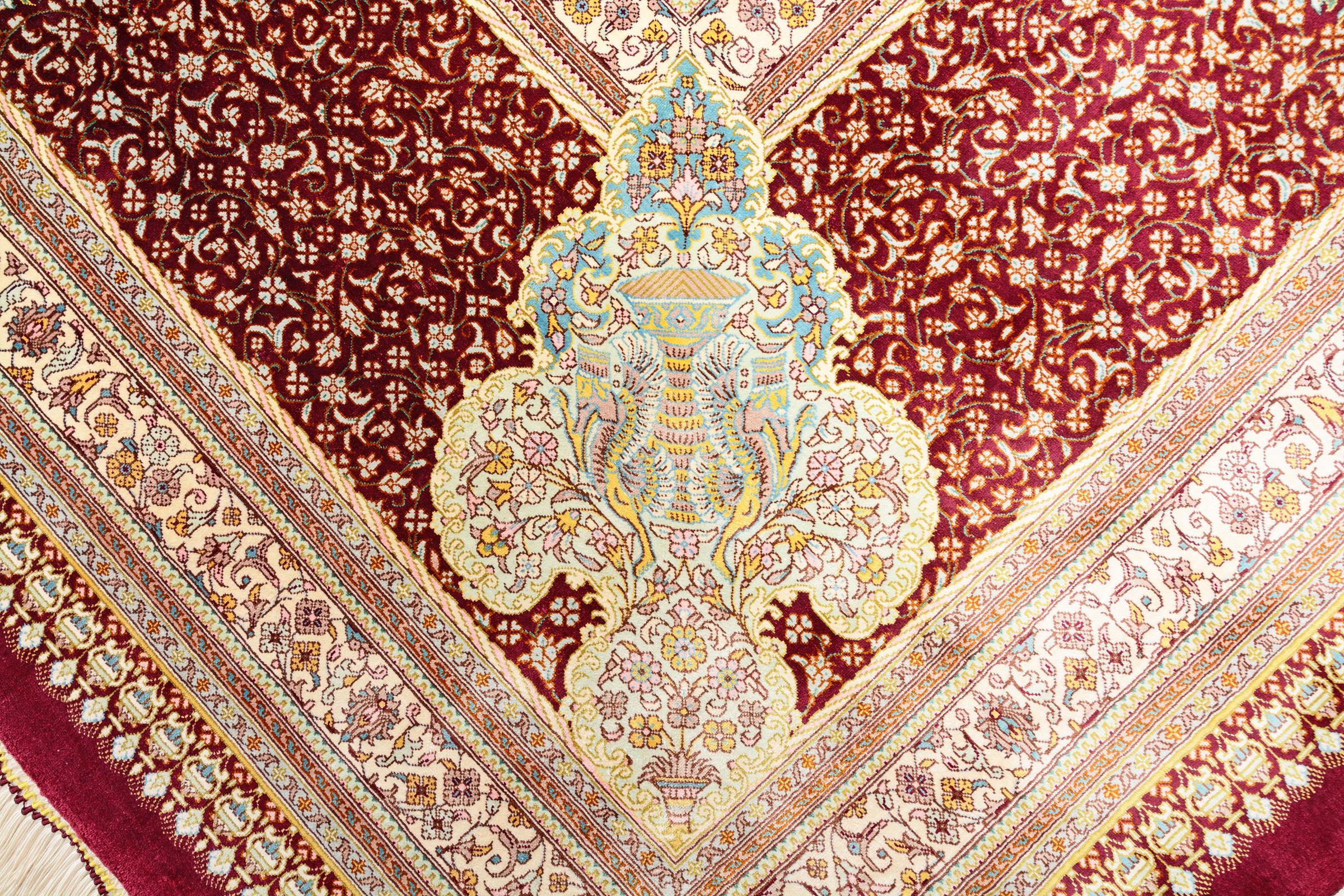 Tämä Ghom-Silkkimatto on puhdasta luksusta. Sen kuvio, hieno luonnonsilkki puhuvat selvää kieltään. Orientti täydellisyydessään kotiinne. Silkkimatto Ghomista tyydyttää täydellisesti itämaisten mattojen harrastajaa. Tämä persialaismatto on todellinen katseenvangitsija, ja saa tilansa ympärillään loistamaan uudella tavalla.