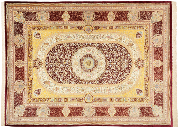 Tämä matto on peräisin Iranista (entinen Persia) ja on todennäköisesti korkein maine kaikista käsinsolmittuista matoista persialaisena matona. Yksikään alue ei takaa vertailukelpoista pitkää perinnettä mattojen kutomisessa kuin Iran. Näin tulevat tänne hienoimpia ja hienoimpia mattoja. Persialaisen solmun kestävyys, kestävyys ja laatu ovat edelleen verraton tänään. Persialaiset matot on yleensä nimetty alkuperäalueeltasi. Joten sekä nain, ghom että isfahan matto ovat lähtöisin samannimisestä kaupungista Iranissa.