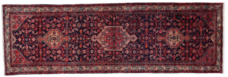 Maton nro.: 308698005326511 Koko: 376x119 cm Paksuus: n. 12 mm Solmua: 128 000 - 160 000 / m² Työstäminen: Solmittu käsin Nukka: Käsinkehrätty villa Loimi: Puuvilla Alkuperä: Persia / Iran Ikä: uusi Paino: n. 18 kg Tunnetaan myös nimellä Huseinabad Készleten: Uniikki - Csak 1 van készleten