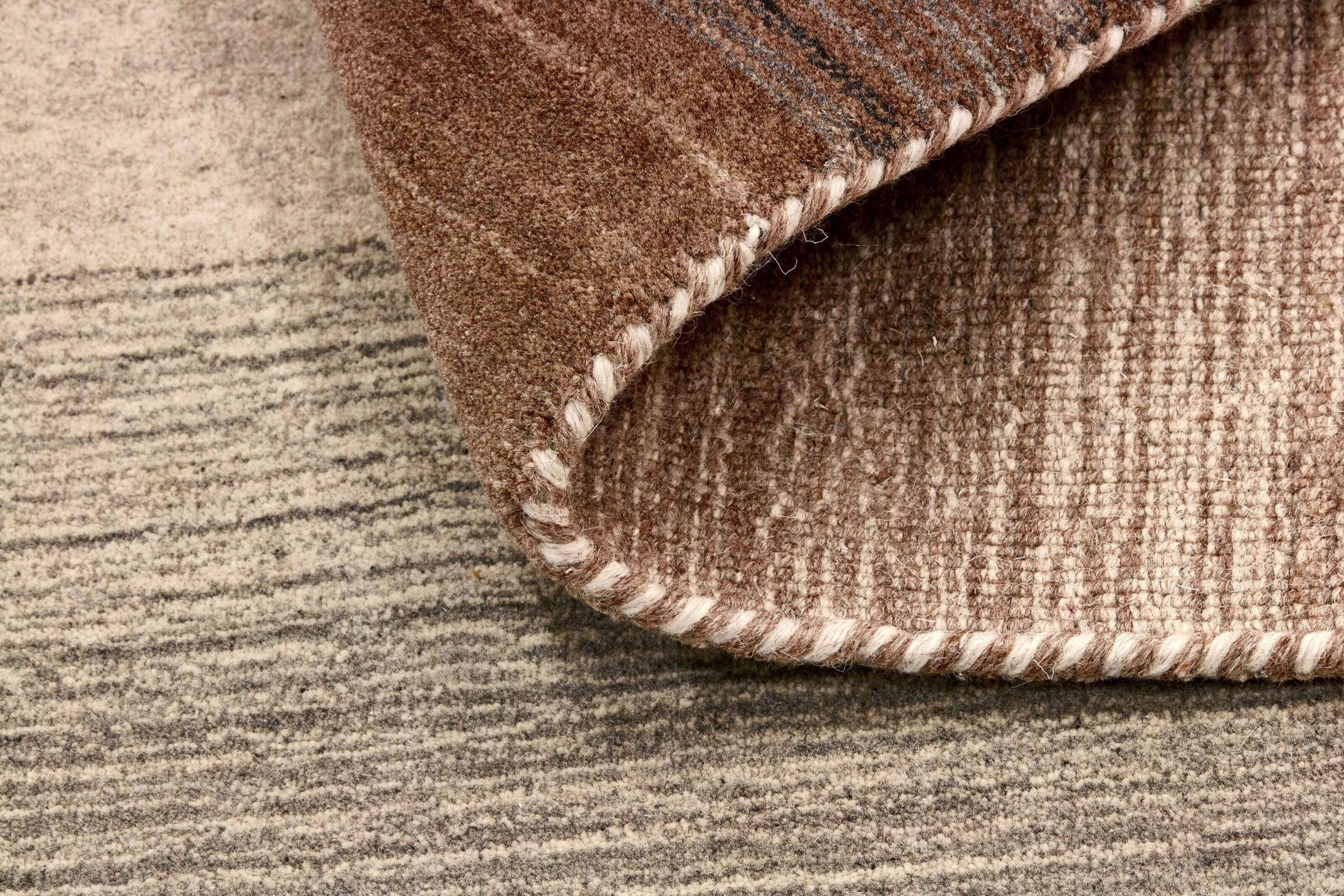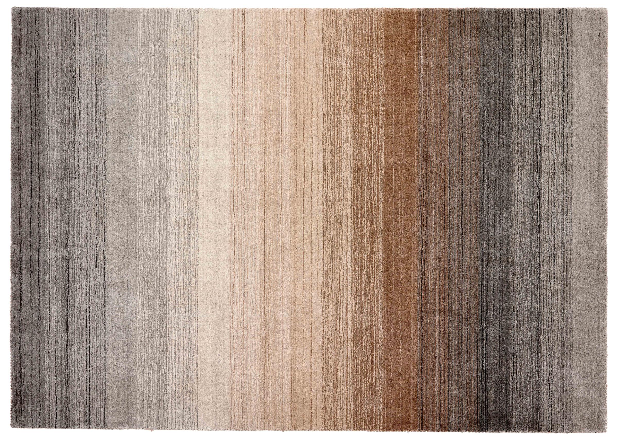 Tässä käsintehdyssä designmatossa käytetään tarkoituksella tietyn värispektrin hienoja sävyjä. Tämä luo rauhallisen ja samalla modernin muotoilun. Luonnollista villaa on käytetty viskoosin kanssa kauniin kiillon luomiseksi. Värispektri näyttää todella henkeäsalpaavalta todellisuudessa.