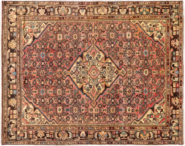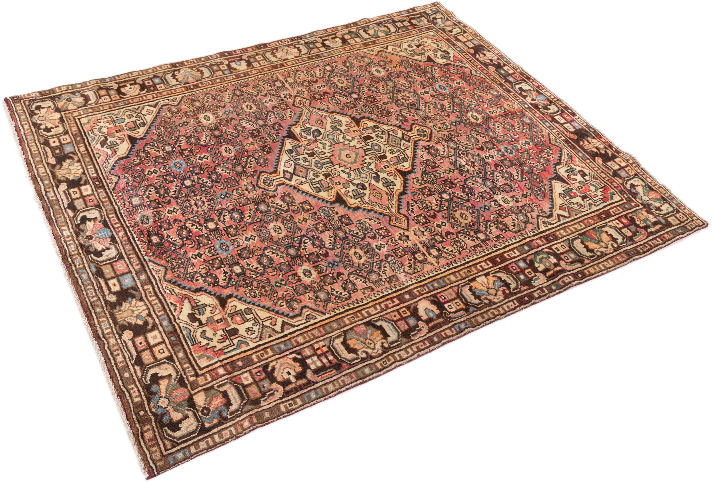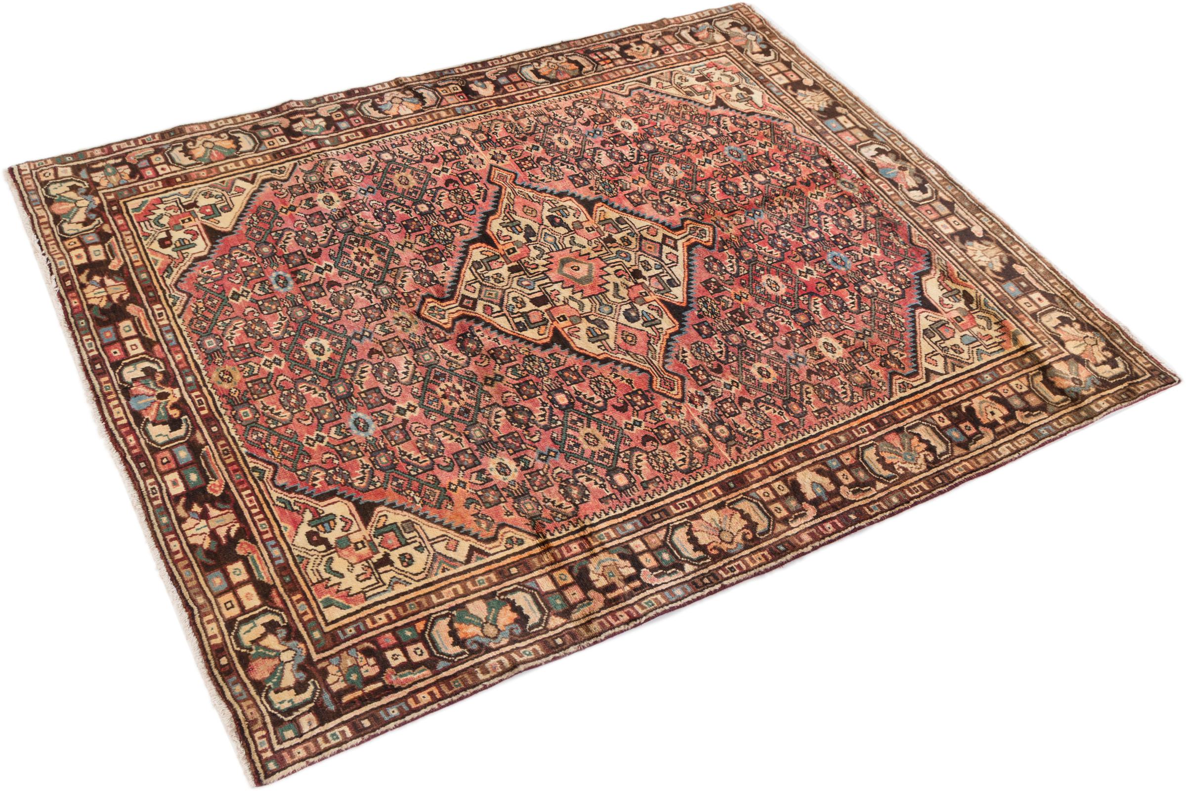Tämä käsinsolmittu Hosseinabad tarjoaa perinteistä persialaista mattotaidetta. Se on solmittu Hosseinabadin pikkukaupungissa Hamadanin lähellä. Tämän alueen mattojen korkea laatu ihastuttaa. Tuntekaa pala orienttia jalkojenne alla tällä matolla Hosseinabadista.