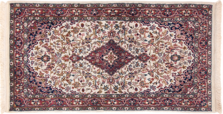 Maton nro.: 197873002500626 Koko: 161x86 cm Paksuus: n. 12 mm Solmua: 200 000 - 250 000 / m² Työstäminen: Solmittu käsin Nukka: Käsinkehrätty villa Loimi: Puuvilla Alkuperä: Intia Ikä: uusi Paino: n. 5 kg Készleten: Uniikki - Csak 1 van készleten