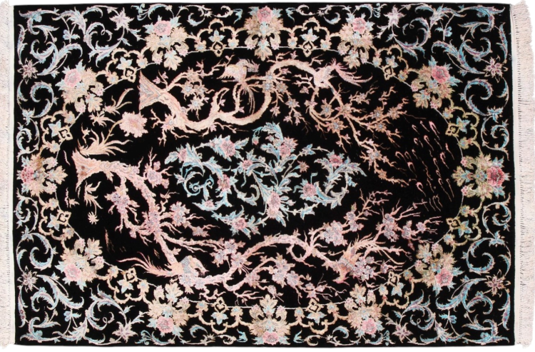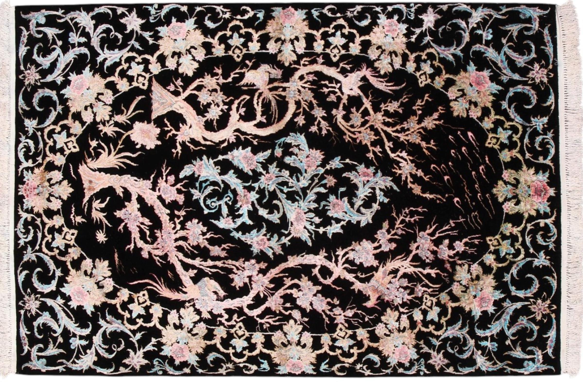 Maton nro.: 306142009035612 Koko: 166x112 cm Paksuus: n. 8 mm Solmua: 750 000 / m² Työstäminen: Solmittu käsin Nukka: Villa silkillä Loimi: Silkki Alkuperä: Persia / Iran Ikä: uusi Paino: n. 6 kg Készleten: Uniikki - Csak 1 van készleten