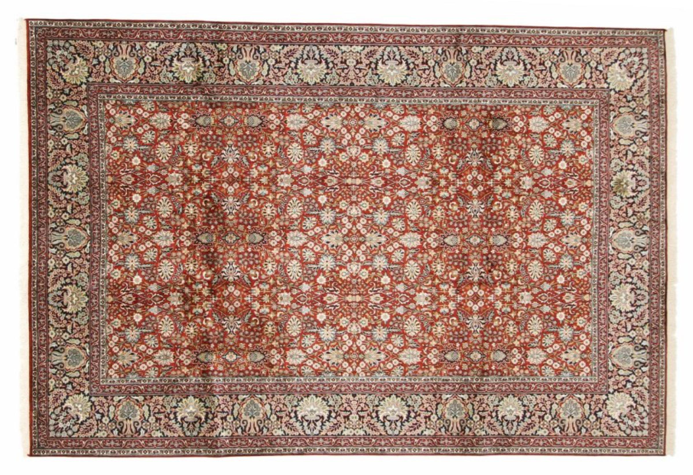 Tämä käsinsolmittu silkkimatto Kaschmirista kuvastaa intialaisten matonsolmijien osaamista, Parhaista materiaaleista vaikuttavia kuvioita käsinsolmittuna. Palanen intialaista ylellisyyttä Teille.