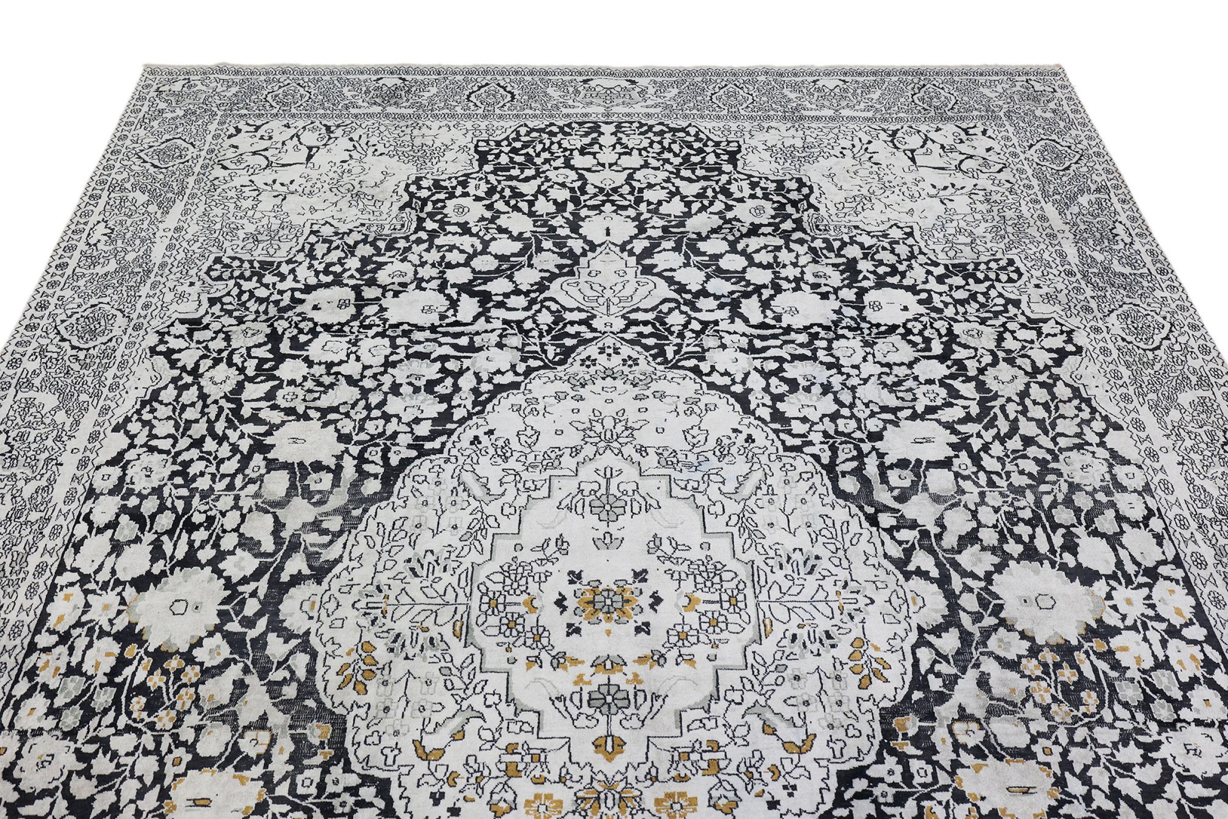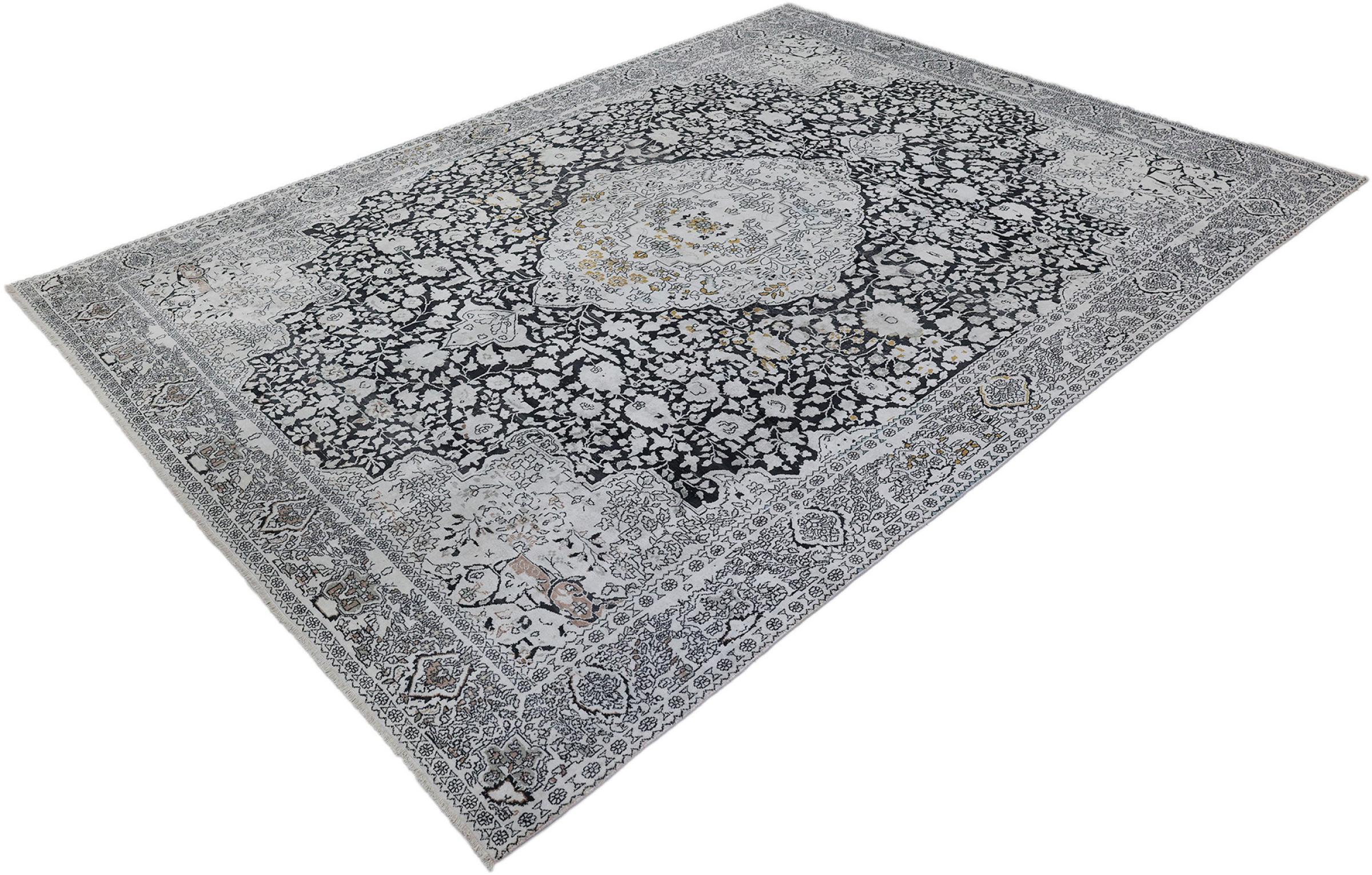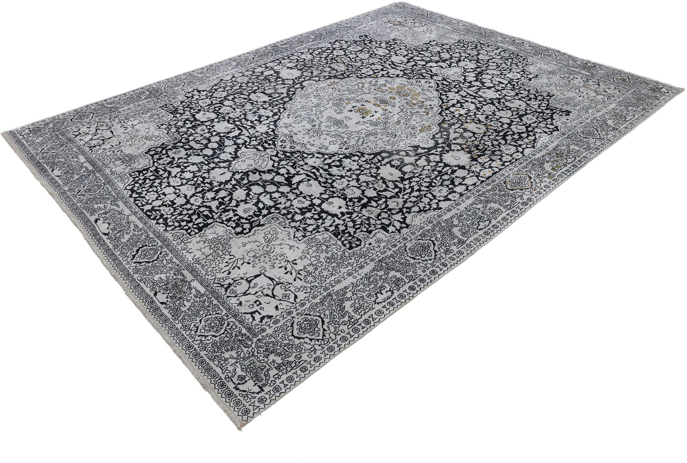 Tämä käsinsolmittu silkkimatto Kaschmirista kuvastaa intialaisten matonsolmijien osaamista, Parhaista materiaaleista vaikuttavia kuvioita käsinsolmittuna. Palanen intialaista ylellisyyttä Teille.
