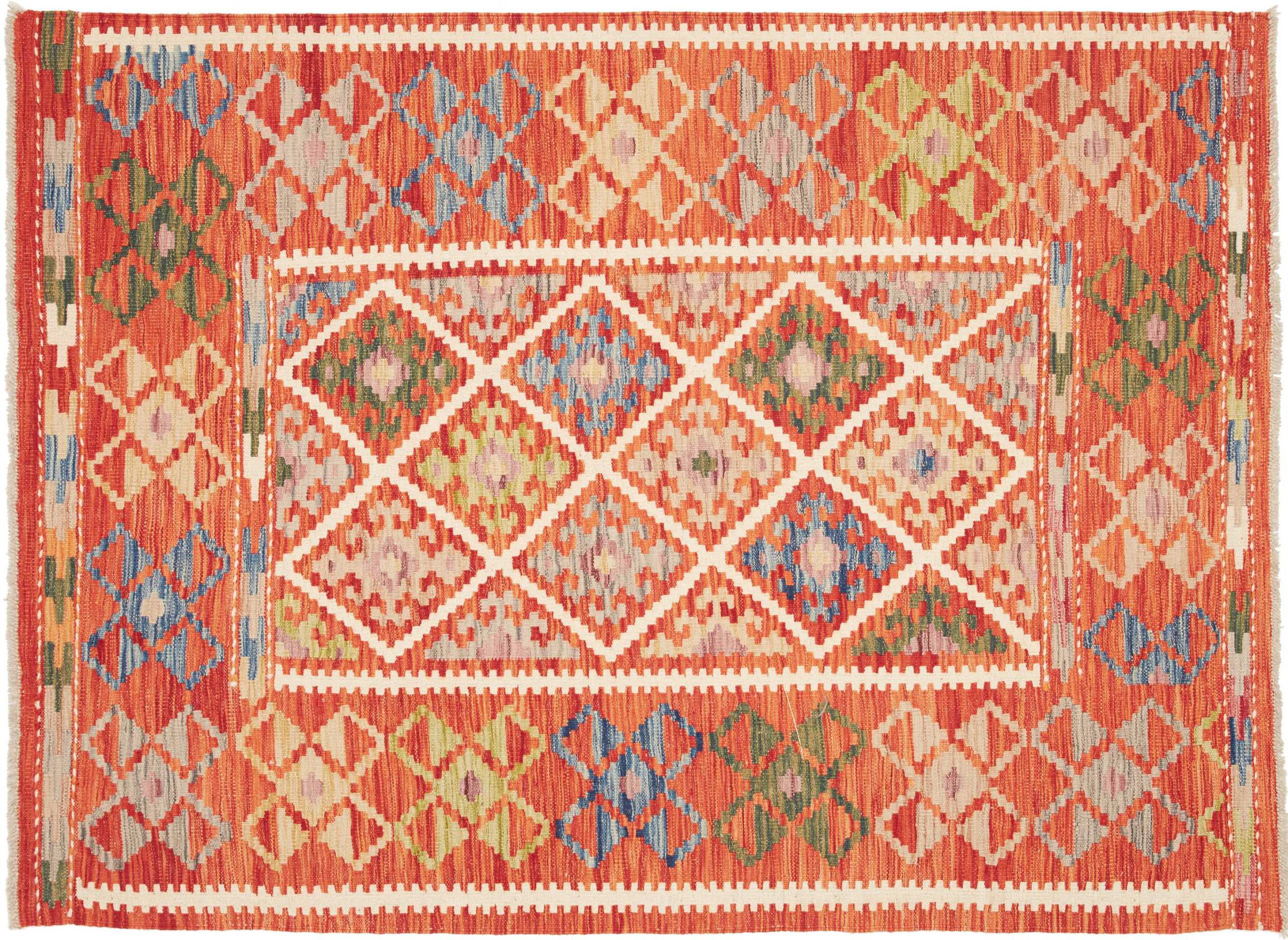 Tämä käsinkudottu Kelim-Afghan on väriensä ja tyypillisten kuvioidensa ansiosta todella kaunis. Se on Afganistanissa 100% villasta käsinkudottu. Kestävä ja pitkäikäinen myös sen lisäksi. Voitto Teille ja kodillenne kautta linjan.
