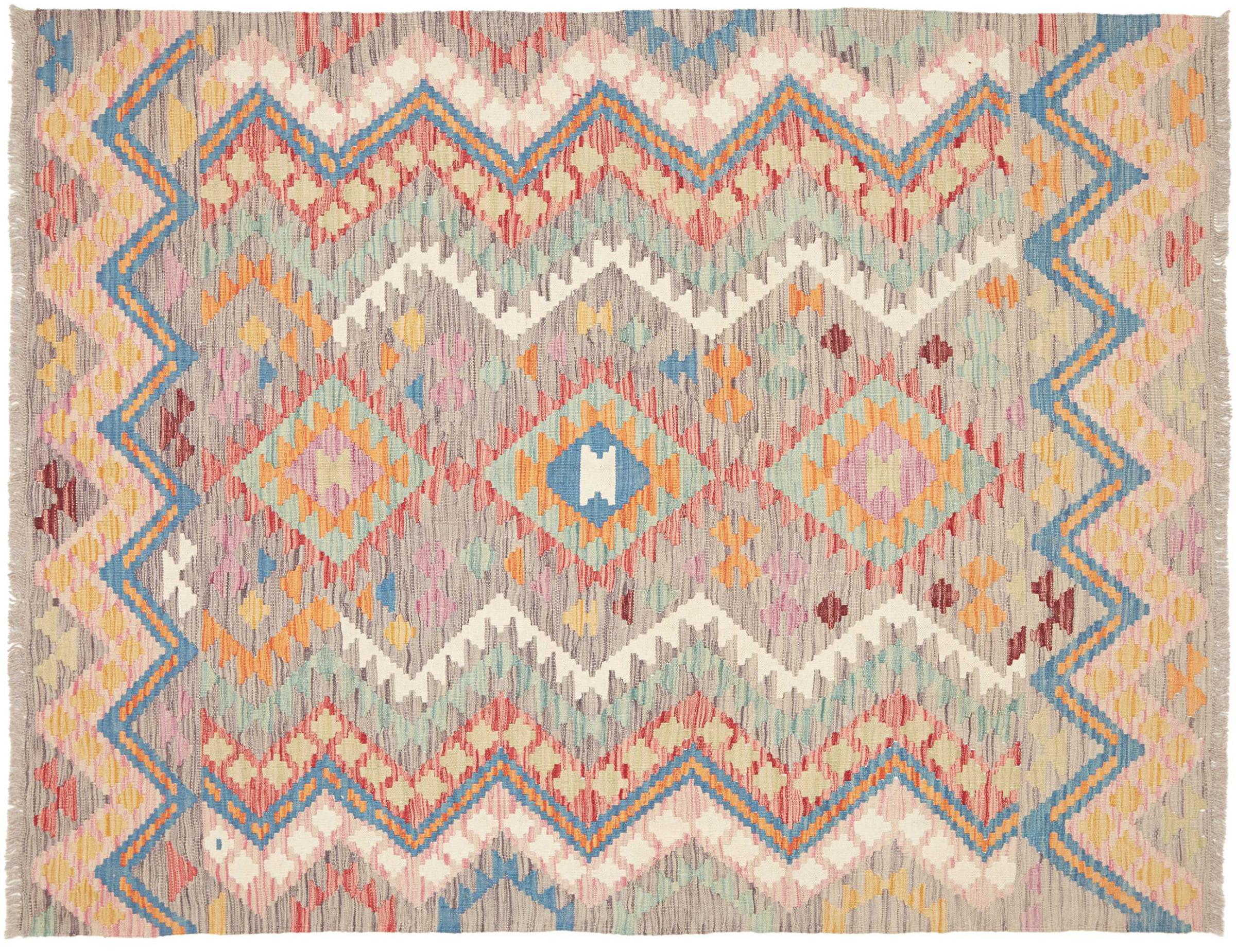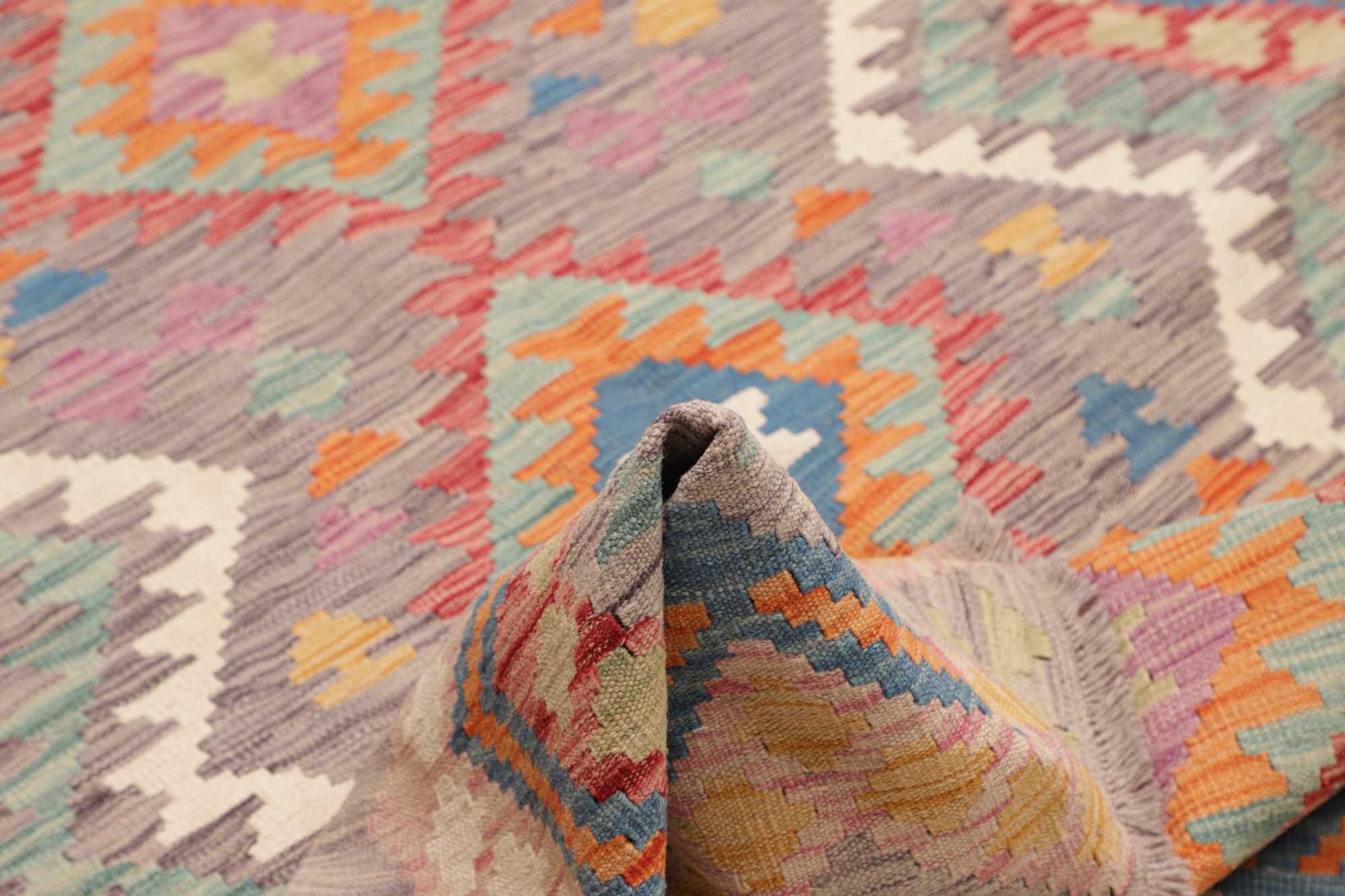 Tämä käsinkudottu Kelim-Afghan on väriensä ja tyypillisten kuvioidensa ansiosta todella kaunis. Se on Afganistanissa 100% villasta käsinkudottu. Kestävä ja pitkäikäinen myös sen lisäksi. Voitto Teille ja kodillenne kautta linjan.