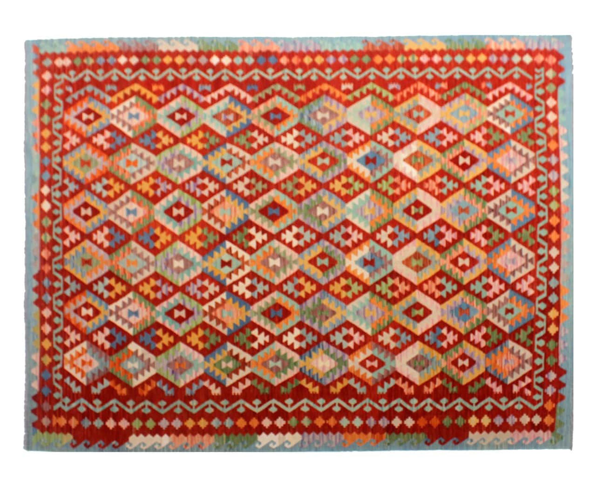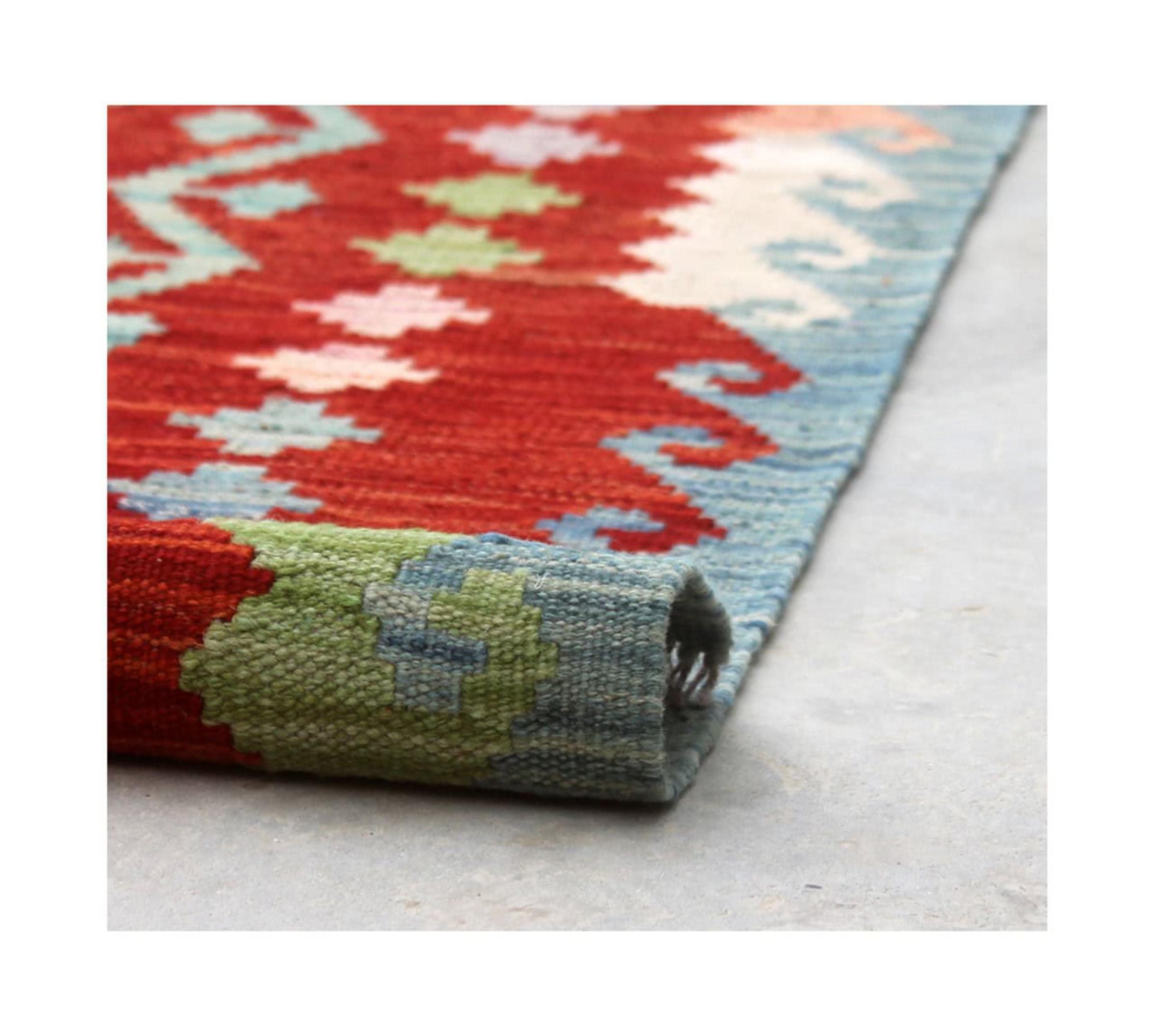 Tämä käsinkudottu Kelim-Afghan on väriensä ja tyypillisten kuvioidensa ansiosta todella kaunis. Se on Afganistanissa 100% villasta käsinkudottu. Kestävä ja pitkäikäinen myös sen lisäksi. Voitto Teille ja kodillenne kautta linjan.