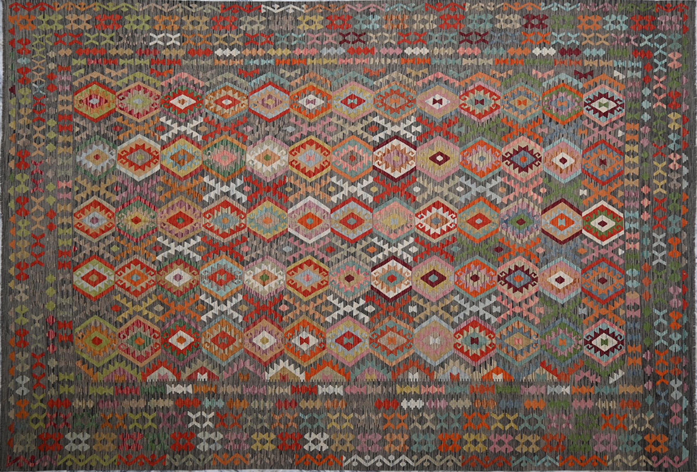 Tämä käsinkudottu Kelim-Afghan on väriensä ja tyypillisten kuvioidensa ansiosta todella kaunis. Se on Afganistanissa 100% villasta käsinkudottu. Kestävä ja pitkäikäinen myös sen lisäksi. Voitto Teille ja kodillenne kautta linjan.