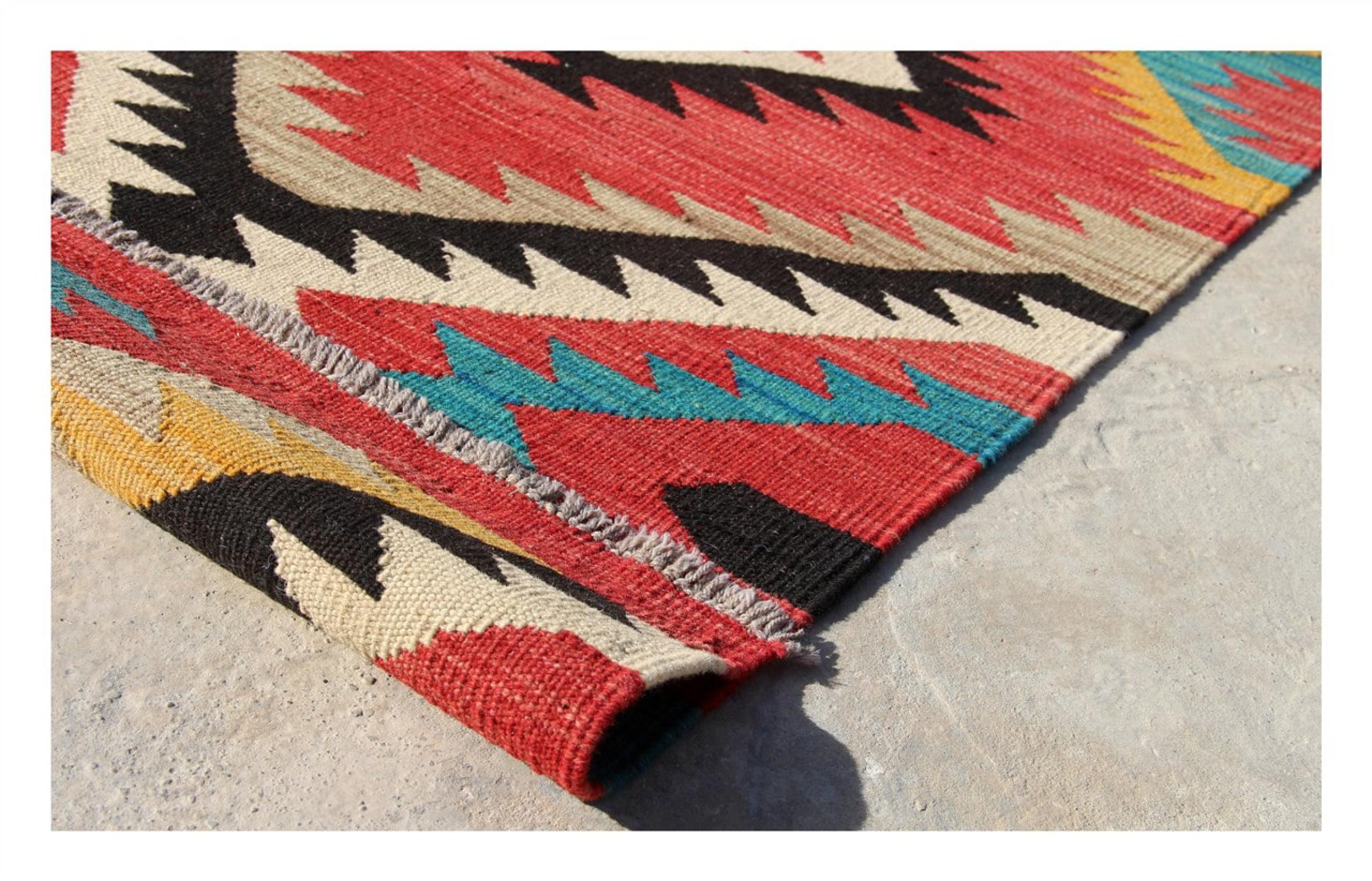 Tämä käsinkudottu Kelim-Afghan on väriensä ja tyypillisten kuvioidensa ansiosta todella kaunis. Se on Afganistanissa 100% villasta käsinkudottu. Kestävä ja pitkäikäinen myös sen lisäksi. Voitto Teille ja kodillenne kautta linjan.