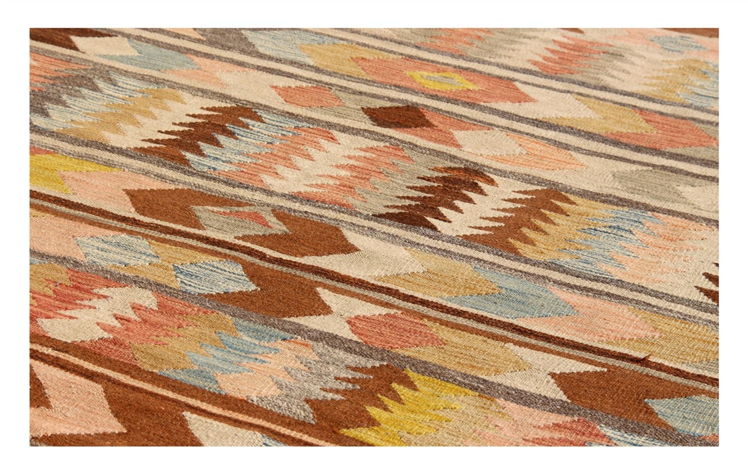 Tämä käsinkudottu Kelim-Afghan on väriensä ja tyypillisten kuvioidensa ansiosta todella kaunis. Se on Afganistanissa 100% villasta käsinkudottu. Kestävä ja pitkäikäinen myös sen lisäksi. Voitto Teille ja kodillenne kautta linjan.