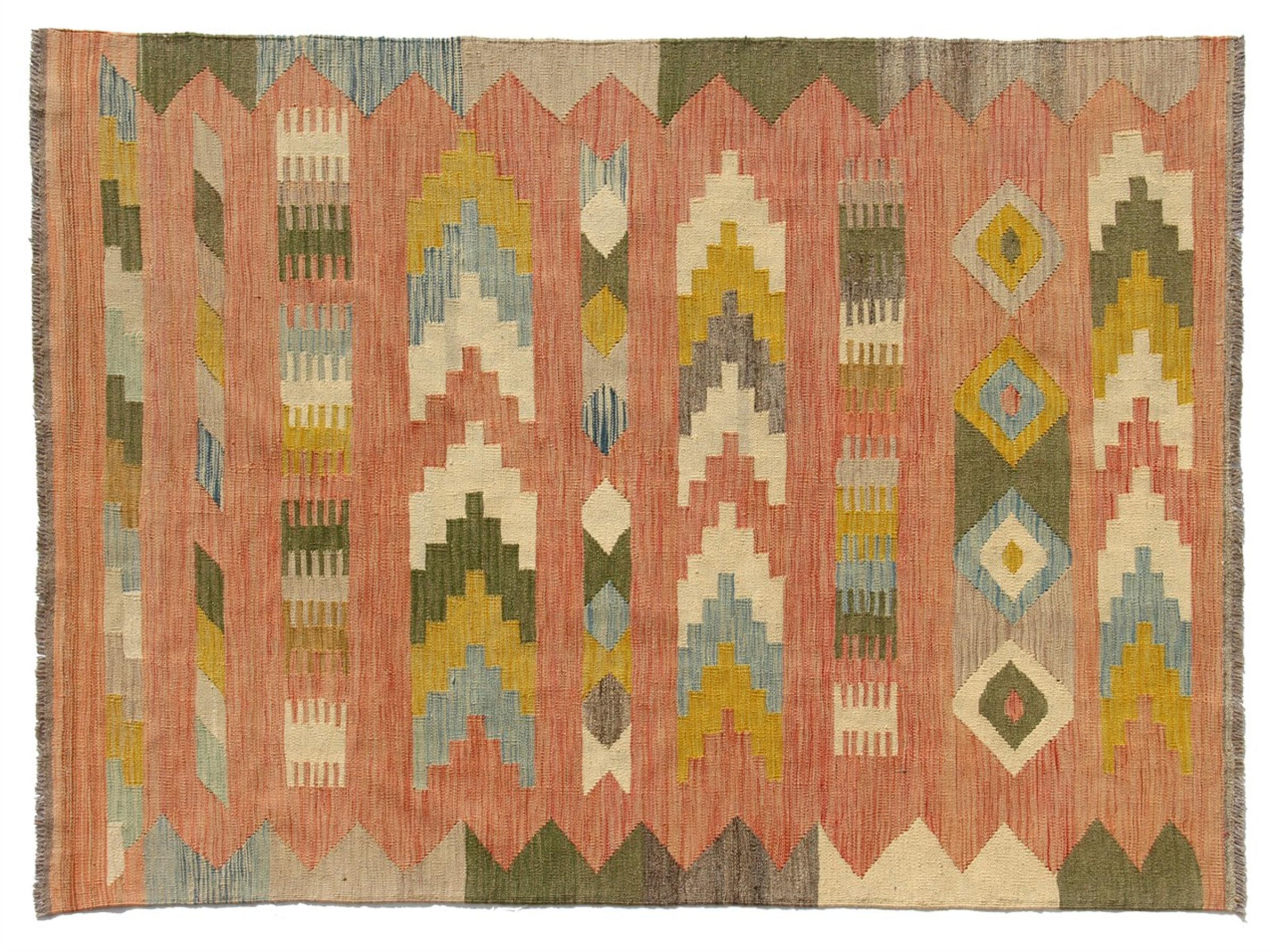Tämä käsinkudottu Kelim-Afghan on väriensä ja tyypillisten kuvioidensa ansiosta todella kaunis. Se on Afganistanissa 100% villasta käsinkudottu. Kestävä ja pitkäikäinen myös sen lisäksi. Voitto Teille ja kodillenne kautta linjan.