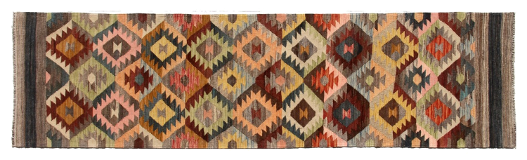 Tämä käsinkudottu Kelim-Afghan on väriensä ja tyypillisten kuvioidensa ansiosta todella kaunis. Se on Afganistanissa 100% villasta käsinkudottu. Kestävä ja pitkäikäinen myös sen lisäksi. Voitto Teille ja kodillenne kautta linjan.