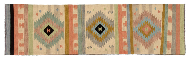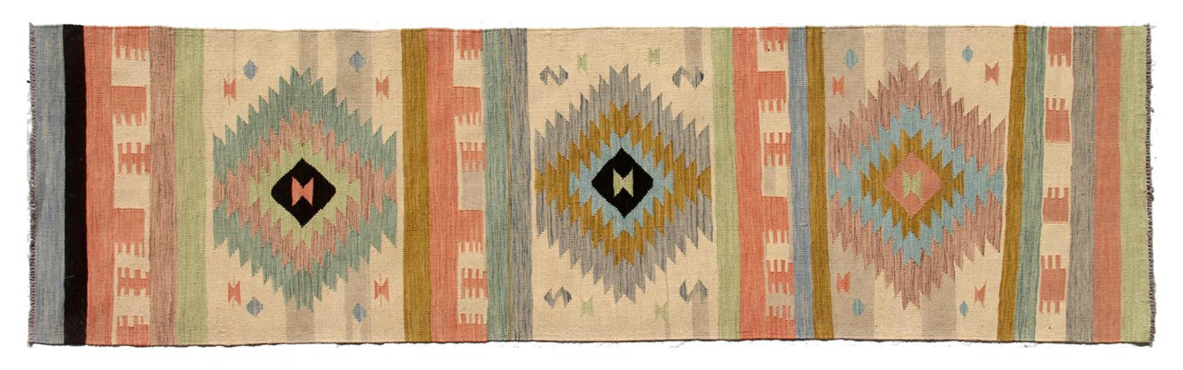 Tämä käsinkudottu Kelim-Afghan on väriensä ja tyypillisten kuvioidensa ansiosta todella kaunis. Se on Afganistanissa 100% villasta käsinkudottu. Kestävä ja pitkäikäinen myös sen lisäksi. Voitto Teille ja kodillenne kautta linjan.