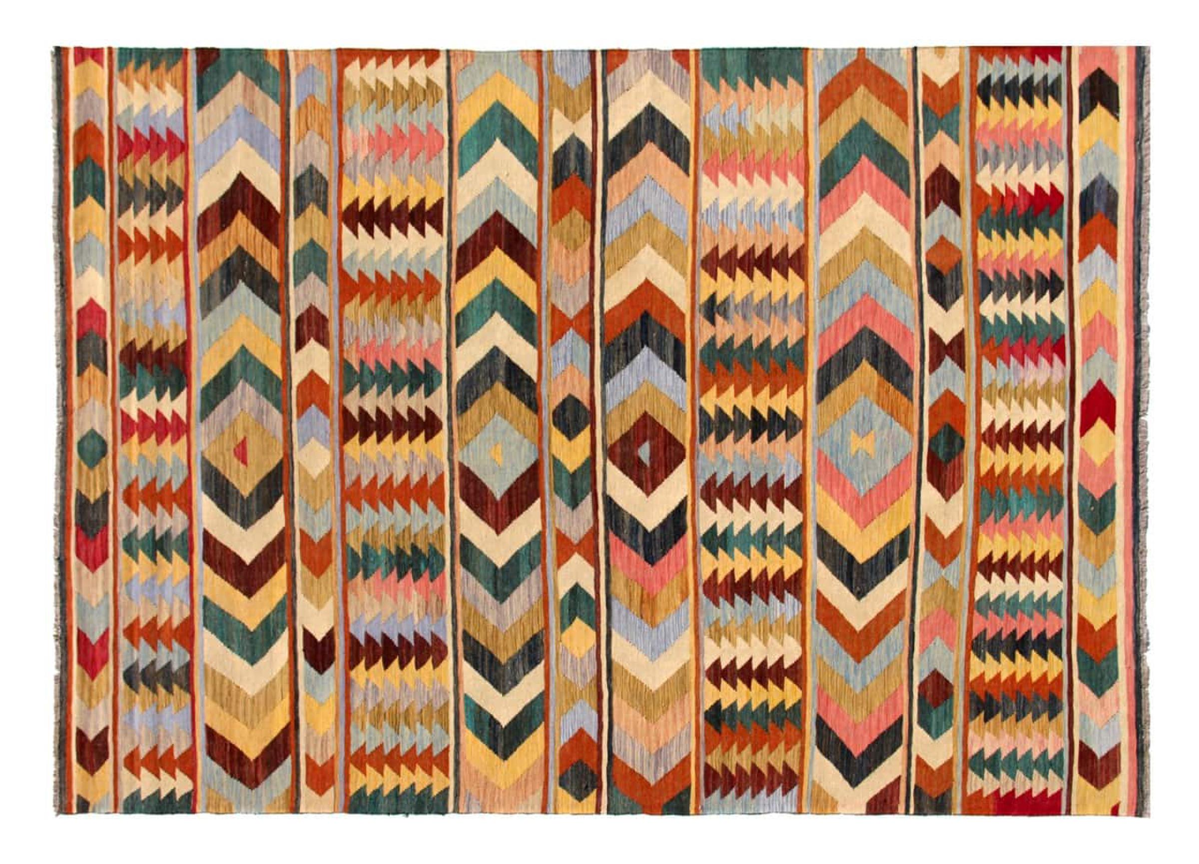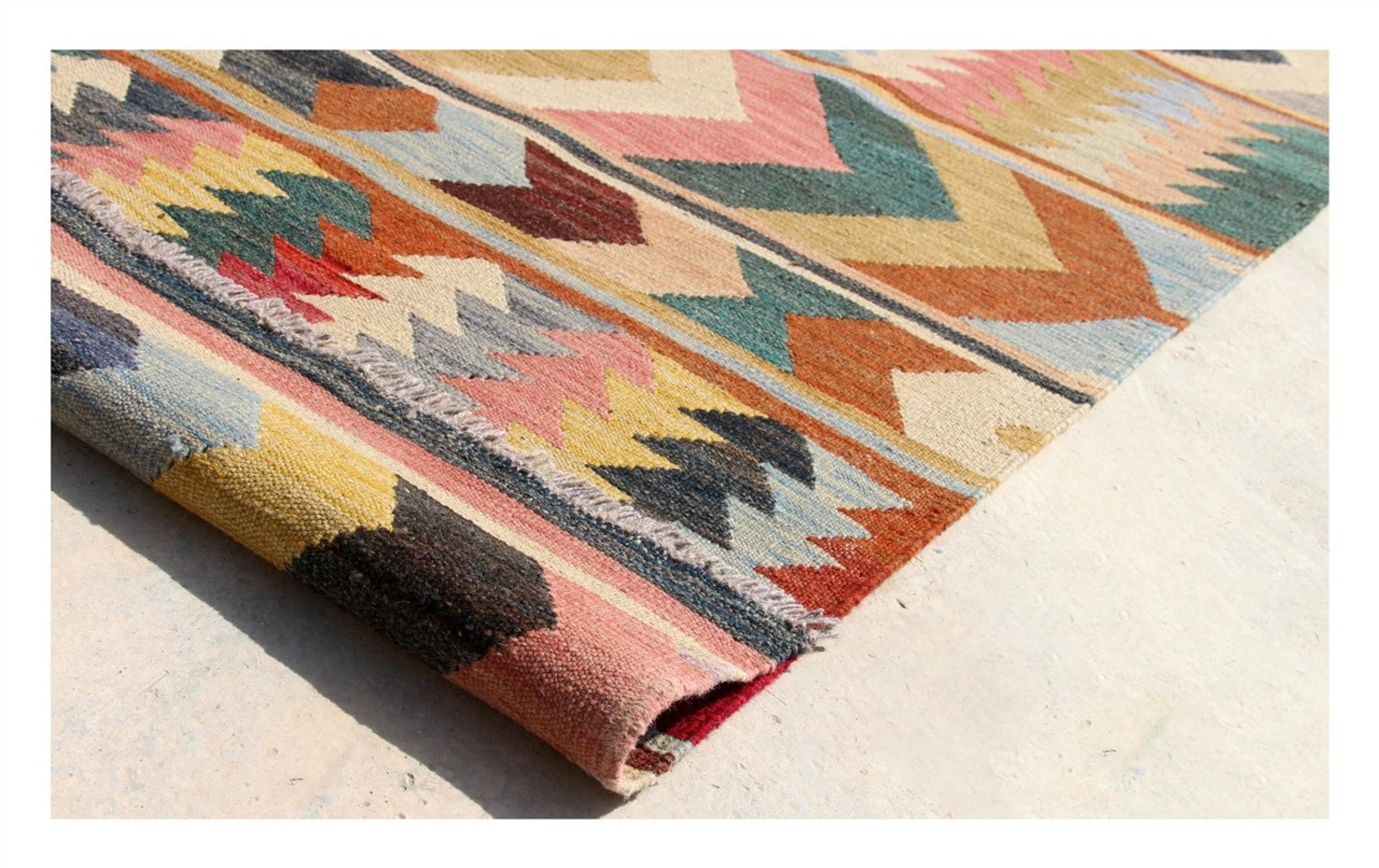 Tämä käsinkudottu Kelim-Afghan on väriensä ja tyypillisten kuvioidensa ansiosta todella kaunis. Se on Afganistanissa 100% villasta käsinkudottu. Kestävä ja pitkäikäinen myös sen lisäksi. Voitto Teille ja kodillenne kautta linjan.