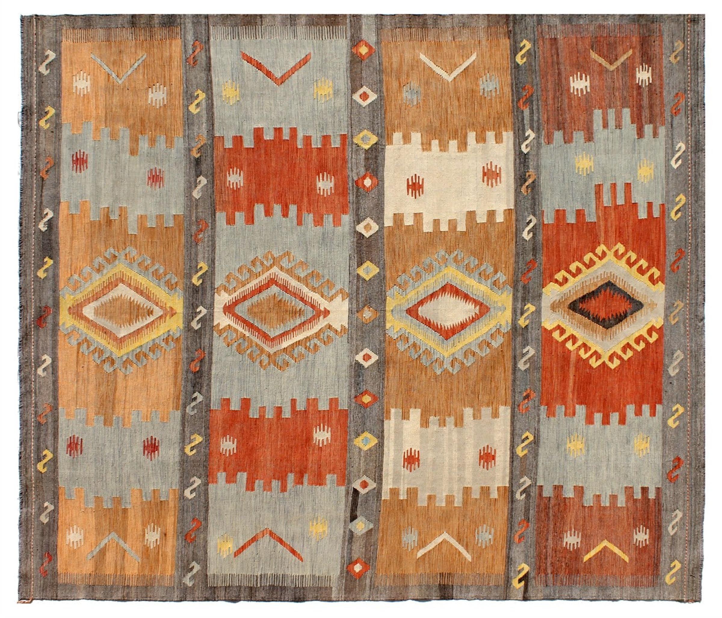 Tämä käsinkudottu Kelim-Afghan on väriensä ja tyypillisten kuvioidensa ansiosta todella kaunis. Se on Afganistanissa 100% villasta käsinkudottu. Kestävä ja pitkäikäinen myös sen lisäksi. Voitto Teille ja kodillenne kautta linjan.