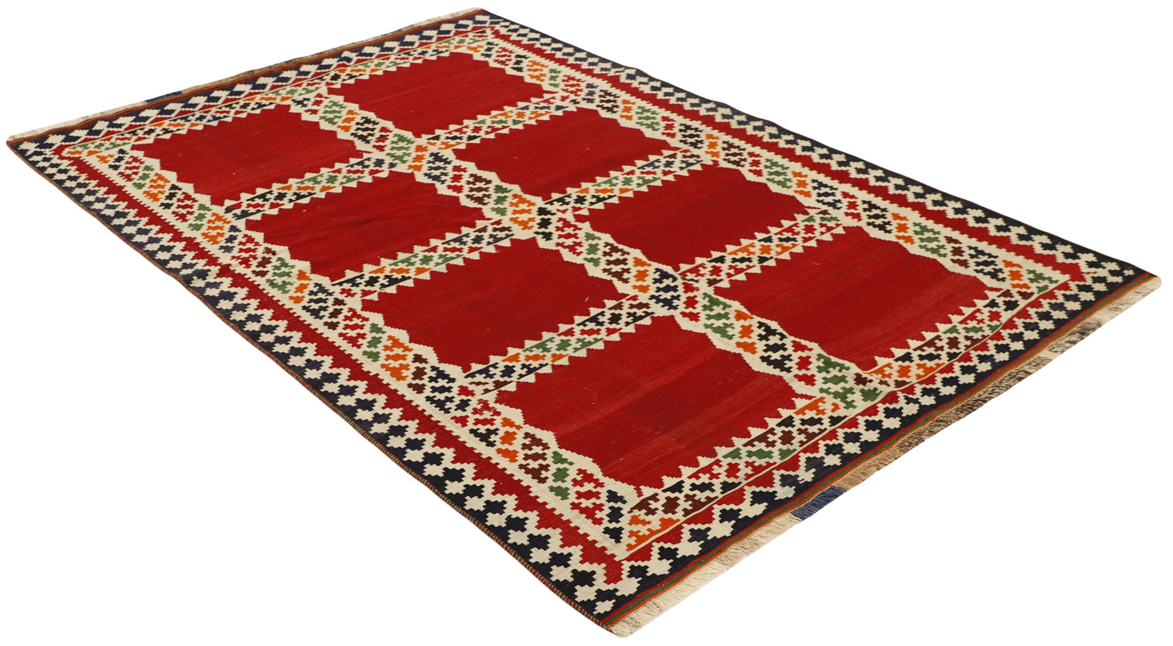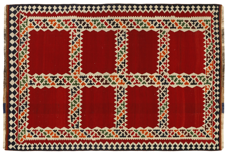 Tässä käsin kudotussa kilim farsissa persialaiset kuviot ja koristeet yhdistyvät litteän kudoksen perinteeseen. Upea ja moderni yhdistelmä itämaiden suosituimpia konsepteja. Tämä luo maton, jolla on laaja valikoima käyttötarkoituksia. Olipa kyseessä päiväpeite tai matto sohvan edessä – Fars kilim tekee sen mahdolliseksi ja löytyy nyt tunnetuimmista sisustuslehdistä. Kilim Fars -matot on kudottu käsin Iranissa, joten ne ovat laadukkaimpia kilimejä.
