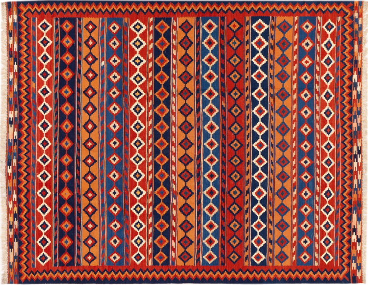 Tässä käsin kudotussa kilim farsissa persialaiset kuviot ja koristeet yhdistyvät litteän kudoksen perinteeseen. Upea ja moderni yhdistelmä itämaiden suosituimpia konsepteja. Tämä luo maton, jolla on laaja valikoima käyttötarkoituksia. Olipa kyseessä päiväpeite tai matto sohvan edessä – Fars kilim tekee sen mahdolliseksi ja löytyy nyt tunnetuimmista sisustuslehdistä. Kilim Fars -matot on kudottu käsin Iranissa, joten ne ovat laadukkaimpia kilimejä.