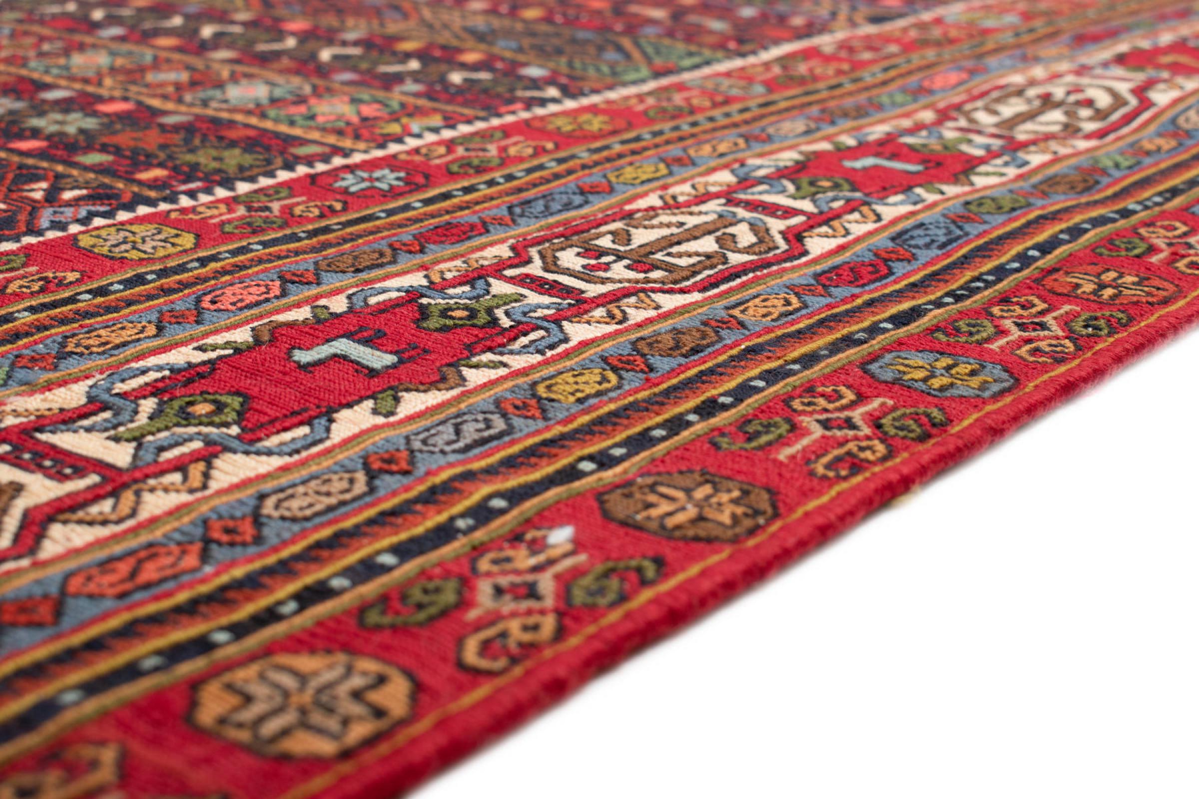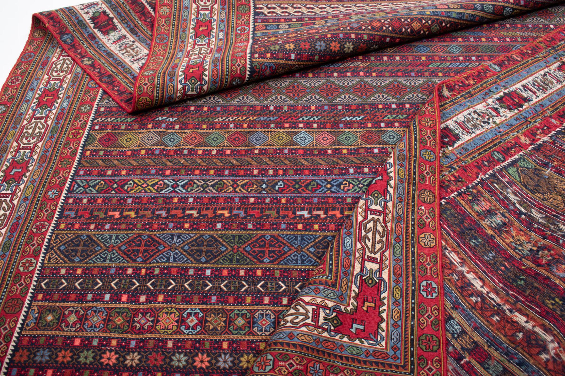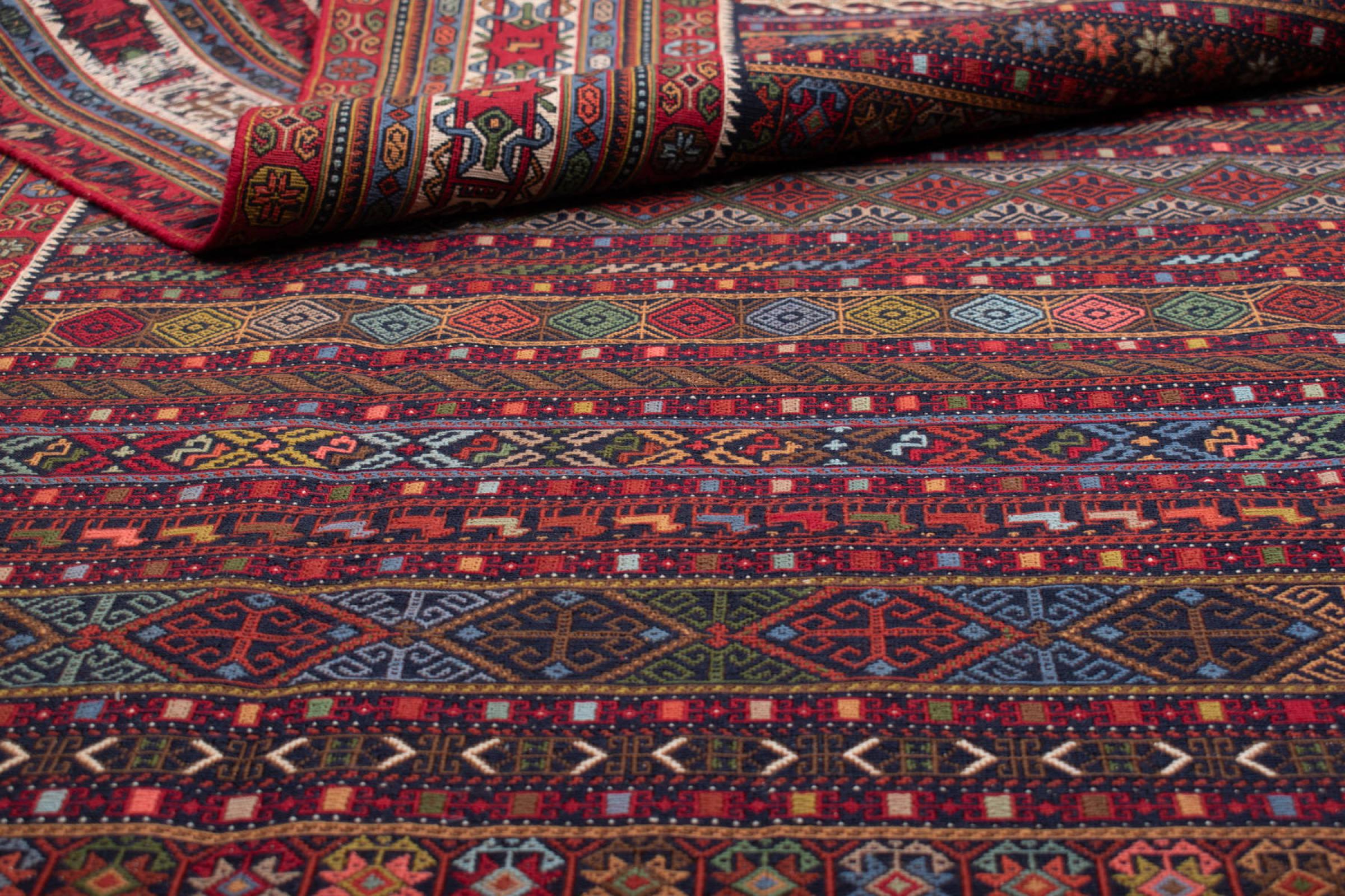 Tässä käsin kudotussa kilim farsissa persialaiset kuviot ja koristeet yhdistyvät litteän kudoksen perinteeseen. Upea ja moderni yhdistelmä itämaiden suosituimpia konsepteja. Tämä luo maton, jolla on laaja valikoima käyttötarkoituksia. Olipa kyseessä päiväpeite tai matto sohvan edessä – Fars kilim tekee sen mahdolliseksi ja löytyy nyt tunnetuimmista sisustuslehdistä. Kilim Fars -matot on kudottu käsin Iranissa, joten ne ovat laadukkaimpia kilimejä.