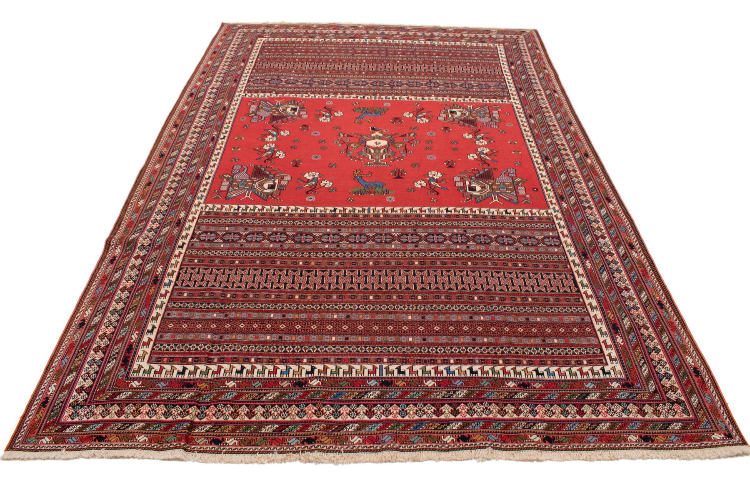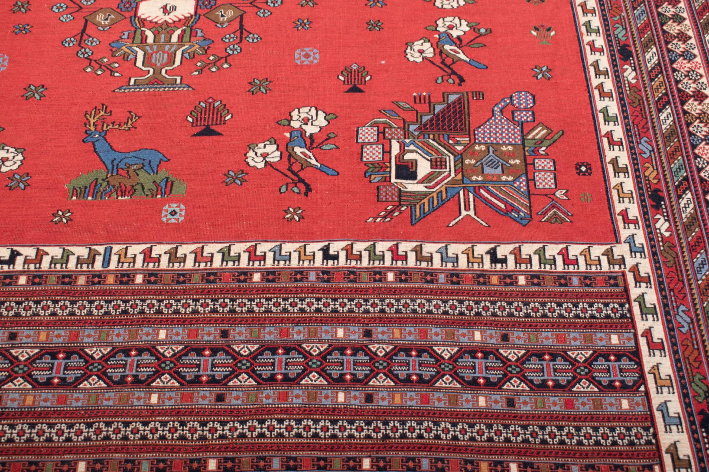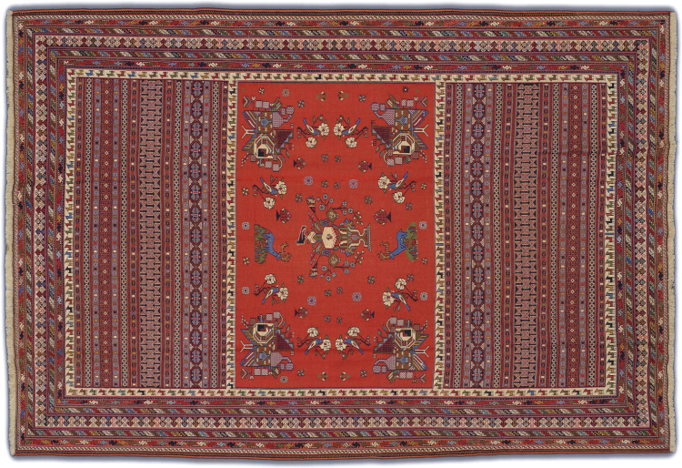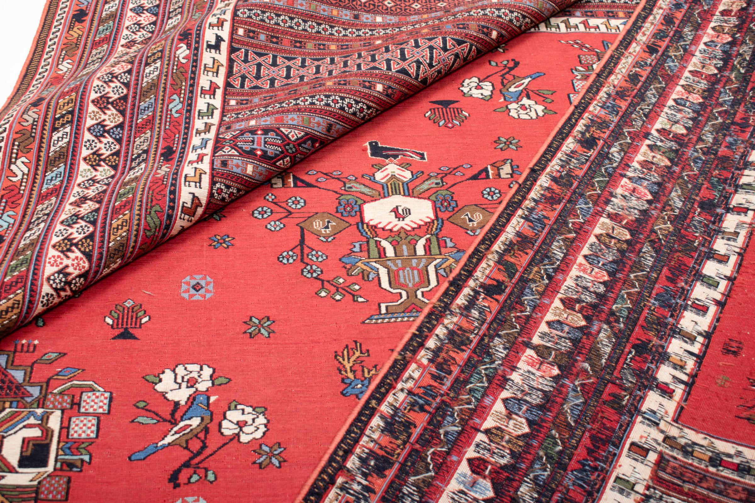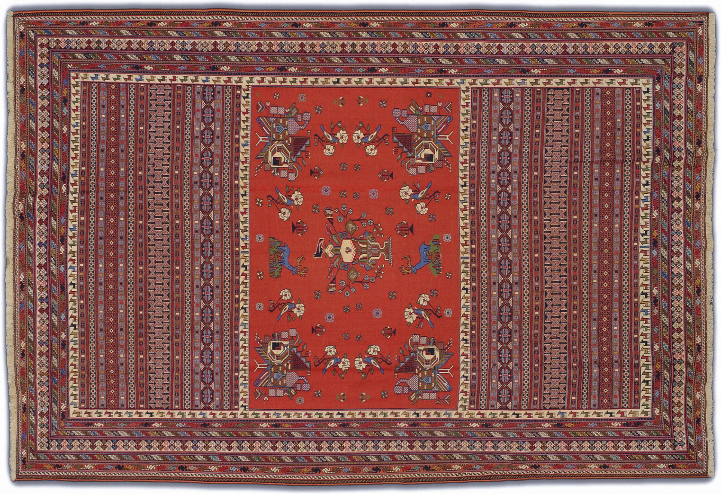 Tässä käsin kudotussa kilim farsissa persialaiset kuviot ja koristeet yhdistyvät litteän kudoksen perinteeseen. Upea ja moderni yhdistelmä itämaiden suosituimpia konsepteja. Tämä luo maton, jolla on laaja valikoima käyttötarkoituksia. Olipa kyseessä päiväpeite tai matto sohvan edessä – Fars kilim tekee sen mahdolliseksi ja löytyy nyt tunnetuimmista sisustuslehdistä. Kilim Fars -matot on kudottu käsin Iranissa, joten ne ovat laadukkaimpia kilimejä.