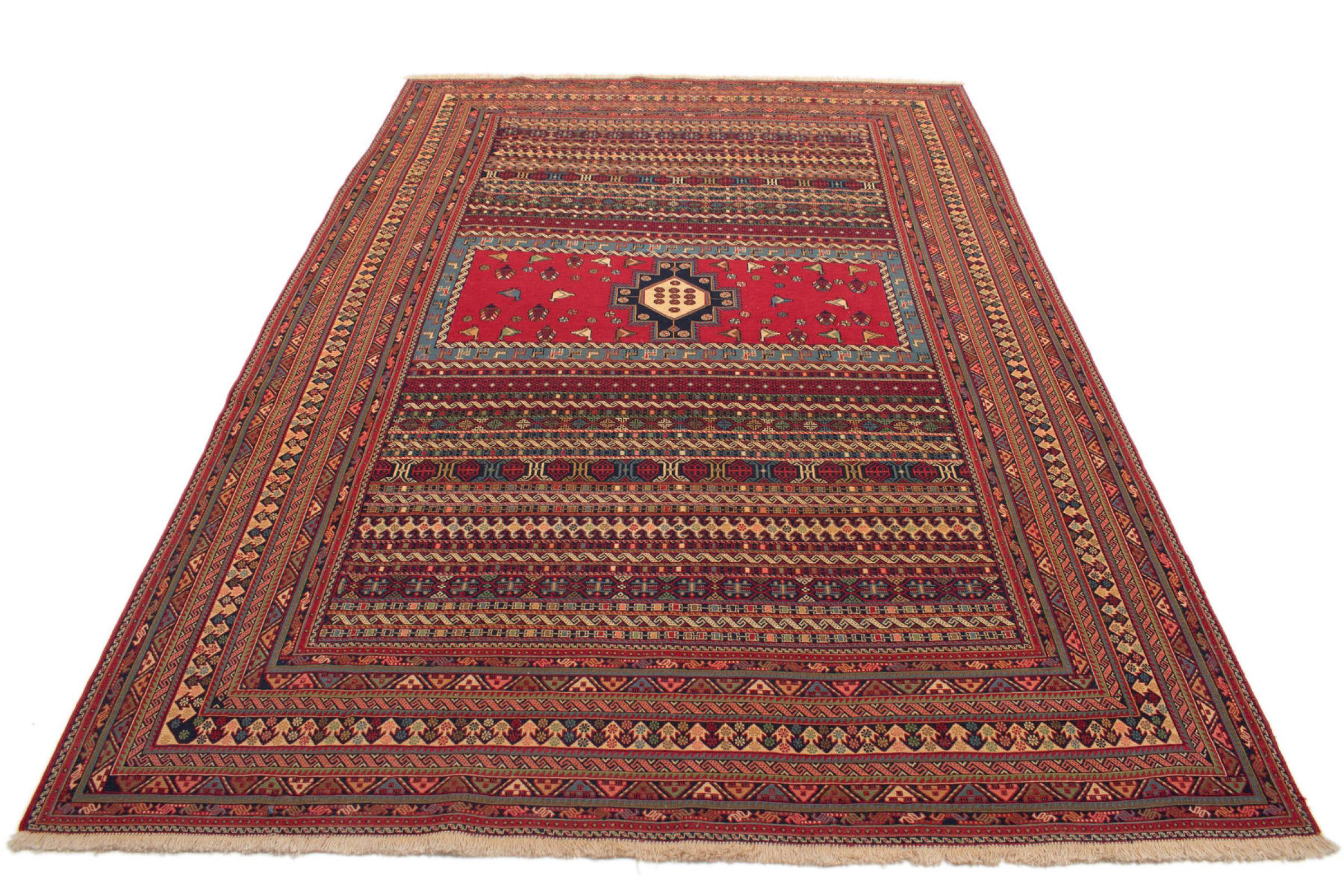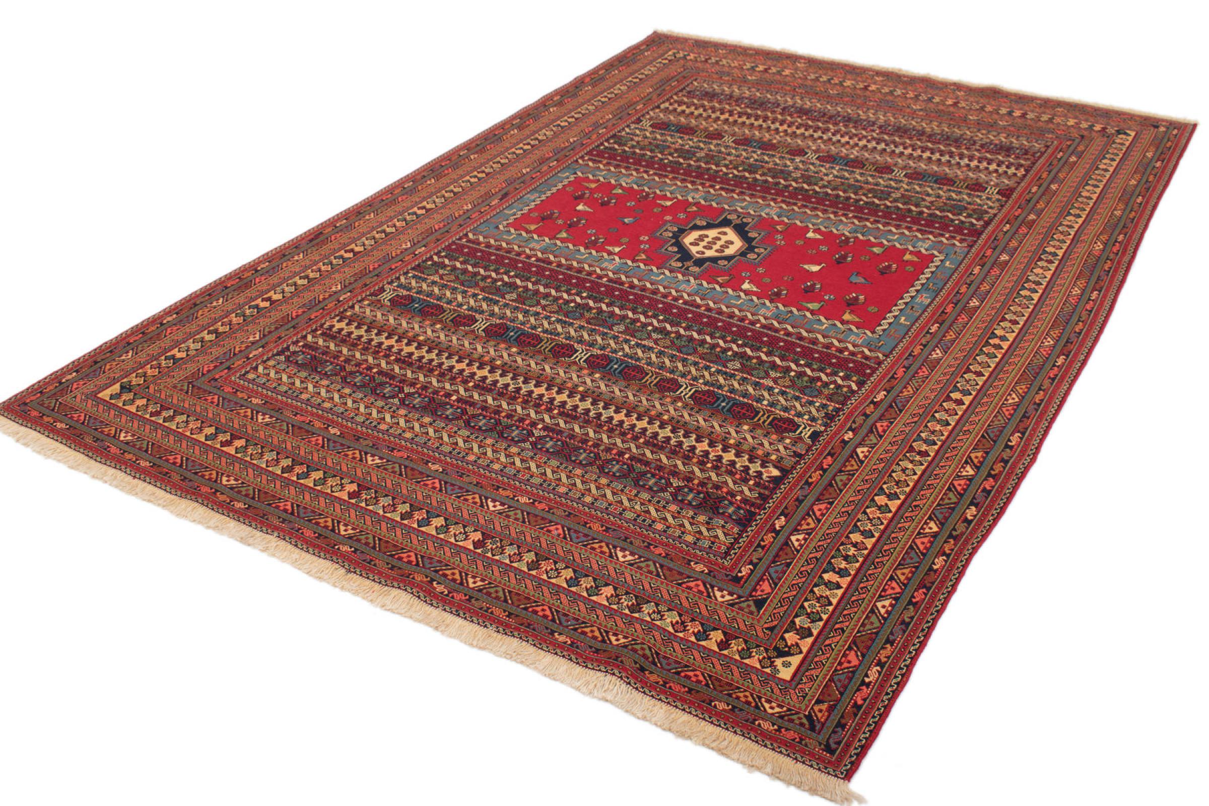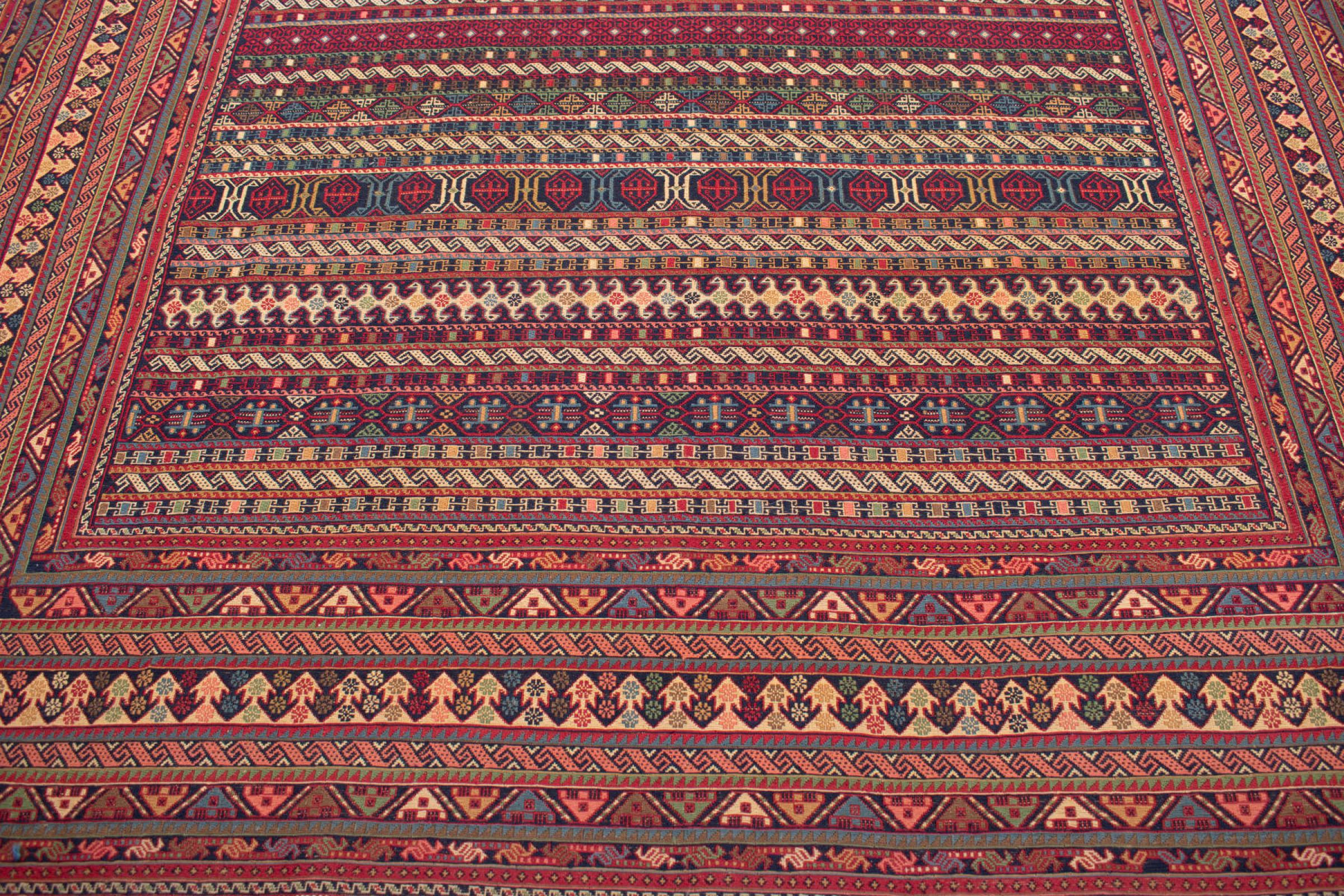 Tässä käsin kudotussa kilim farsissa persialaiset kuviot ja koristeet yhdistyvät litteän kudoksen perinteeseen. Upea ja moderni yhdistelmä itämaiden suosituimpia konsepteja. Tämä luo maton, jolla on laaja valikoima käyttötarkoituksia. Olipa kyseessä päiväpeite tai matto sohvan edessä – Fars kilim tekee sen mahdolliseksi ja löytyy nyt tunnetuimmista sisustuslehdistä. Kilim Fars -matot on kudottu käsin Iranissa, joten ne ovat laadukkaimpia kilimejä.