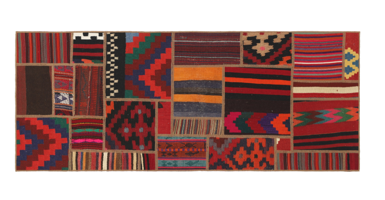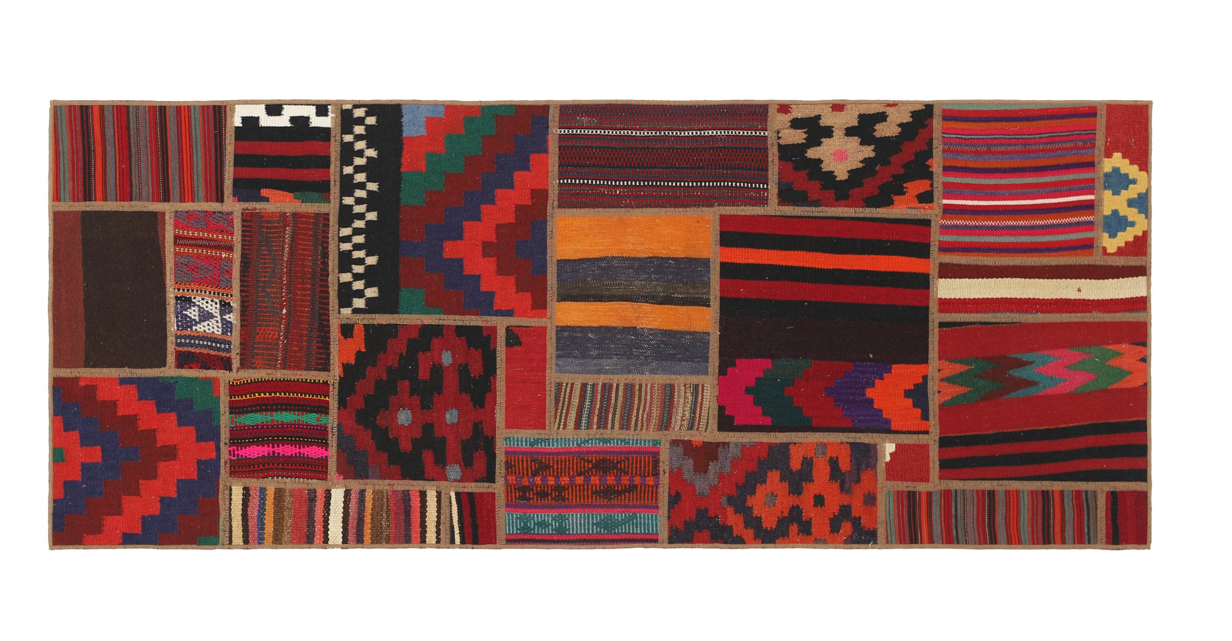 Käsin huolellisesti valmistettu on tämä Kelim-Patchwork-matto. Perinteinen kudontatekniikka tarjoaa perustan tälle epätavalliselle matolle erityisellä muotoilullaan ja kuvioinnilla.