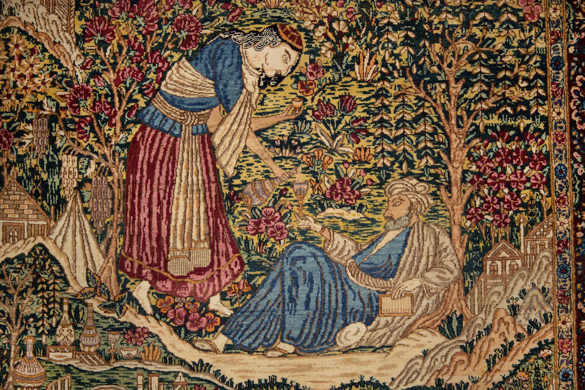 Tämä matto on peräisin Iranista (entinen Persia) ja on todennäköisesti korkein maine kaikista käsinsolmittuista matoista persialaisena matona. Yksikään alue ei takaa vertailukelpoista pitkää perinnettä mattojen kutomisessa kuin Iran. Näin tulevat tänne hienoimpia ja hienoimpia mattoja. Persialaisen solmun kestävyys, kestävyys ja laatu ovat edelleen verraton tänään. Persialaiset matot on yleensä nimetty alkuperäalueeltasi. Joten sekä nain, ghom että isfahan matto ovat lähtöisin samannimisestä kaupungista Iranissa.