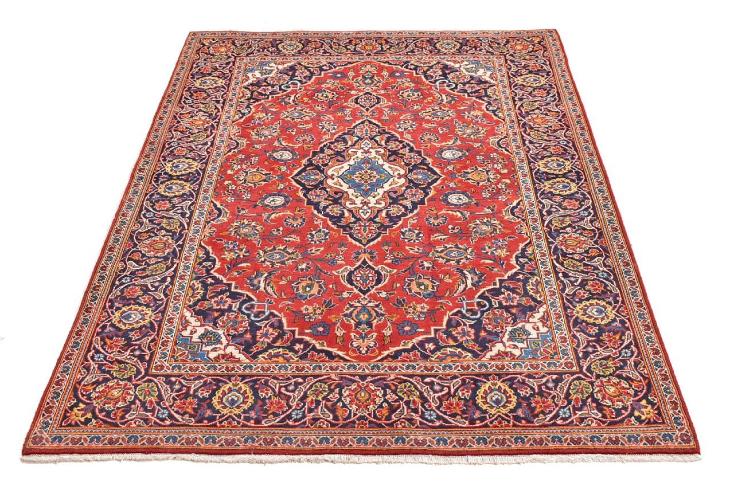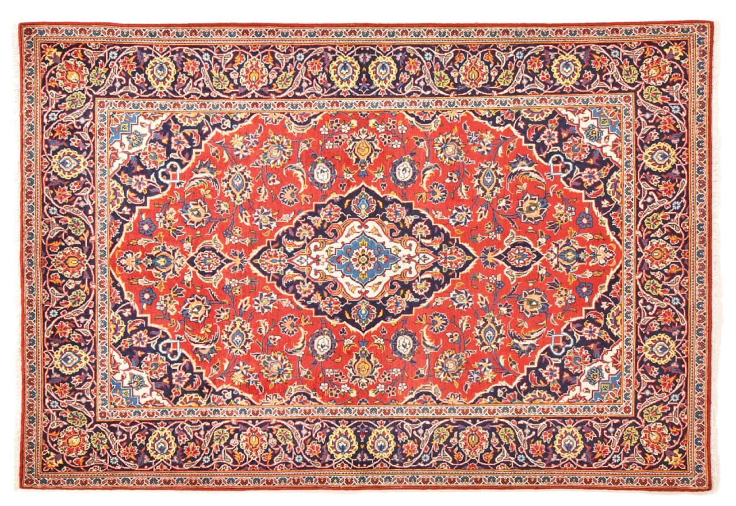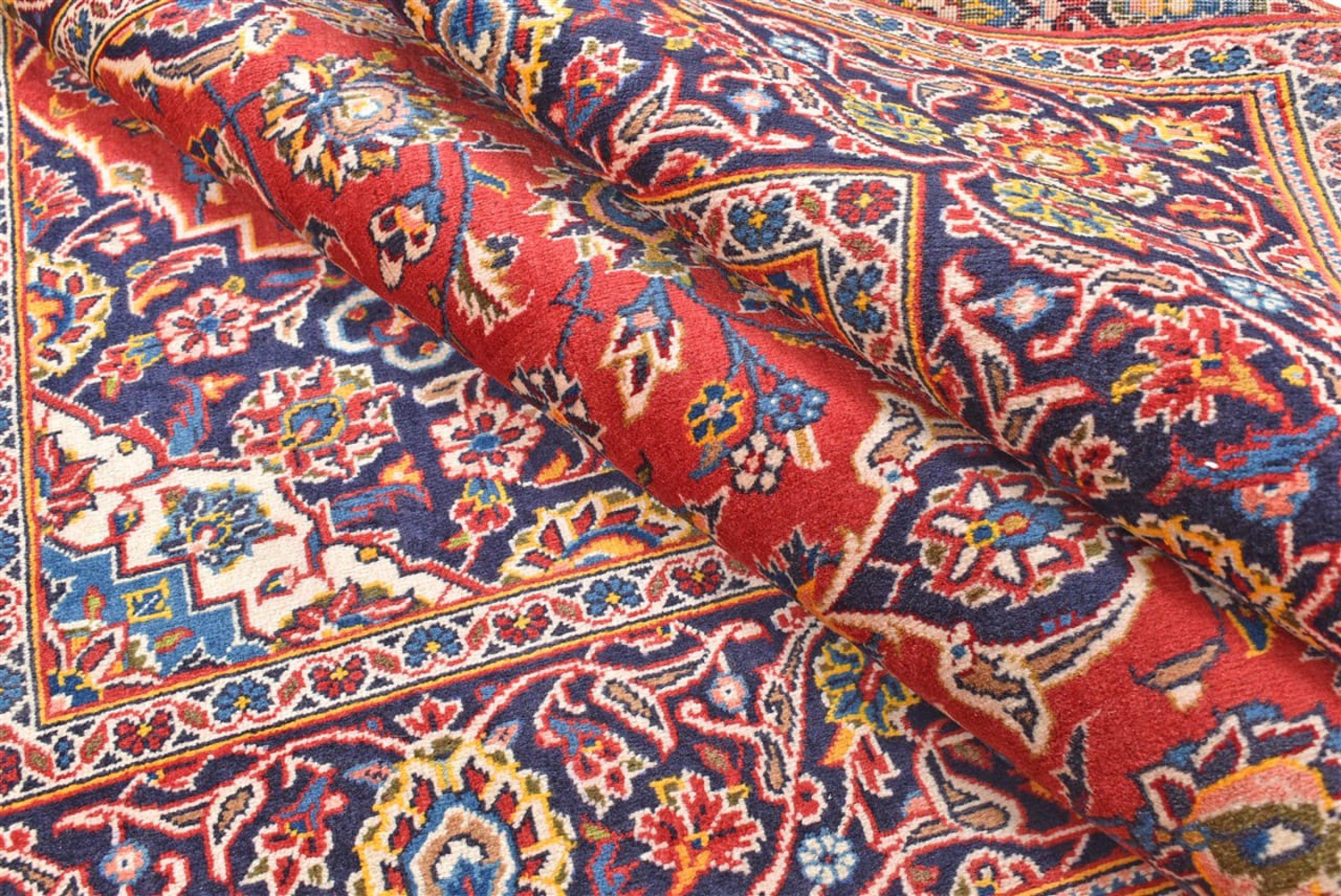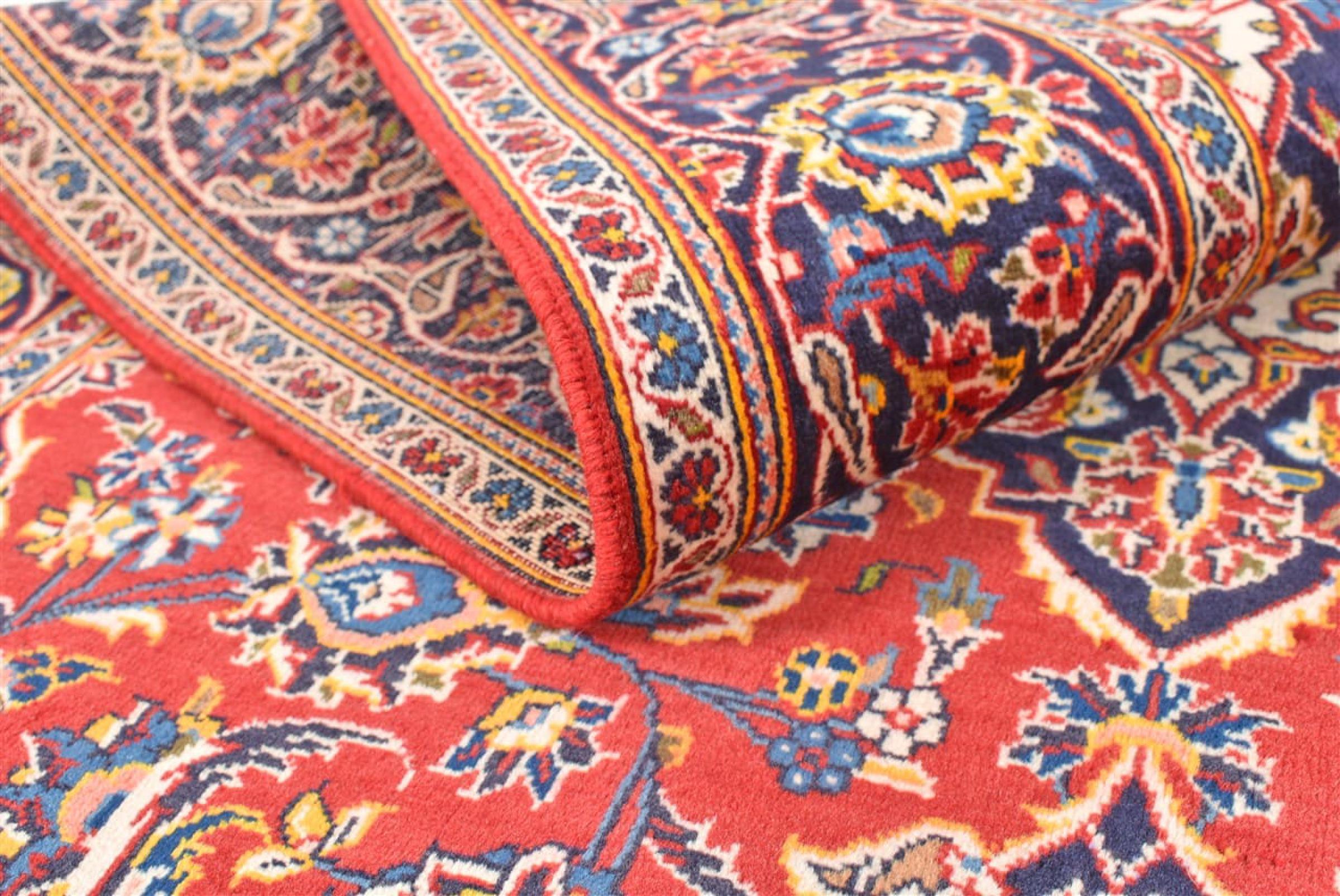 Tämä Kashanista (Keshan) kotoisin oleva matto on hyvin perinteinen ja tyypillinen persialainen muotoilu kauniilla koristeilla. Kashan-matot ovat erittäin suosittuja poikkeuksellisen tyylikkään muotoilunsa ansiosta. Nämä matot ovat peräisin Kashanista, muinaisen Silkkitien varrella sijaitsevasta kaupungista. Tämä matto on solmittu käsin korkealaatuisesta lampaanvillasta, ja se tulee olemaan ainutlaatuinen kohokohta kotiisi.