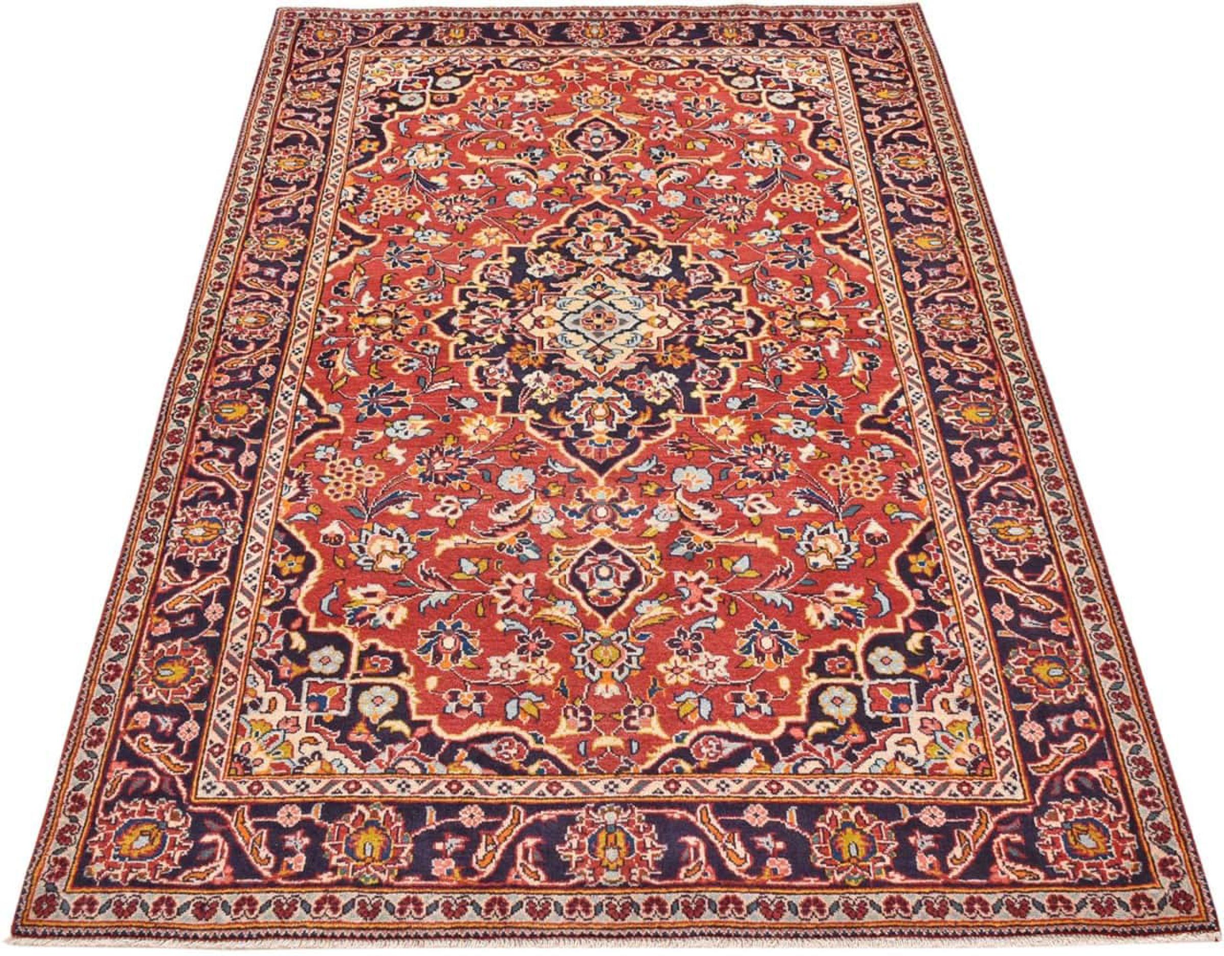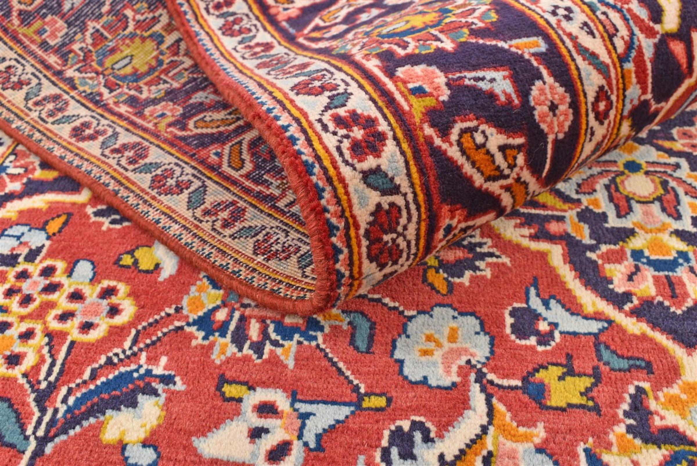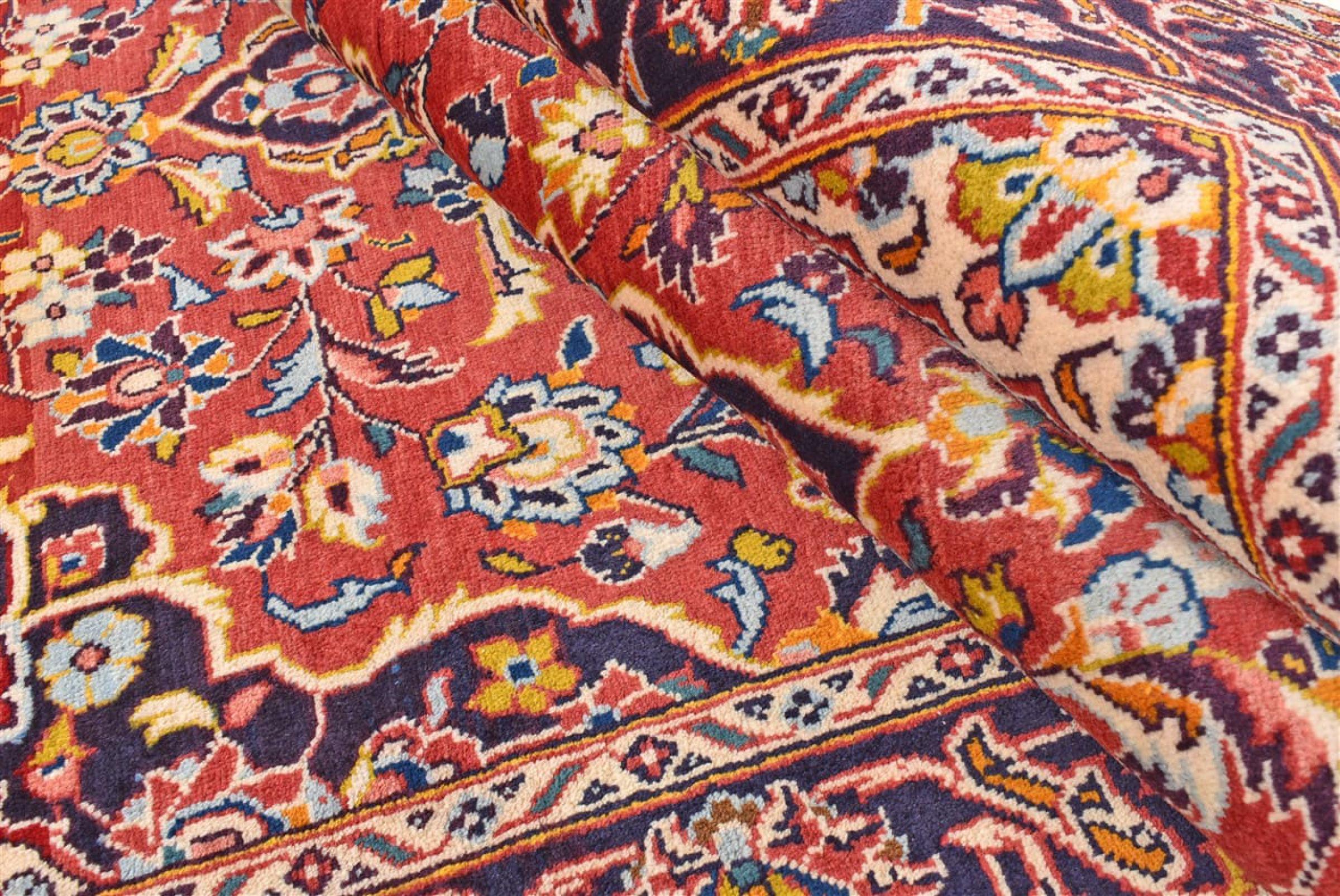 Tämä Kashanista (Keshan) kotoisin oleva matto on hyvin perinteinen ja tyypillinen persialainen muotoilu kauniilla koristeilla. Kashan-matot ovat erittäin suosittuja poikkeuksellisen tyylikkään muotoilunsa ansiosta. Nämä matot ovat peräisin Kashanista, muinaisen Silkkitien varrella sijaitsevasta kaupungista. Tämä matto on solmittu käsin korkealaatuisesta lampaanvillasta, ja se tulee olemaan ainutlaatuinen kohokohta kotiisi.