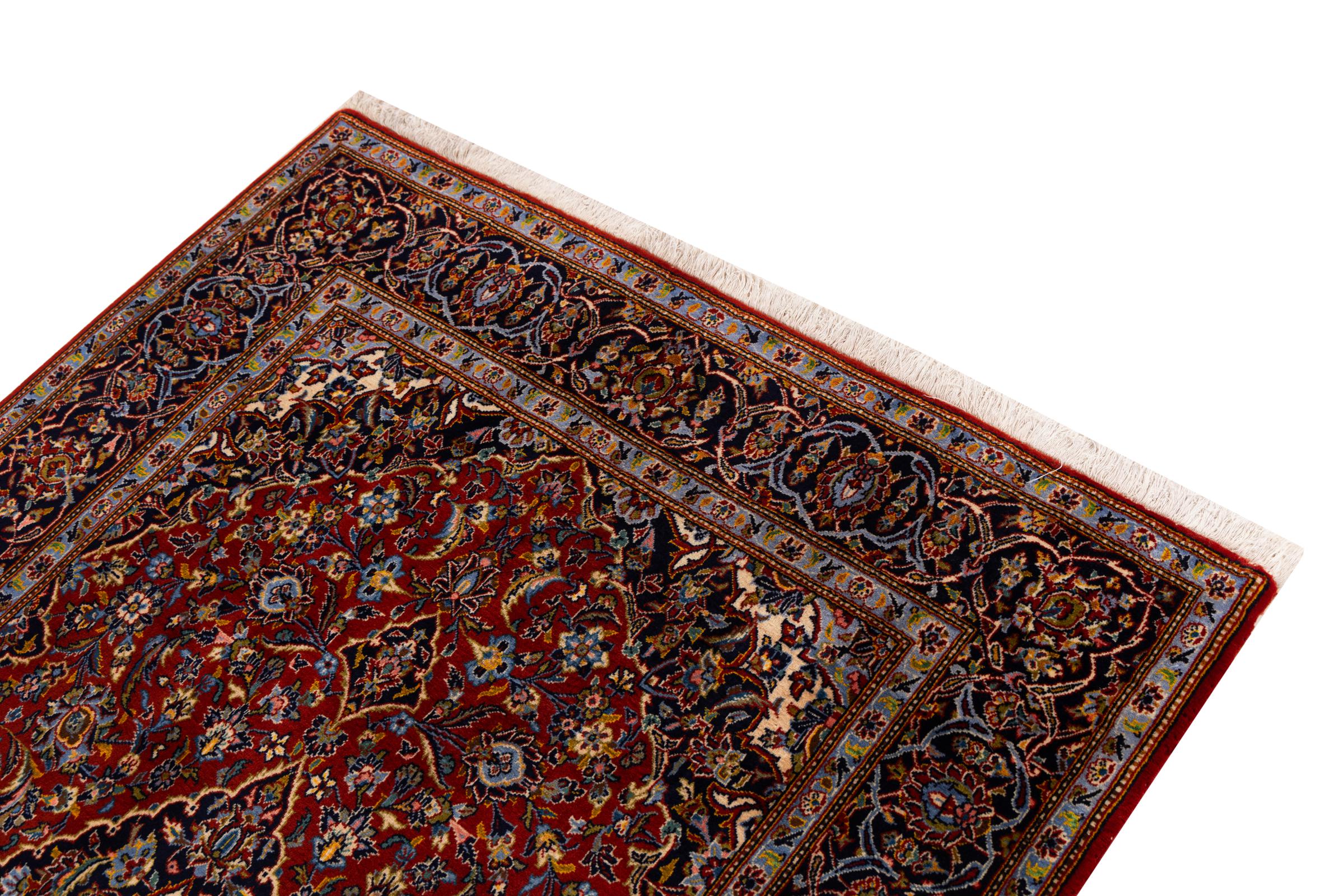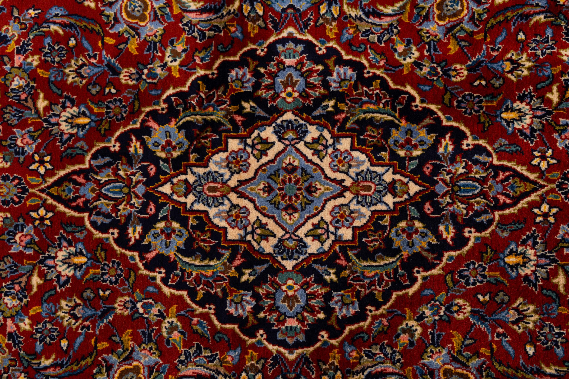 Tämä Kashanista (Keshan) kotoisin oleva matto on hyvin perinteinen ja tyypillinen persialainen muotoilu kauniilla koristeilla. Kashan-matot ovat erittäin suosittuja poikkeuksellisen tyylikkään muotoilunsa ansiosta. Nämä matot ovat peräisin Kashanista, muinaisen Silkkitien varrella sijaitsevasta kaupungista. Tämä matto on solmittu käsin korkealaatuisesta lampaanvillasta, ja se tulee olemaan ainutlaatuinen kohokohta kotiisi.