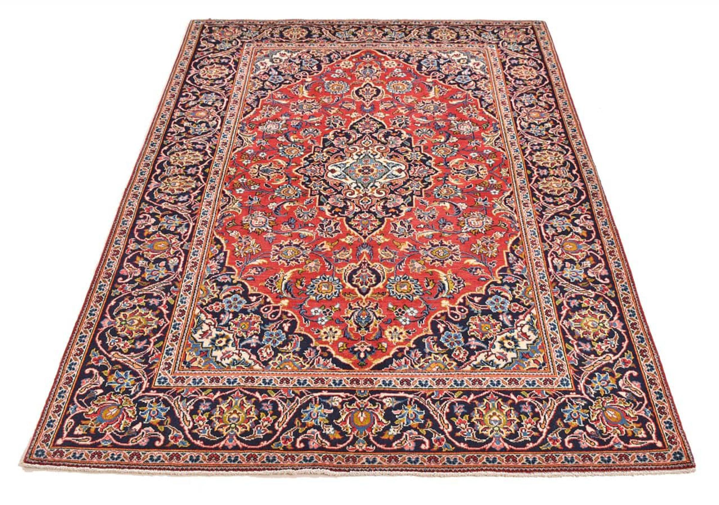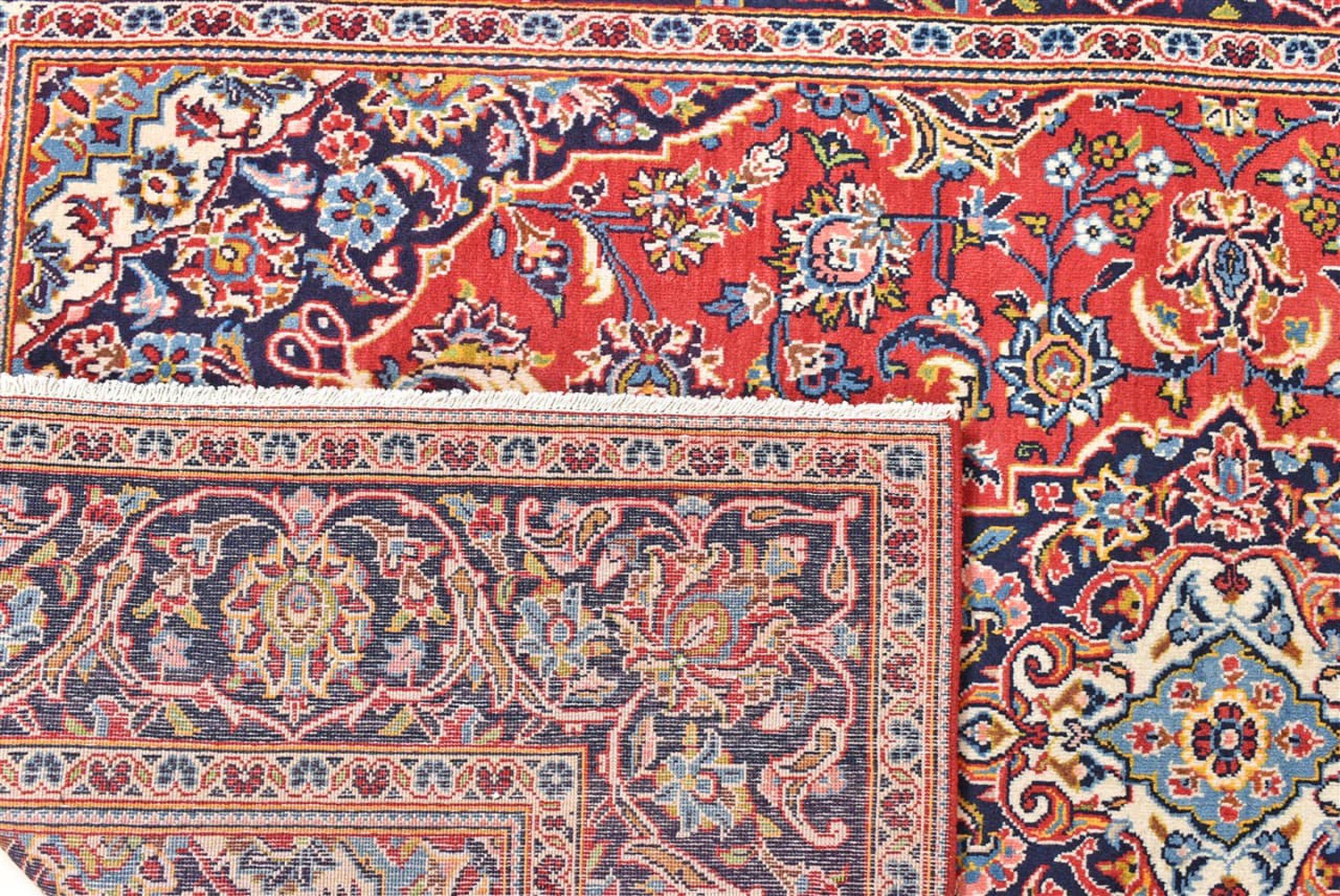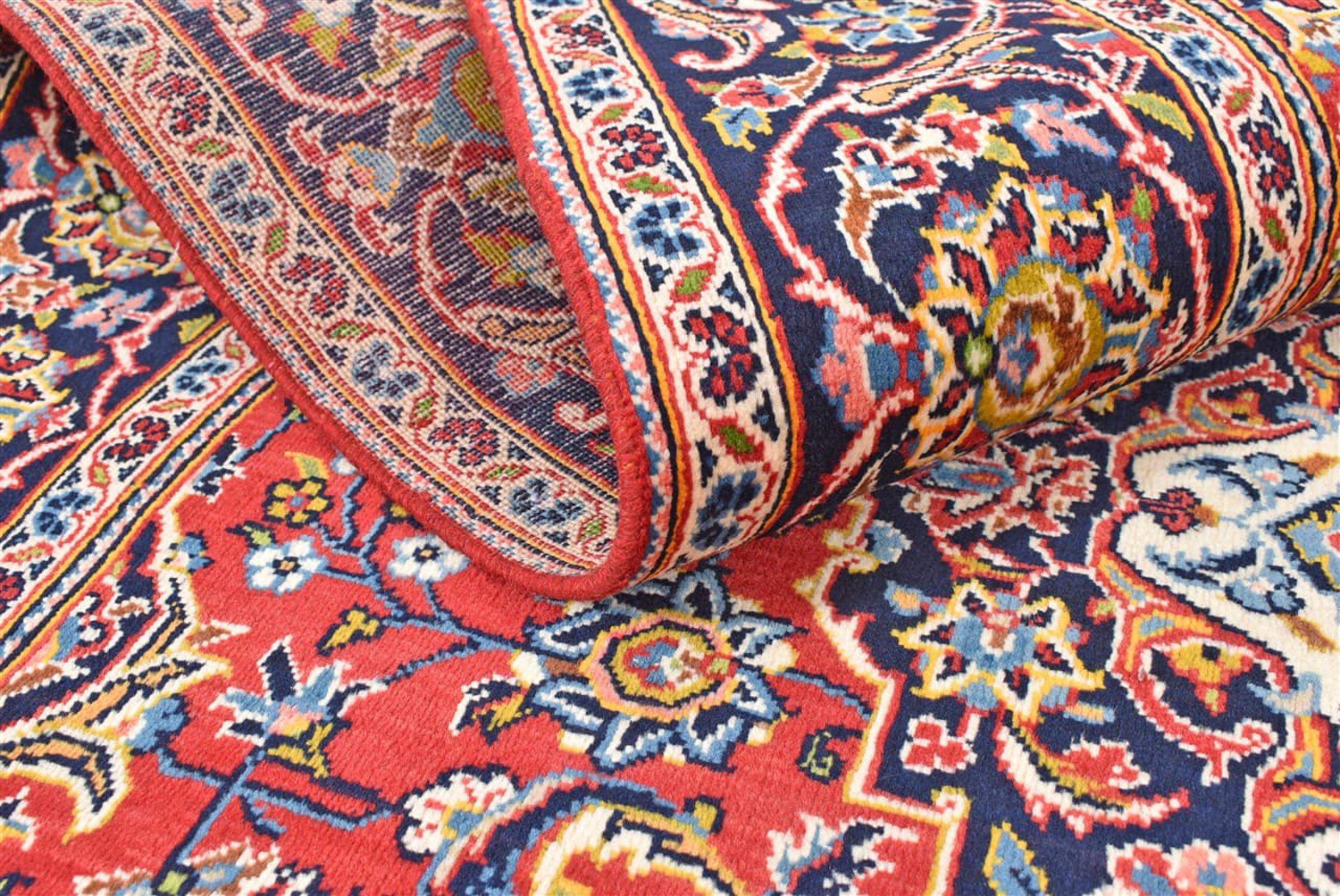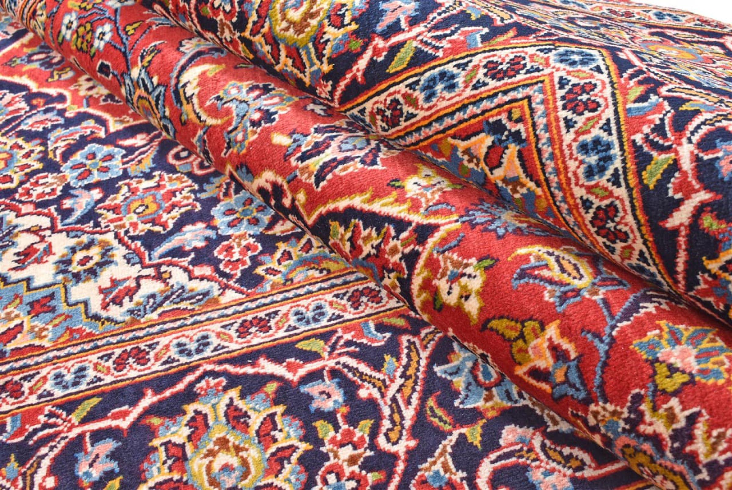 Tämä Kashanista (Keshan) kotoisin oleva matto on hyvin perinteinen ja tyypillinen persialainen muotoilu kauniilla koristeilla. Kashan-matot ovat erittäin suosittuja poikkeuksellisen tyylikkään muotoilunsa ansiosta. Nämä matot ovat peräisin Kashanista, muinaisen Silkkitien varrella sijaitsevasta kaupungista. Tämä matto on solmittu käsin korkealaatuisesta lampaanvillasta, ja se tulee olemaan ainutlaatuinen kohokohta kotiisi.