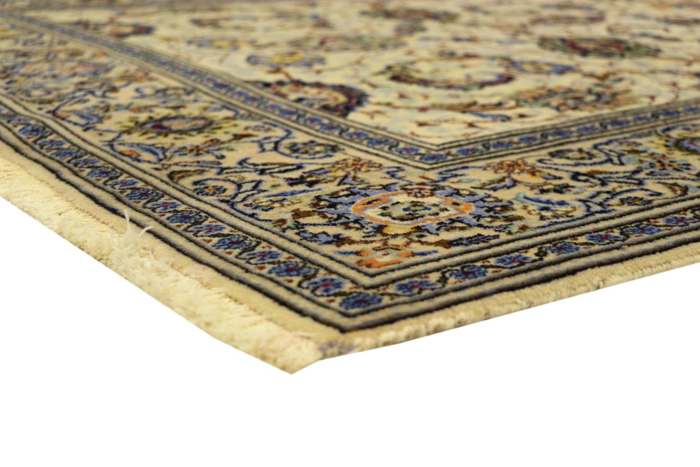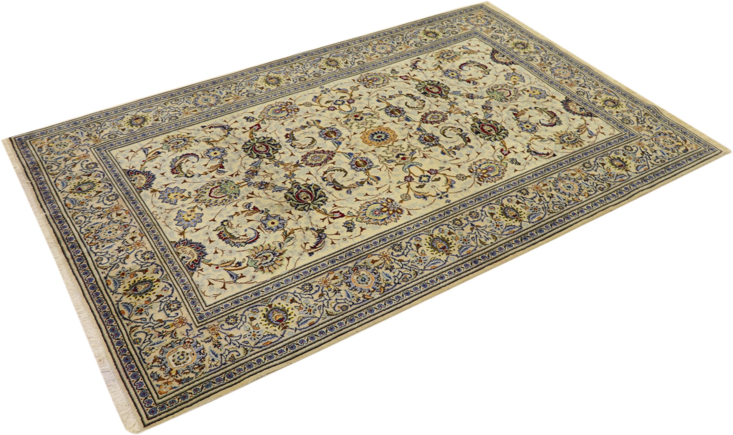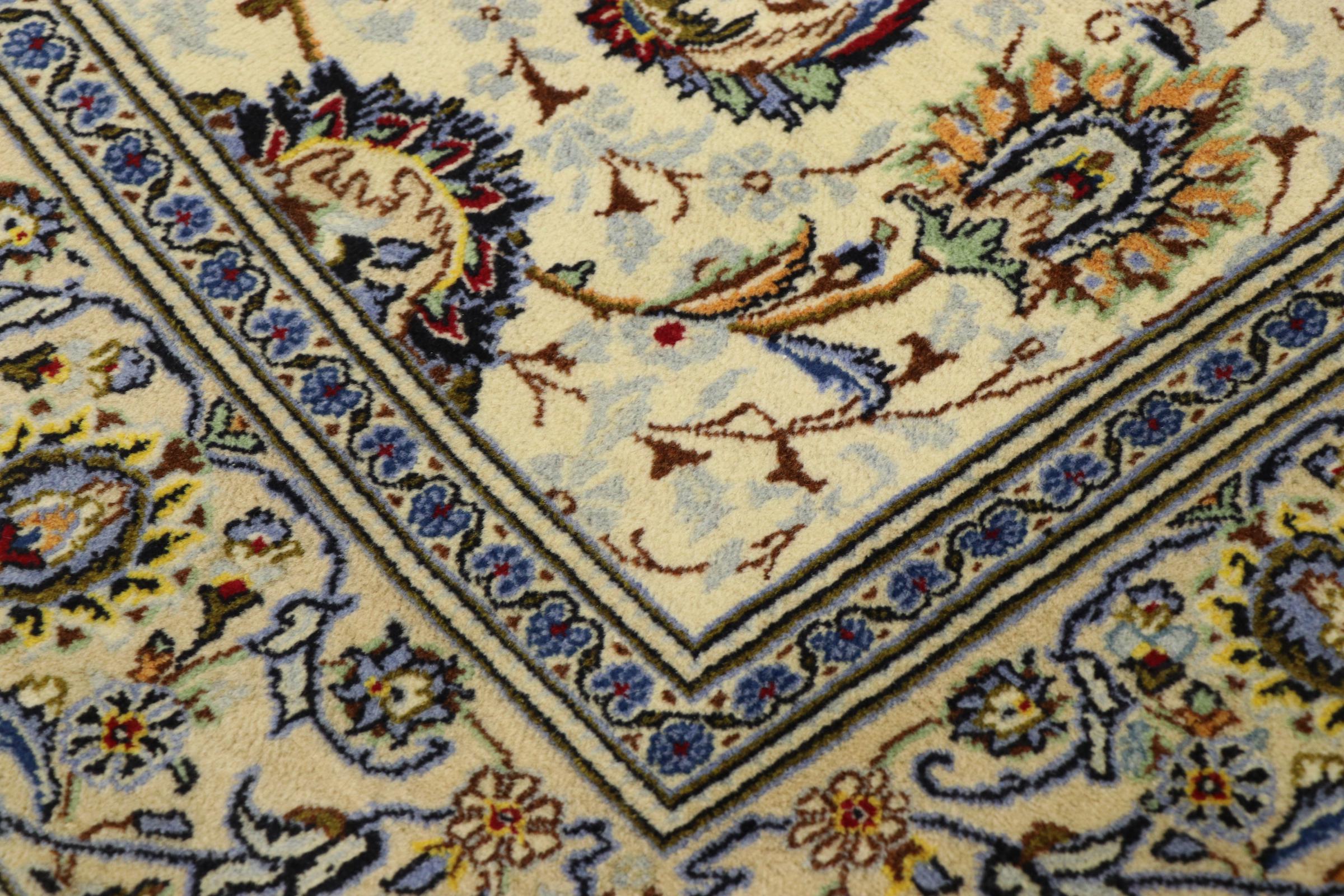 Tämä Kashanista (Keshan) kotoisin oleva matto on hyvin perinteinen ja tyypillinen persialainen muotoilu kauniilla koristeilla. Kashan-matot ovat erittäin suosittuja poikkeuksellisen tyylikkään muotoilunsa ansiosta. Nämä matot ovat peräisin Kashanista, muinaisen Silkkitien varrella sijaitsevasta kaupungista. Tämä matto on solmittu käsin korkealaatuisesta lampaanvillasta, ja se tulee olemaan ainutlaatuinen kohokohta kotiisi.