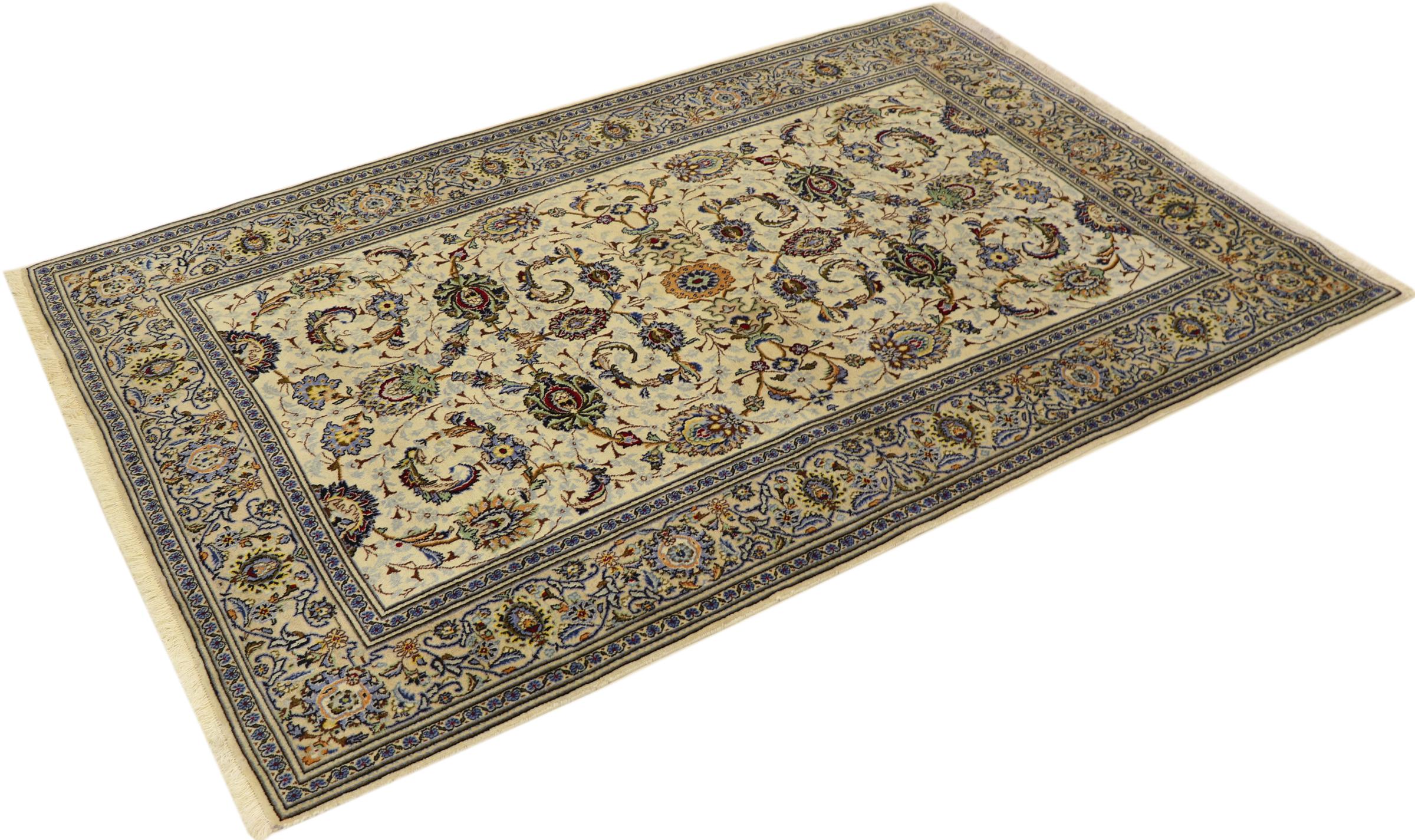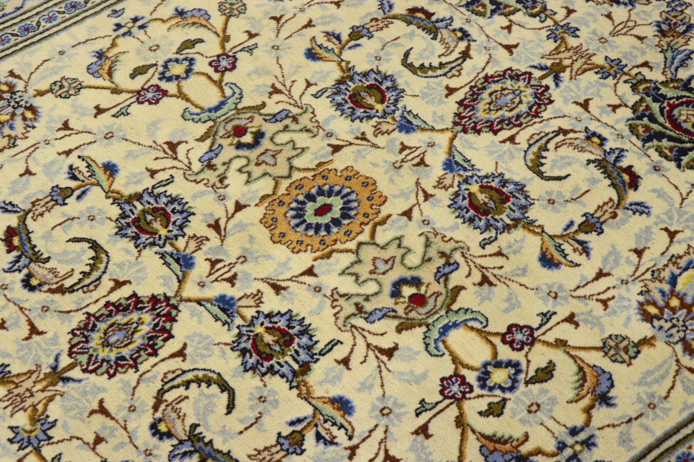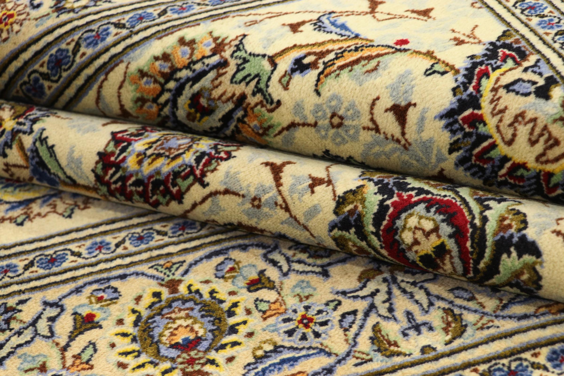 Tämä Kashanista (Keshan) kotoisin oleva matto on hyvin perinteinen ja tyypillinen persialainen muotoilu kauniilla koristeilla. Kashan-matot ovat erittäin suosittuja poikkeuksellisen tyylikkään muotoilunsa ansiosta. Nämä matot ovat peräisin Kashanista, muinaisen Silkkitien varrella sijaitsevasta kaupungista. Tämä matto on solmittu käsin korkealaatuisesta lampaanvillasta, ja se tulee olemaan ainutlaatuinen kohokohta kotiisi.