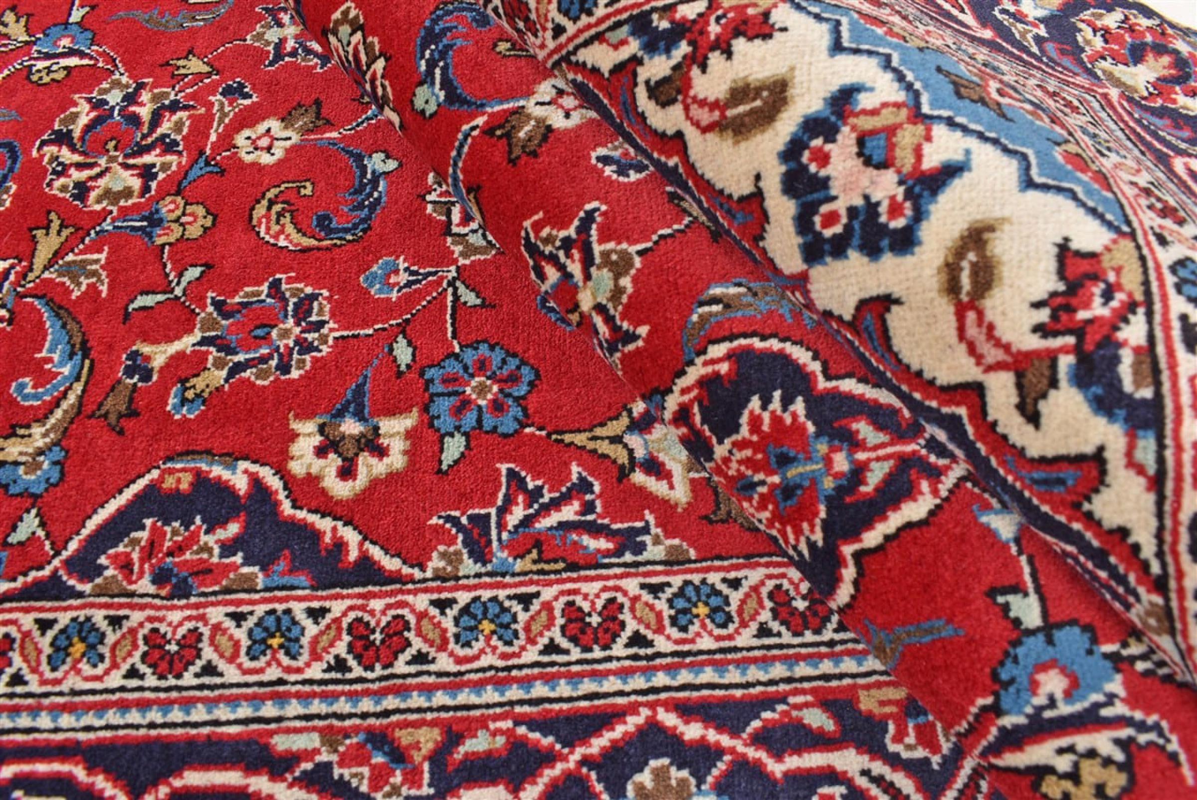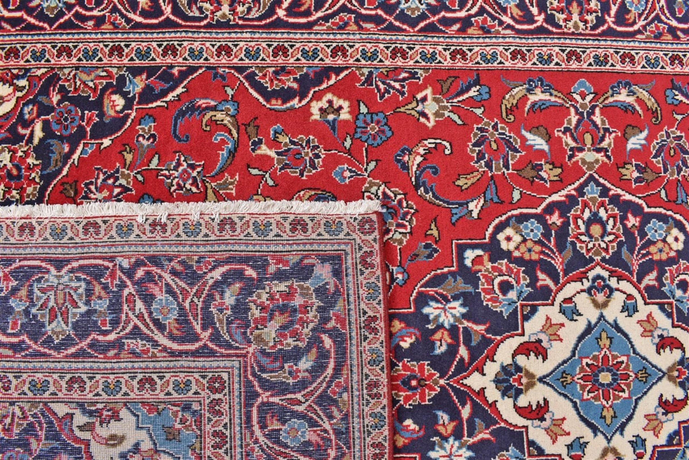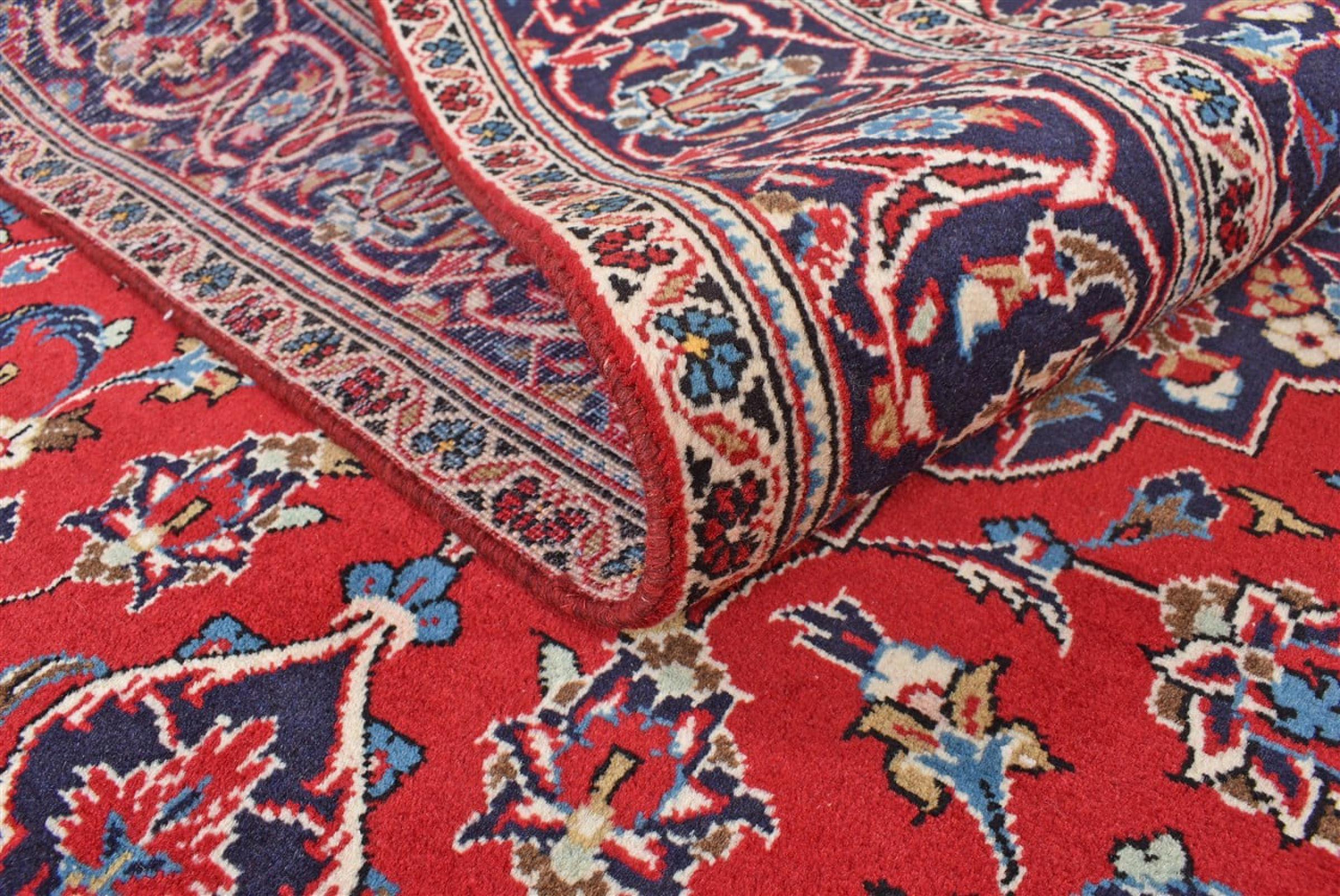 Tämä Kashanista (Keshan) kotoisin oleva matto on hyvin perinteinen ja tyypillinen persialainen muotoilu kauniilla koristeilla. Kashan-matot ovat erittäin suosittuja poikkeuksellisen tyylikkään muotoilunsa ansiosta. Nämä matot ovat peräisin Kashanista, muinaisen Silkkitien varrella sijaitsevasta kaupungista. Tämä matto on solmittu käsin korkealaatuisesta lampaanvillasta, ja se tulee olemaan ainutlaatuinen kohokohta kotiisi.