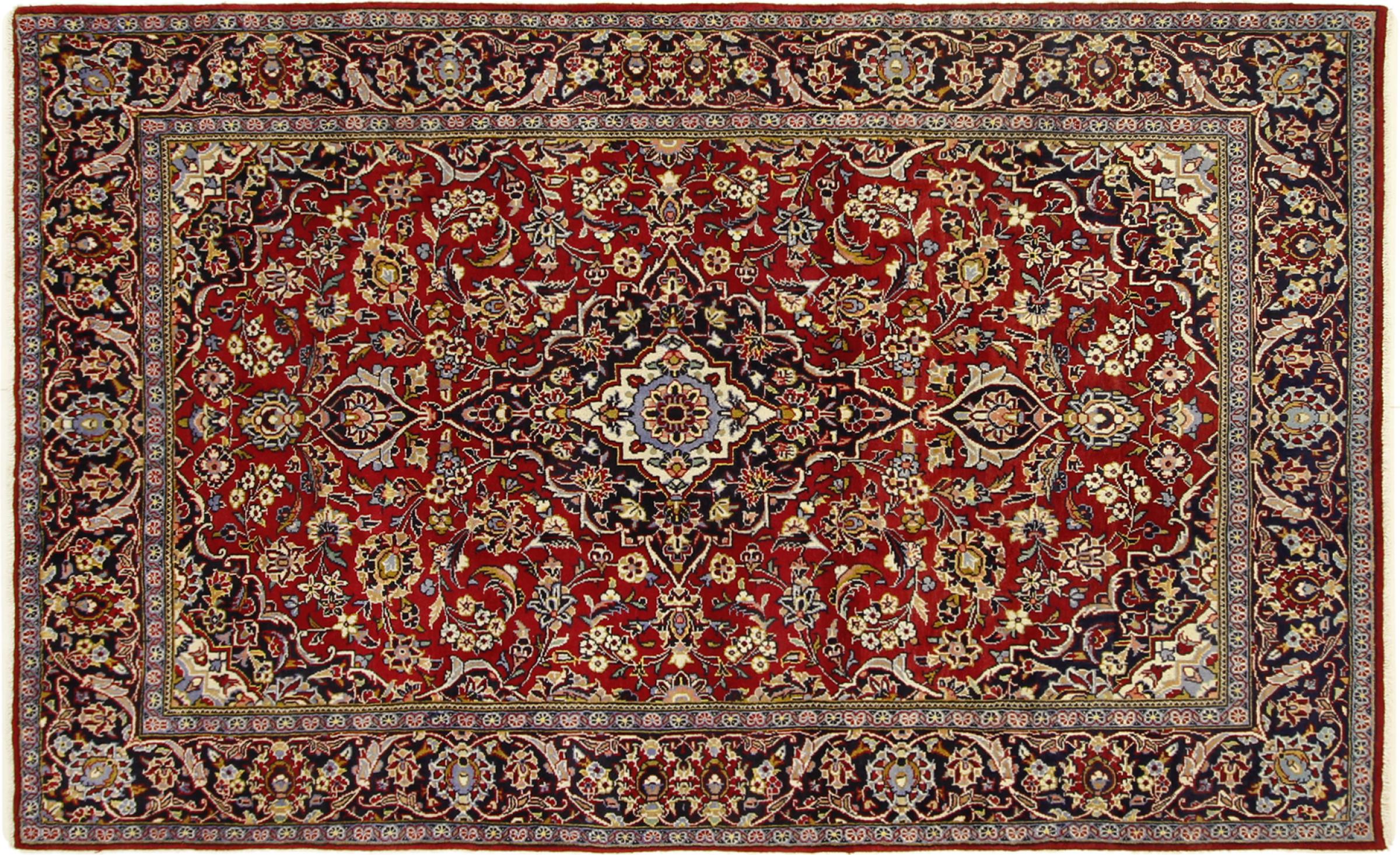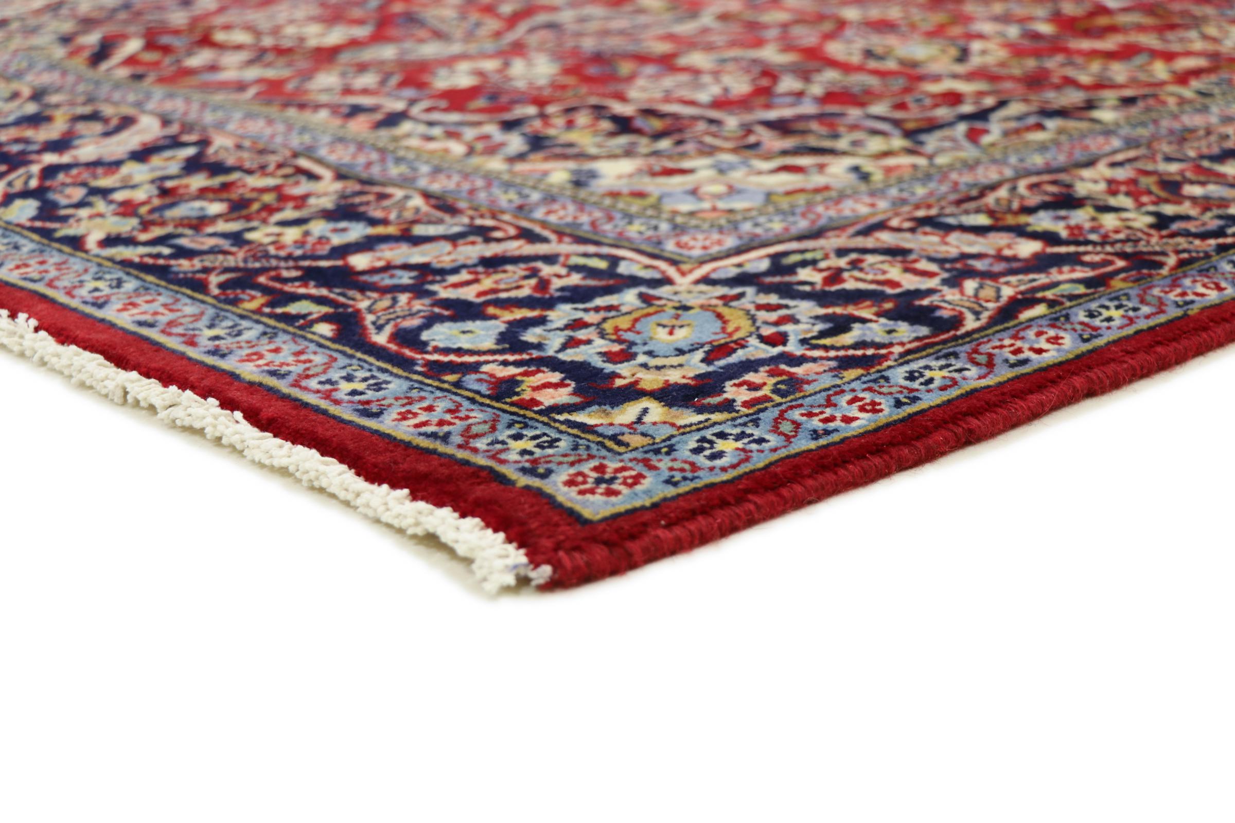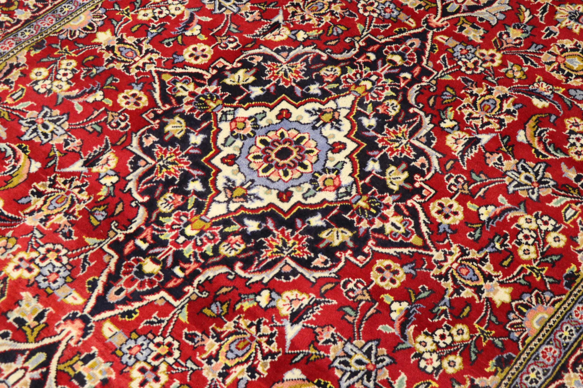 Tämä Kashanista (Keshan) kotoisin oleva matto on hyvin perinteinen ja tyypillinen persialainen muotoilu kauniilla koristeilla. Kashan-matot ovat erittäin suosittuja poikkeuksellisen tyylikkään muotoilunsa ansiosta. Nämä matot ovat peräisin Kashanista, muinaisen Silkkitien varrella sijaitsevasta kaupungista. Tämä matto on solmittu käsin korkealaatuisesta lampaanvillasta, ja se tulee olemaan ainutlaatuinen kohokohta kotiisi.