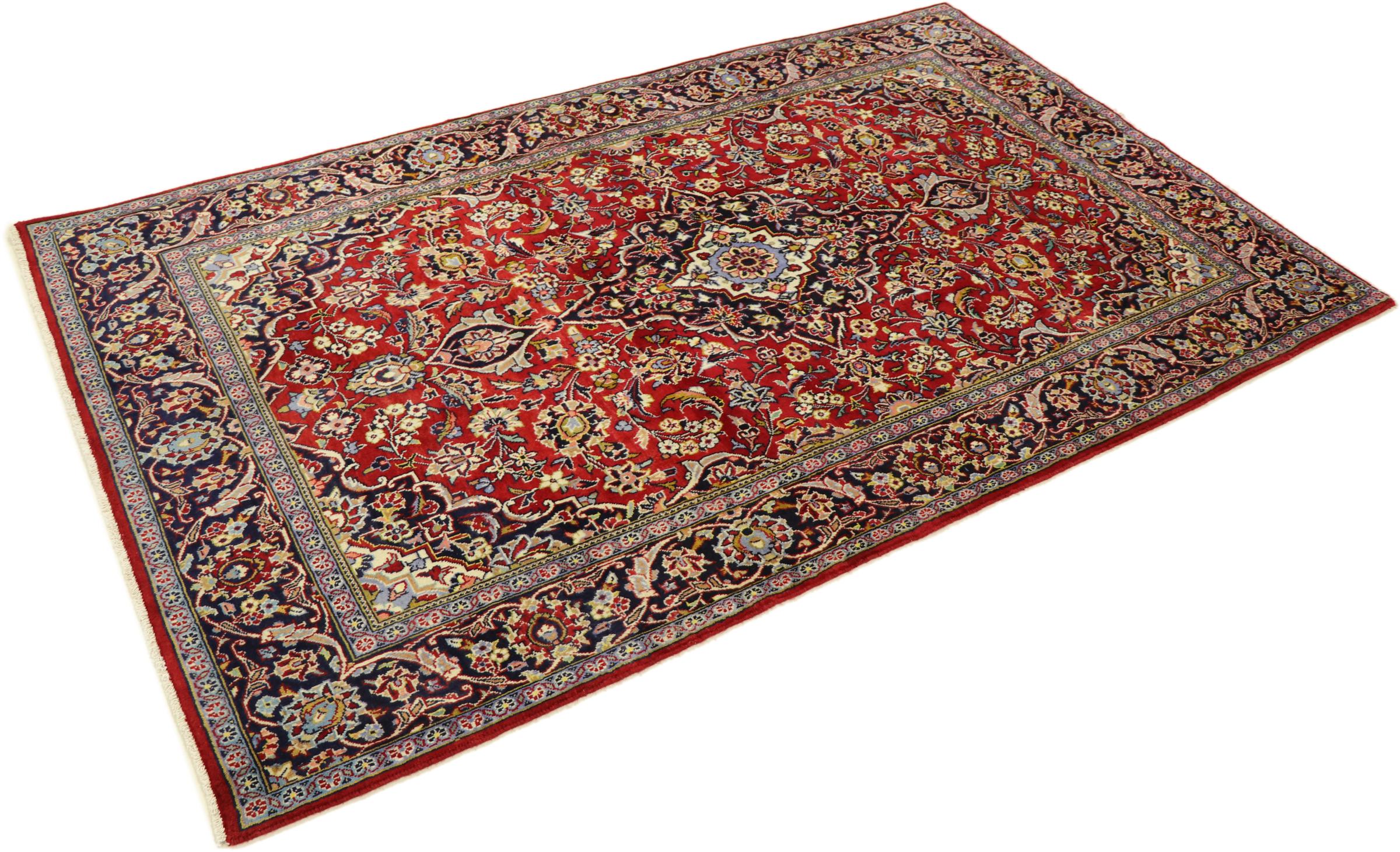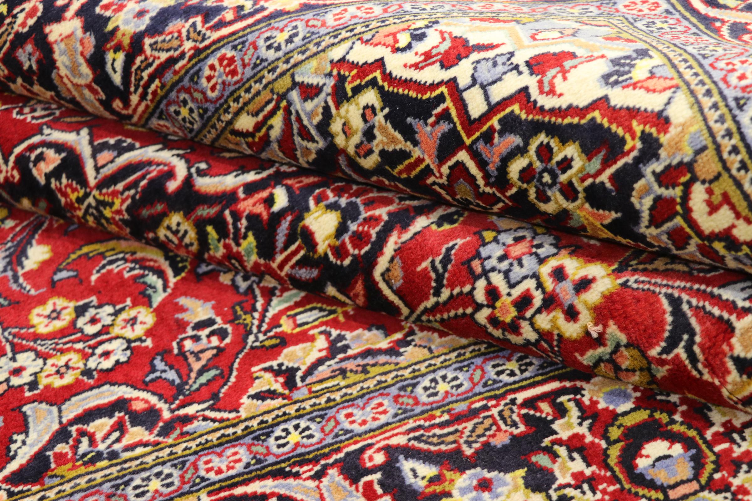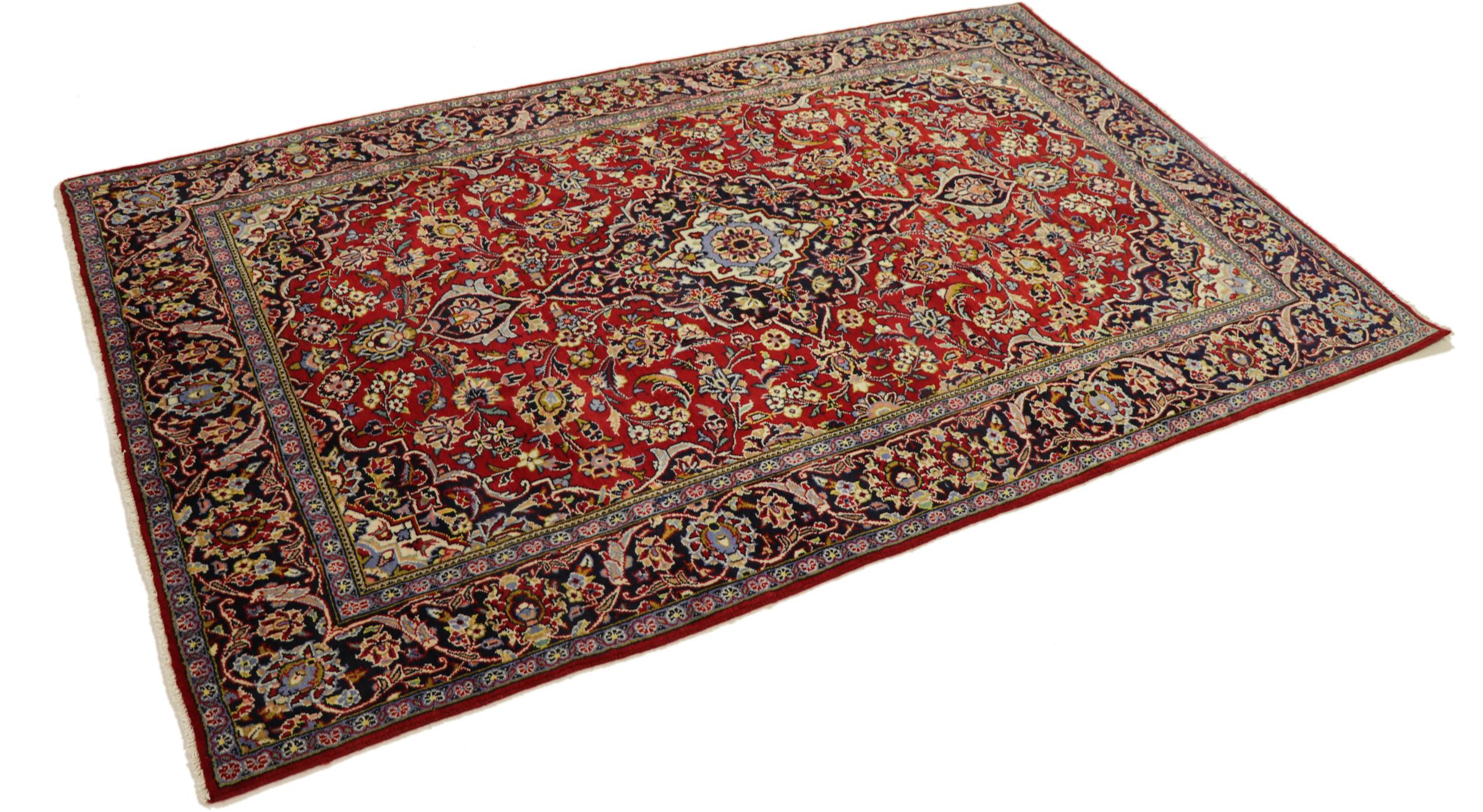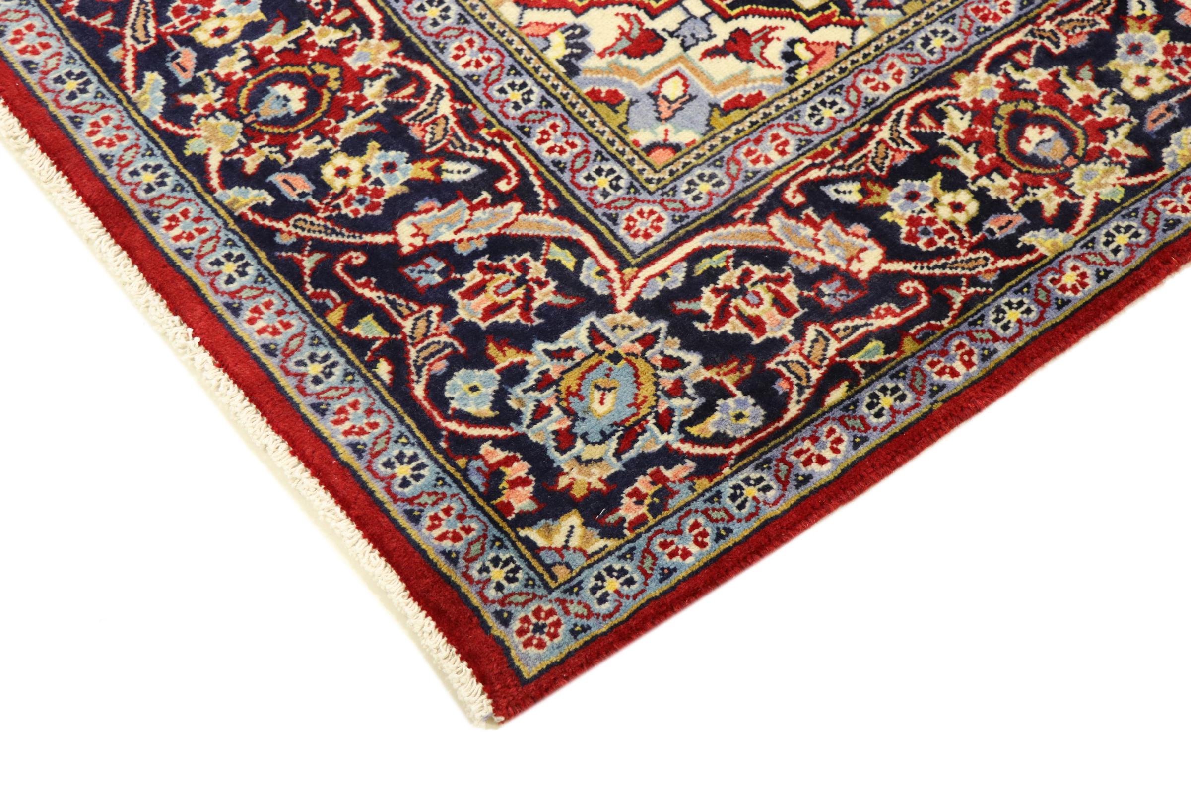 Tämä Kashanista (Keshan) kotoisin oleva matto on hyvin perinteinen ja tyypillinen persialainen muotoilu kauniilla koristeilla. Kashan-matot ovat erittäin suosittuja poikkeuksellisen tyylikkään muotoilunsa ansiosta. Nämä matot ovat peräisin Kashanista, muinaisen Silkkitien varrella sijaitsevasta kaupungista. Tämä matto on solmittu käsin korkealaatuisesta lampaanvillasta, ja se tulee olemaan ainutlaatuinen kohokohta kotiisi.
