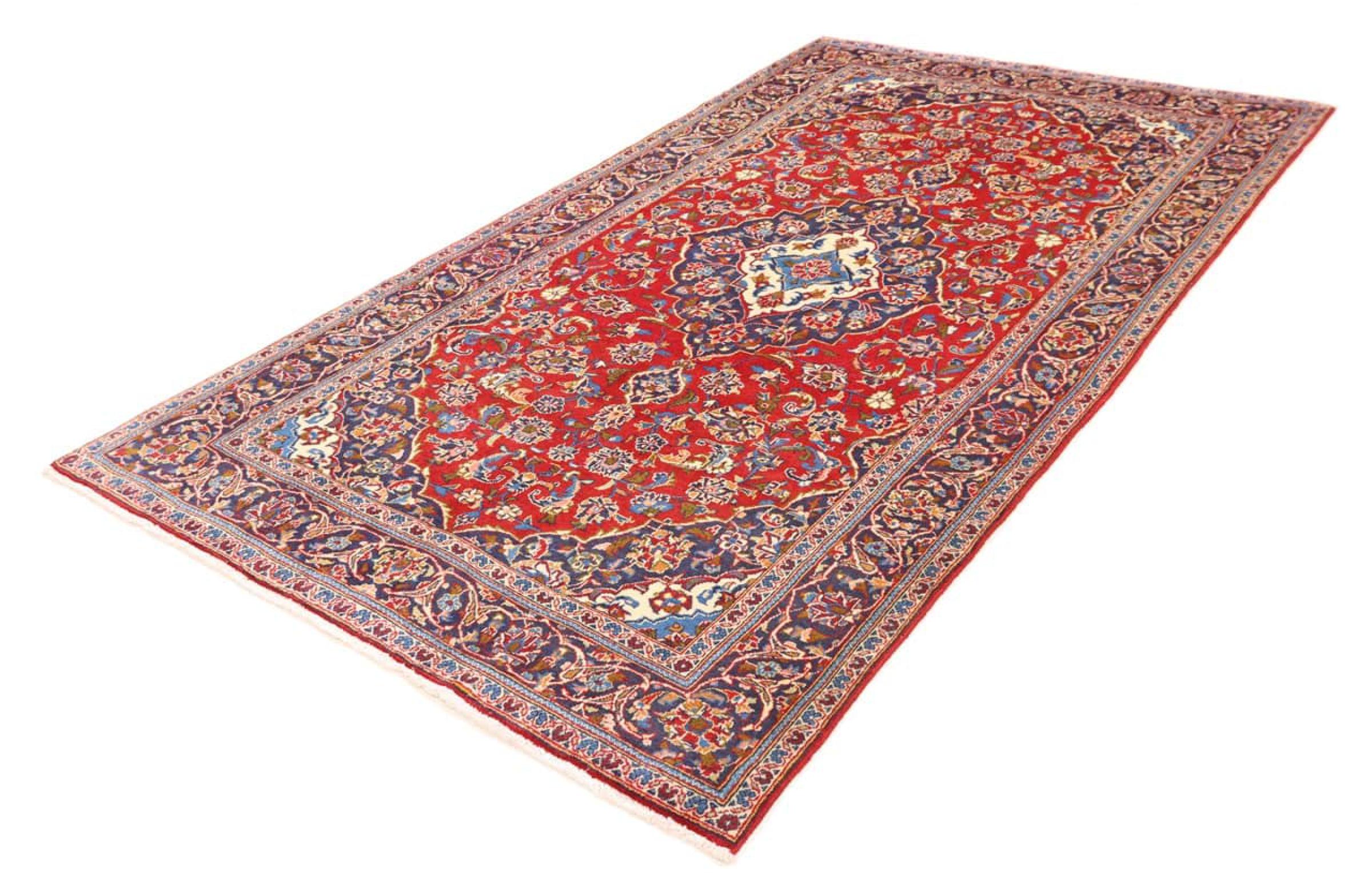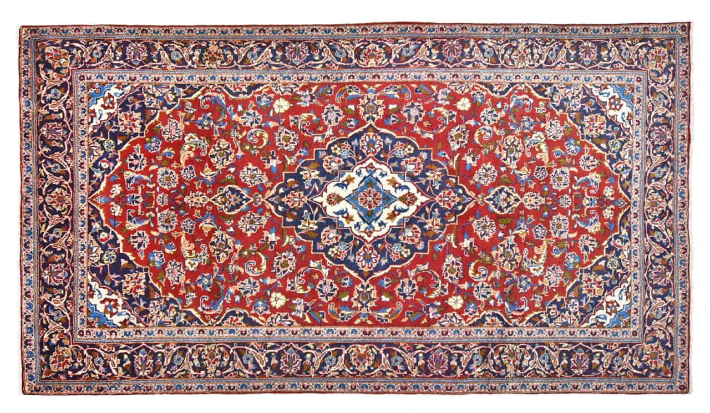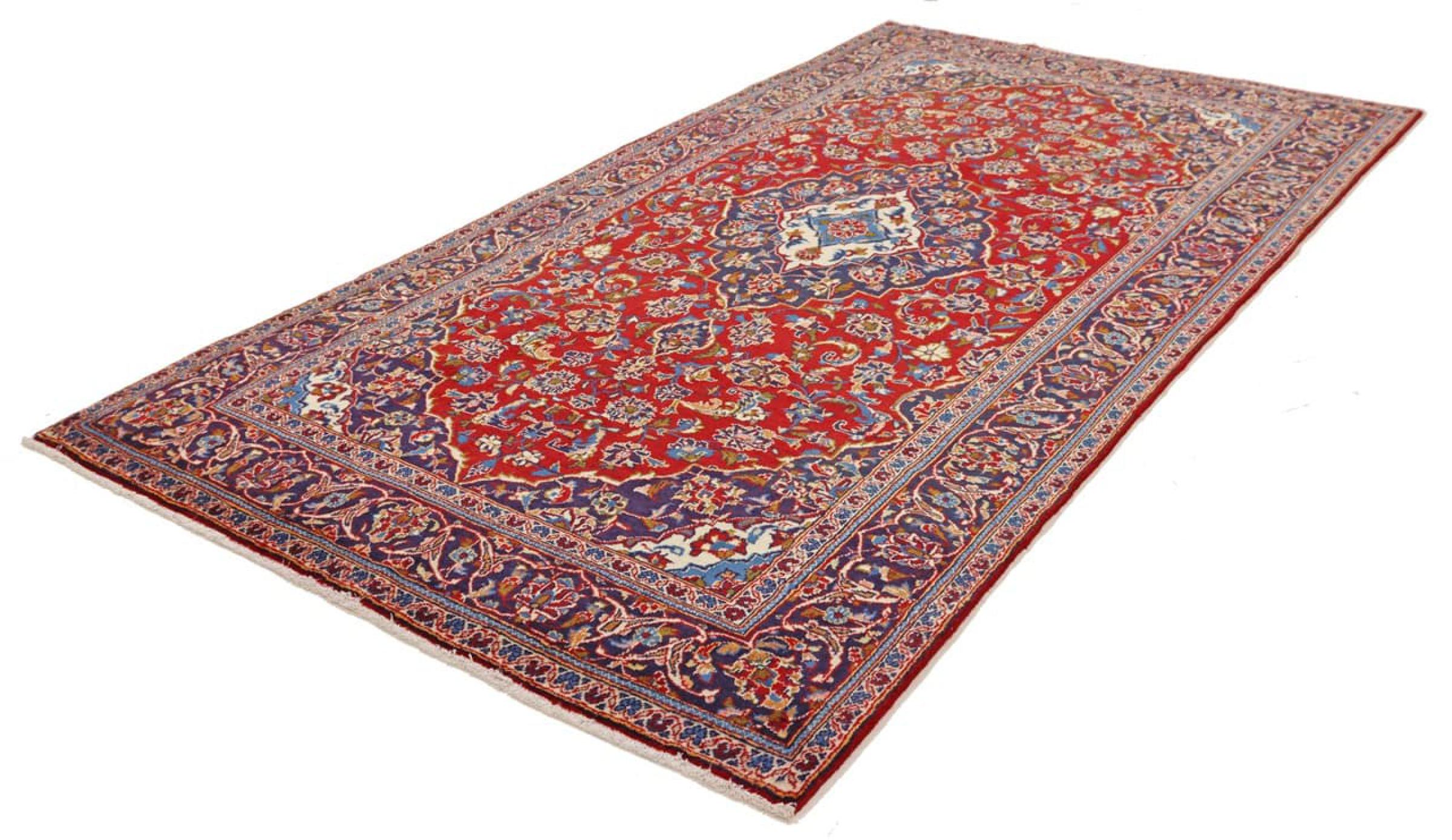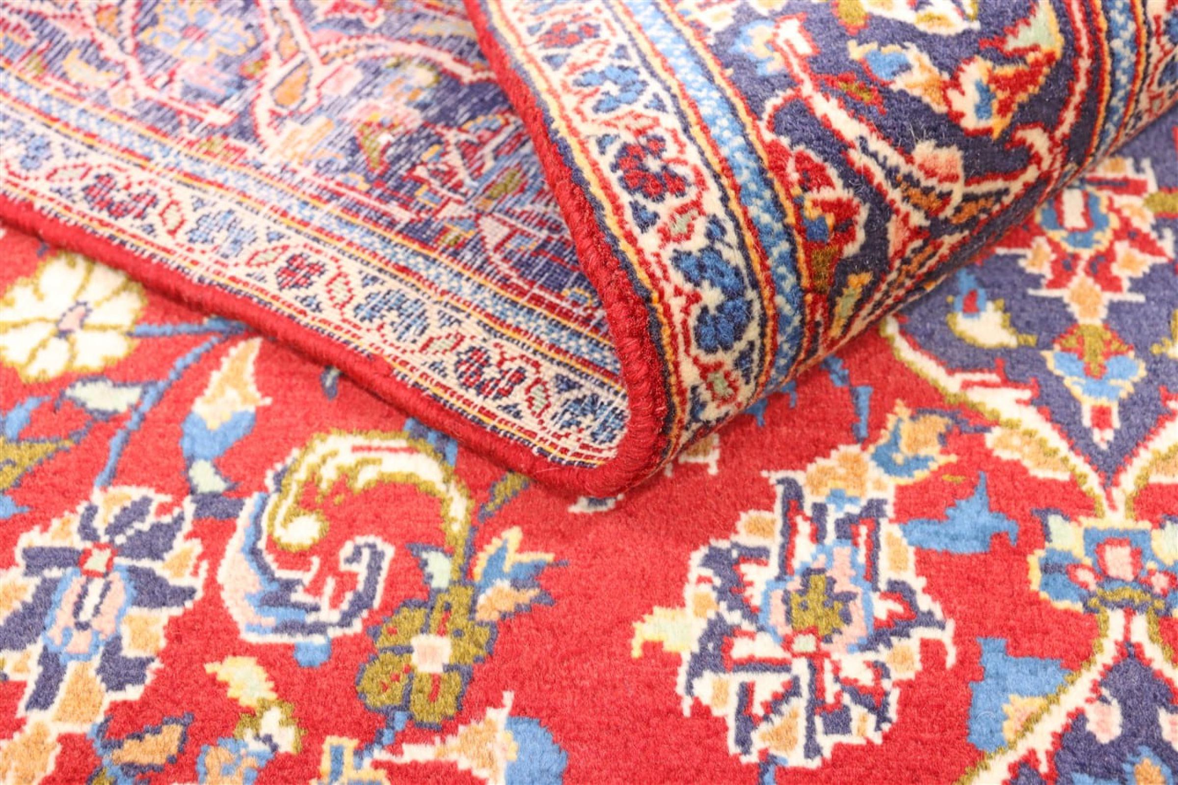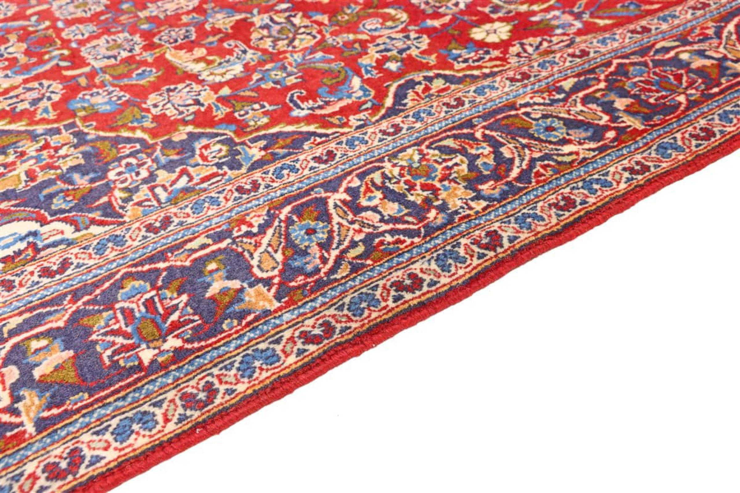 Tämä Kashanista (Keshan) kotoisin oleva matto on hyvin perinteinen ja tyypillinen persialainen muotoilu kauniilla koristeilla. Kashan-matot ovat erittäin suosittuja poikkeuksellisen tyylikkään muotoilunsa ansiosta. Nämä matot ovat peräisin Kashanista, muinaisen Silkkitien varrella sijaitsevasta kaupungista. Tämä matto on solmittu käsin korkealaatuisesta lampaanvillasta, ja se tulee olemaan ainutlaatuinen kohokohta kotiisi.