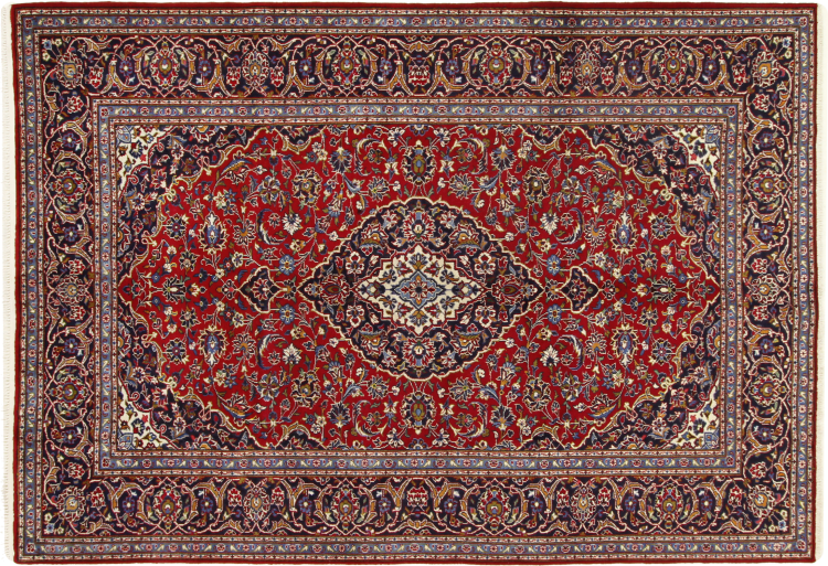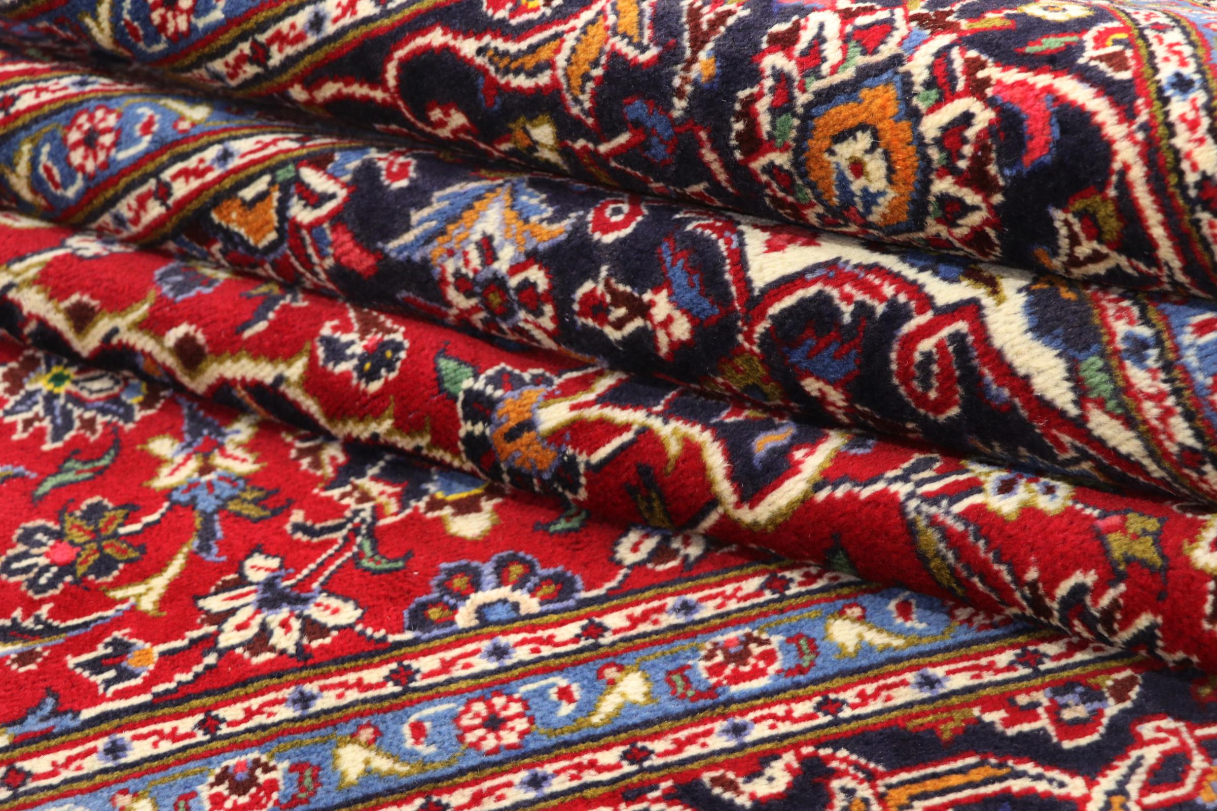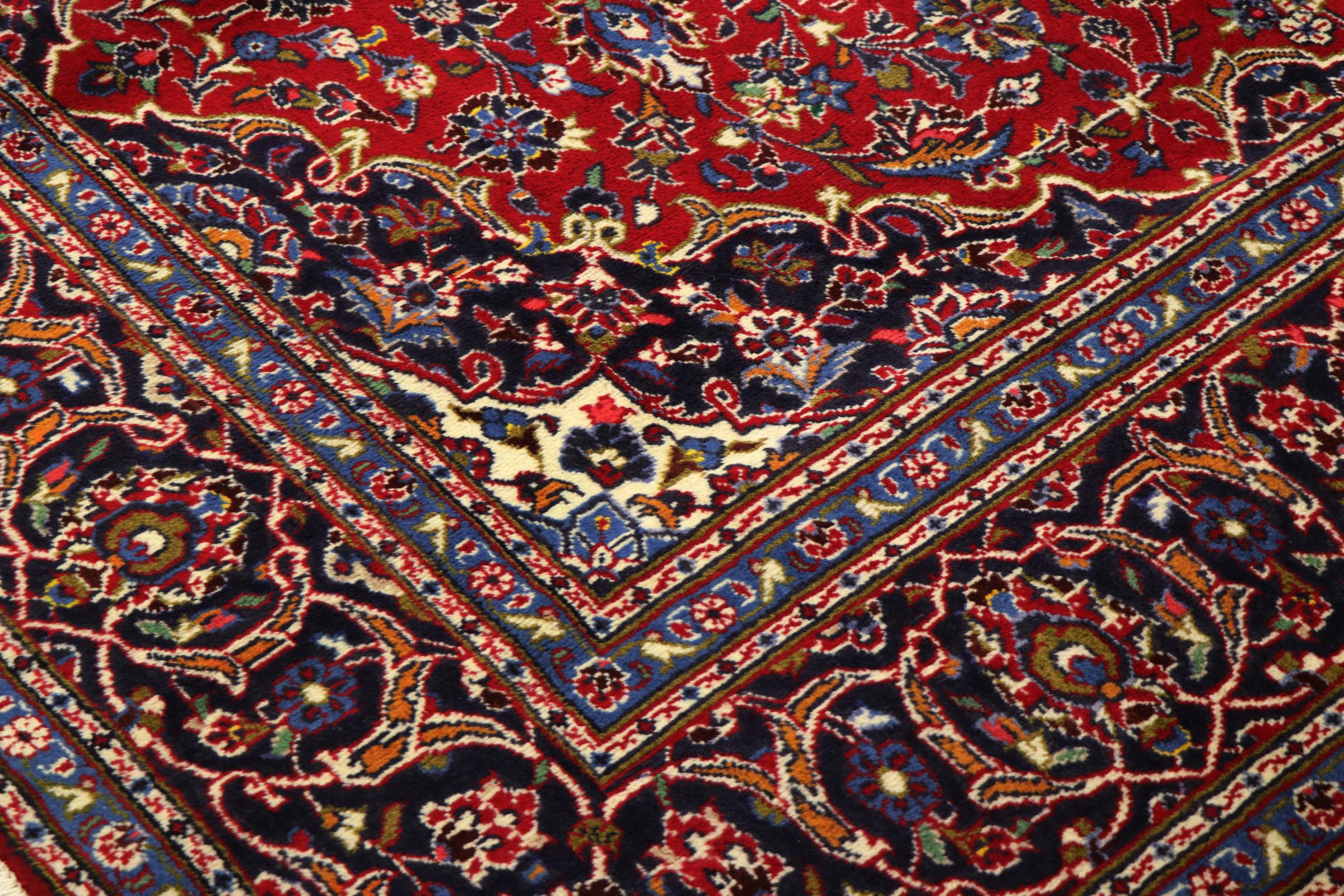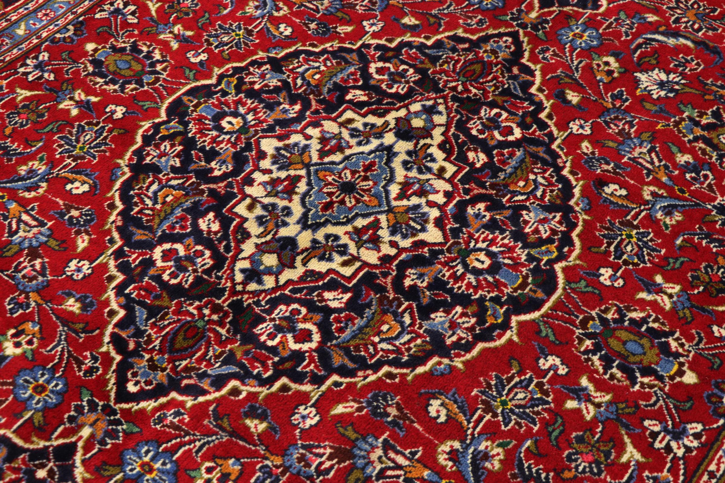 Tämä Kashanista (Keshan) kotoisin oleva matto on hyvin perinteinen ja tyypillinen persialainen muotoilu kauniilla koristeilla. Kashan-matot ovat erittäin suosittuja poikkeuksellisen tyylikkään muotoilunsa ansiosta. Nämä matot ovat peräisin Kashanista, muinaisen Silkkitien varrella sijaitsevasta kaupungista. Tämä matto on solmittu käsin korkealaatuisesta lampaanvillasta, ja se tulee olemaan ainutlaatuinen kohokohta kotiisi.