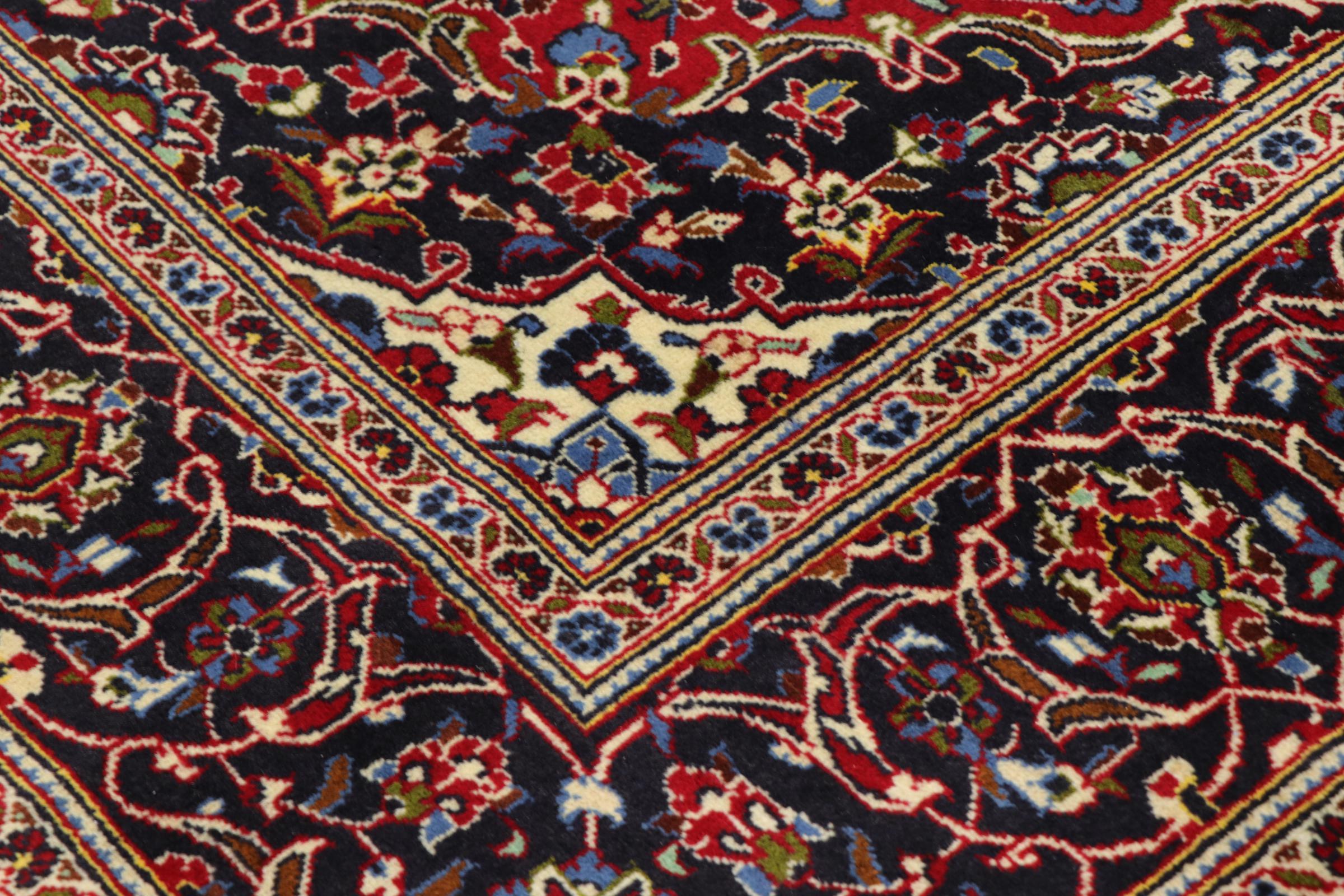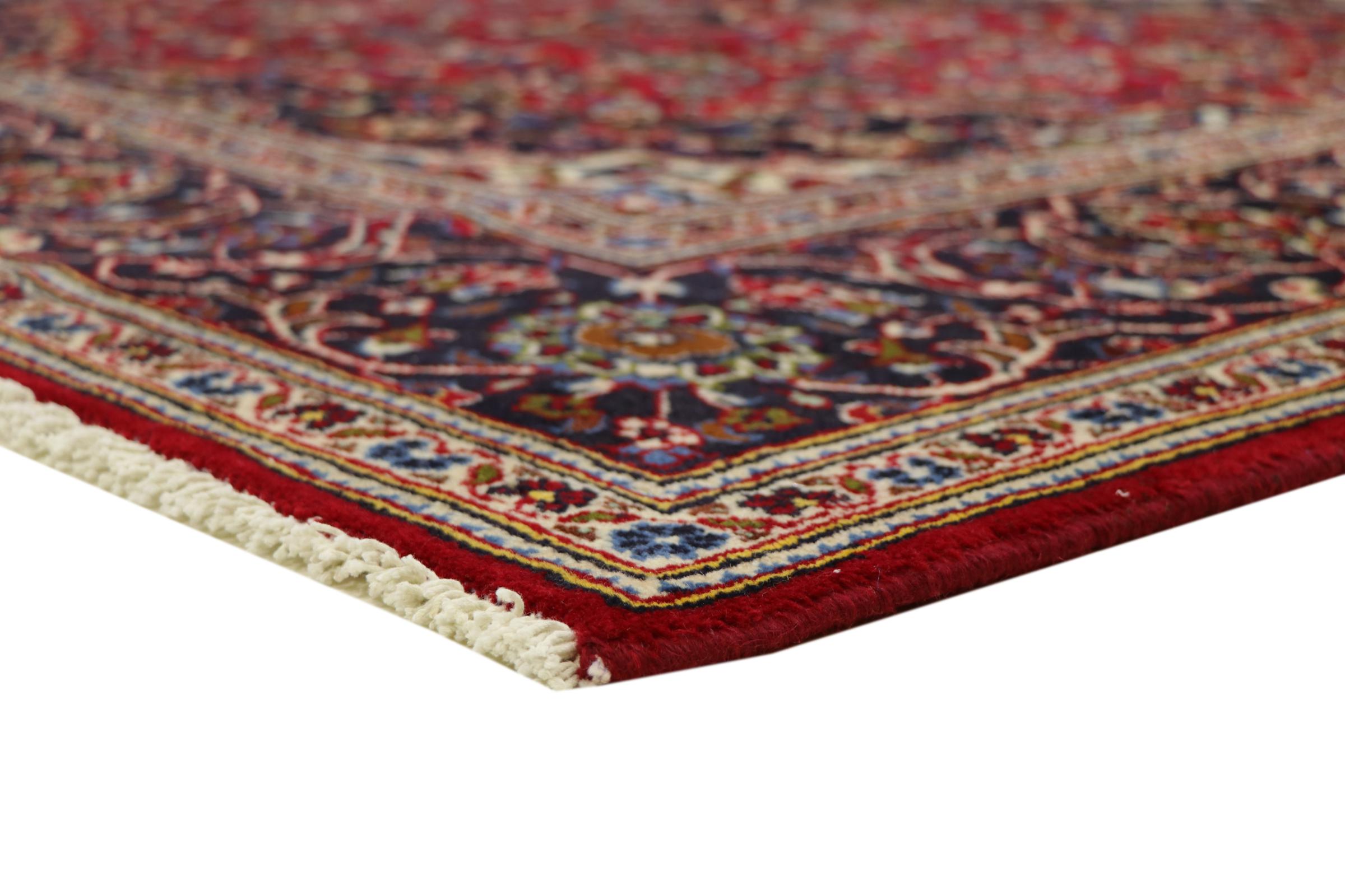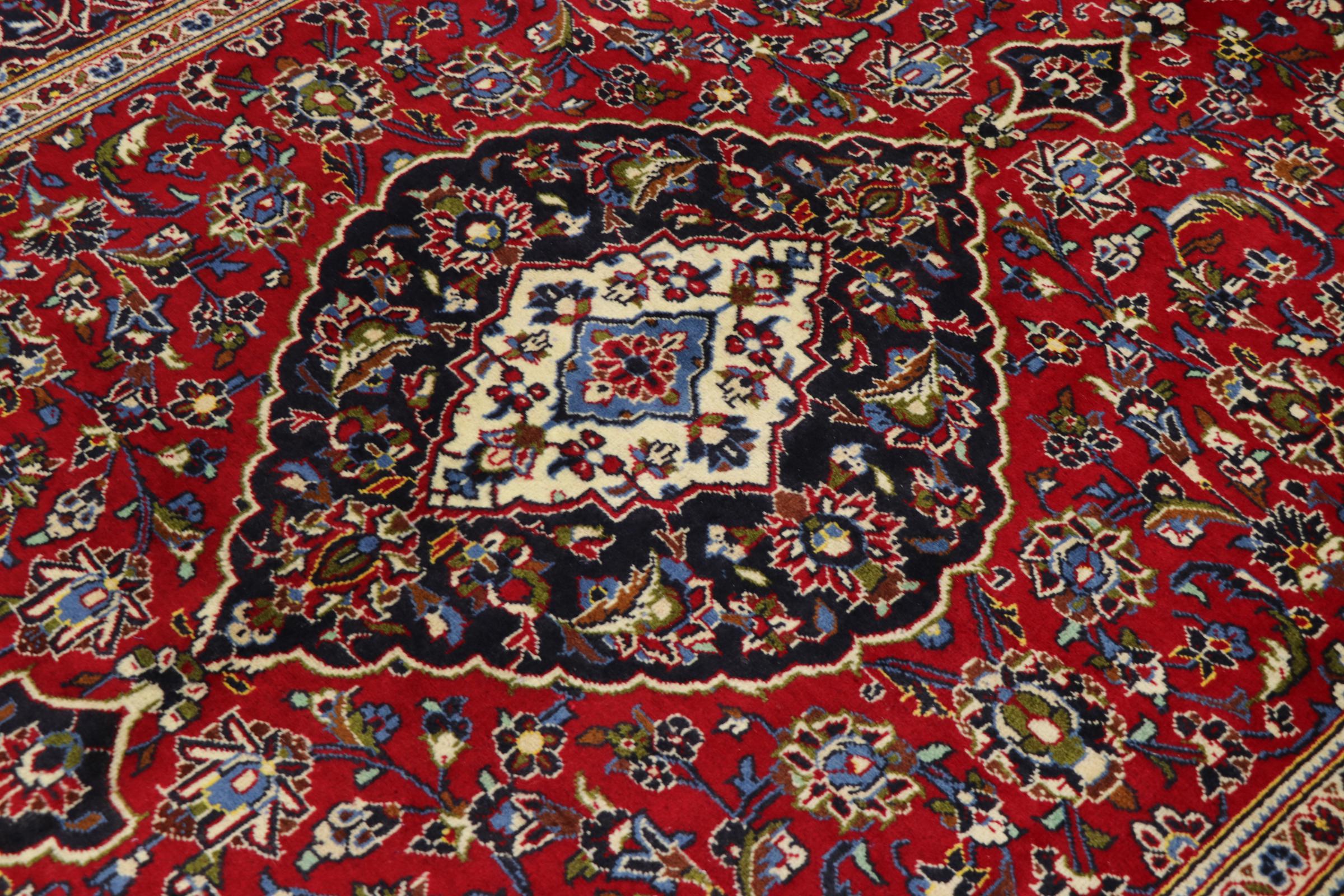 Tämä Kashanista (Keshan) kotoisin oleva matto on hyvin perinteinen ja tyypillinen persialainen muotoilu kauniilla koristeilla. Kashan-matot ovat erittäin suosittuja poikkeuksellisen tyylikkään muotoilunsa ansiosta. Nämä matot ovat peräisin Kashanista, muinaisen Silkkitien varrella sijaitsevasta kaupungista. Tämä matto on solmittu käsin korkealaatuisesta lampaanvillasta, ja se tulee olemaan ainutlaatuinen kohokohta kotiisi.