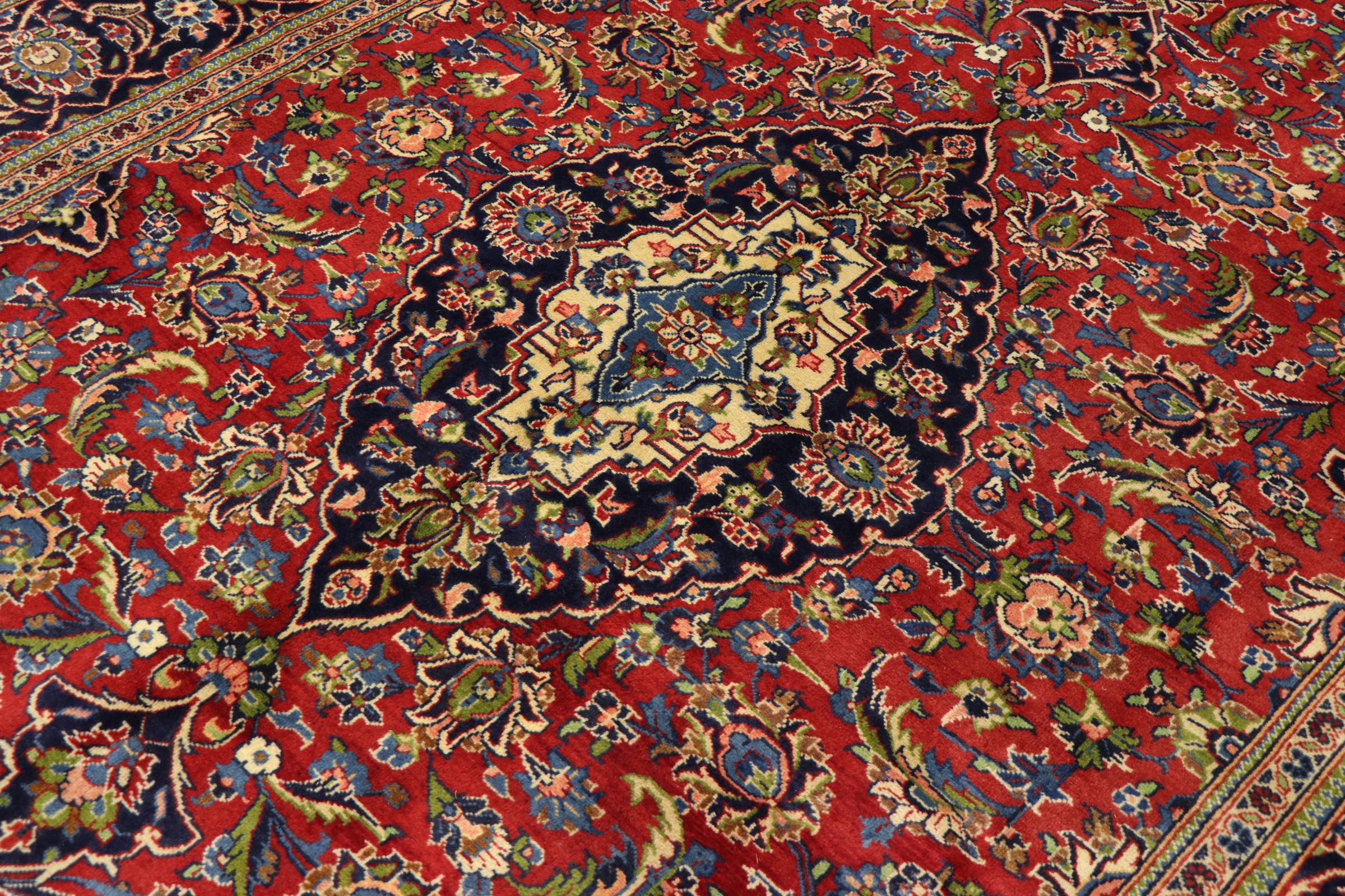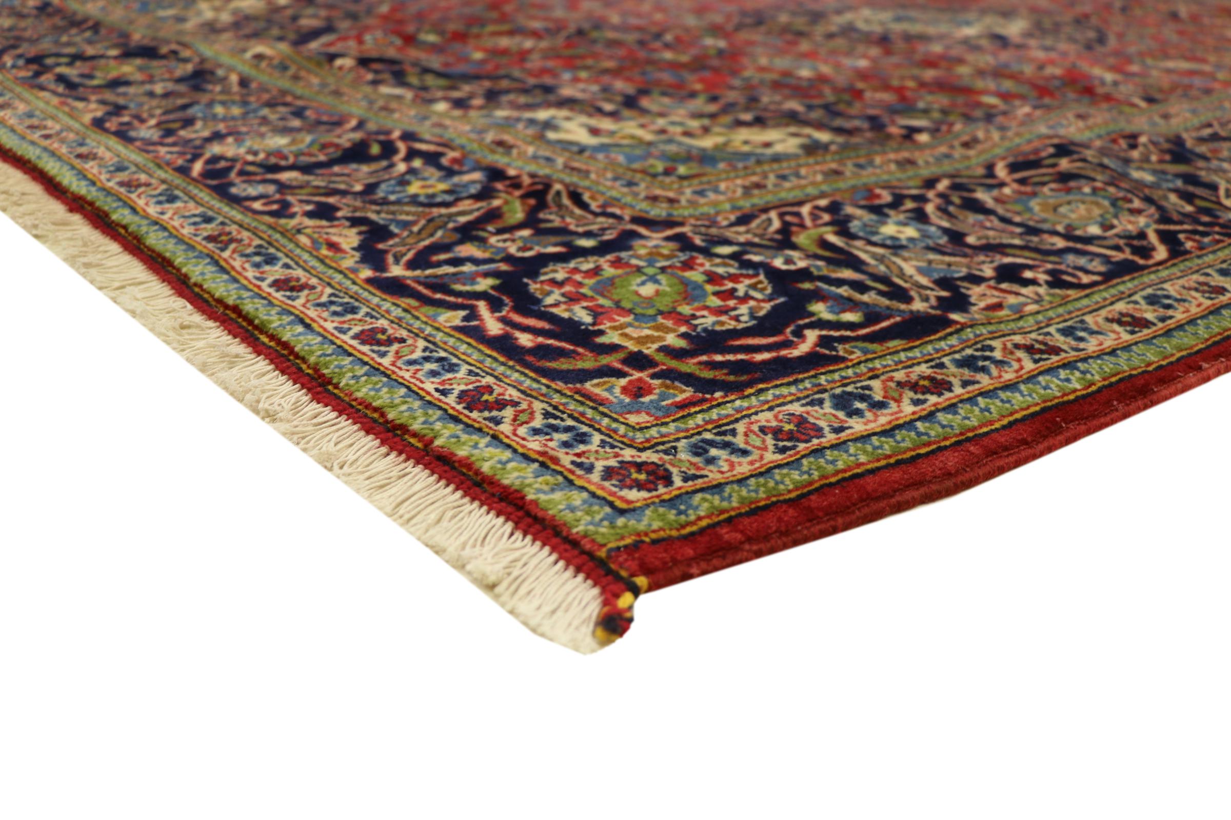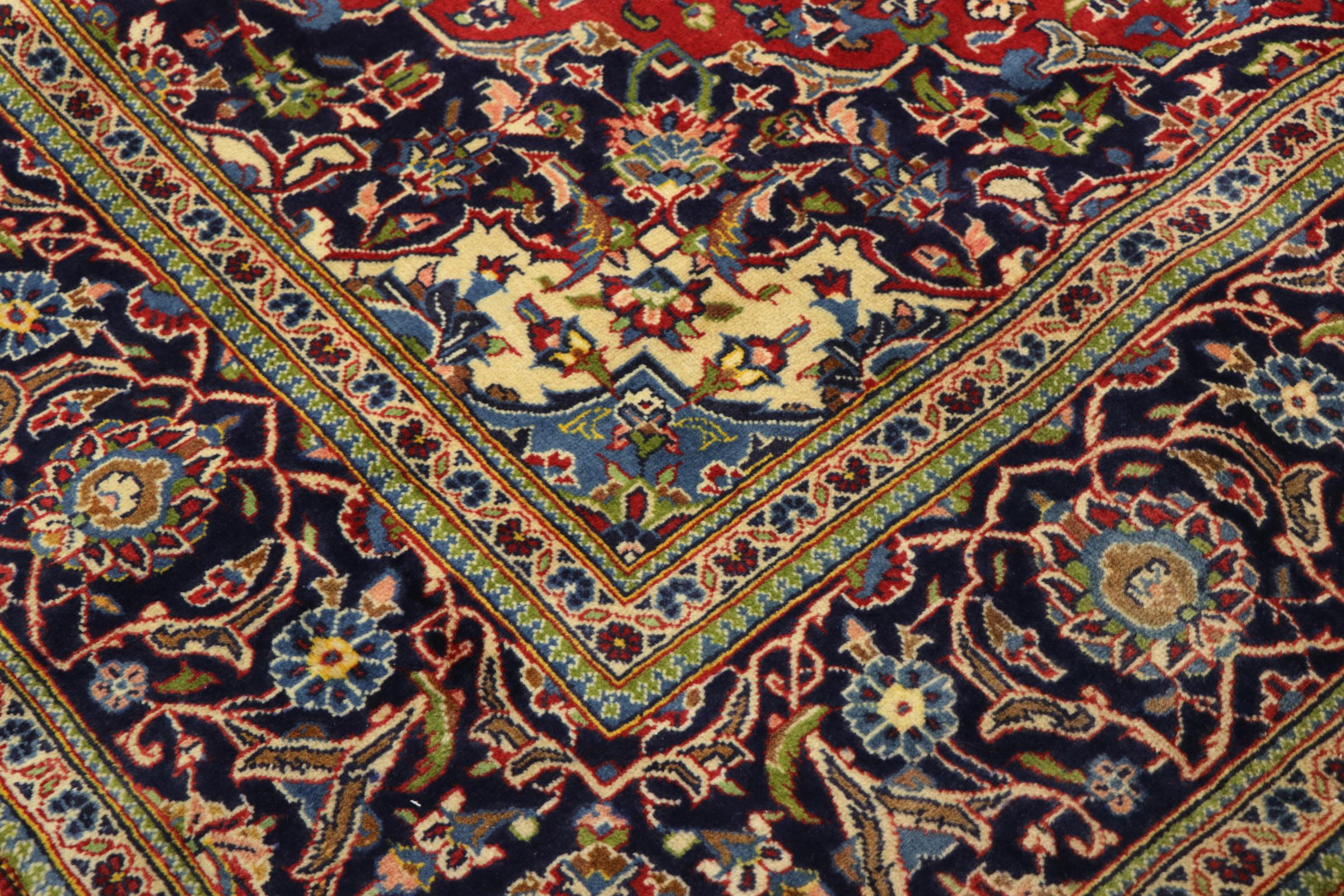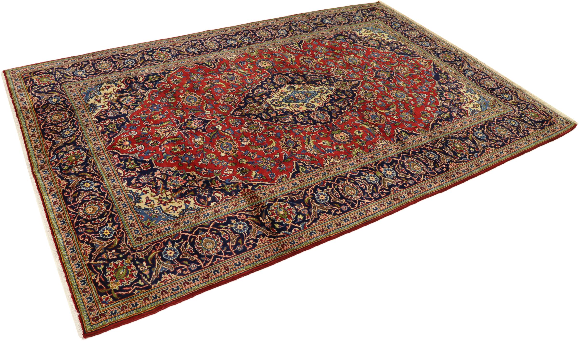 Tämä Kashanista (Keshan) kotoisin oleva matto on hyvin perinteinen ja tyypillinen persialainen muotoilu kauniilla koristeilla. Kashan-matot ovat erittäin suosittuja poikkeuksellisen tyylikkään muotoilunsa ansiosta. Nämä matot ovat peräisin Kashanista, muinaisen Silkkitien varrella sijaitsevasta kaupungista. Tämä matto on solmittu käsin korkealaatuisesta lampaanvillasta, ja se tulee olemaan ainutlaatuinen kohokohta kotiisi.