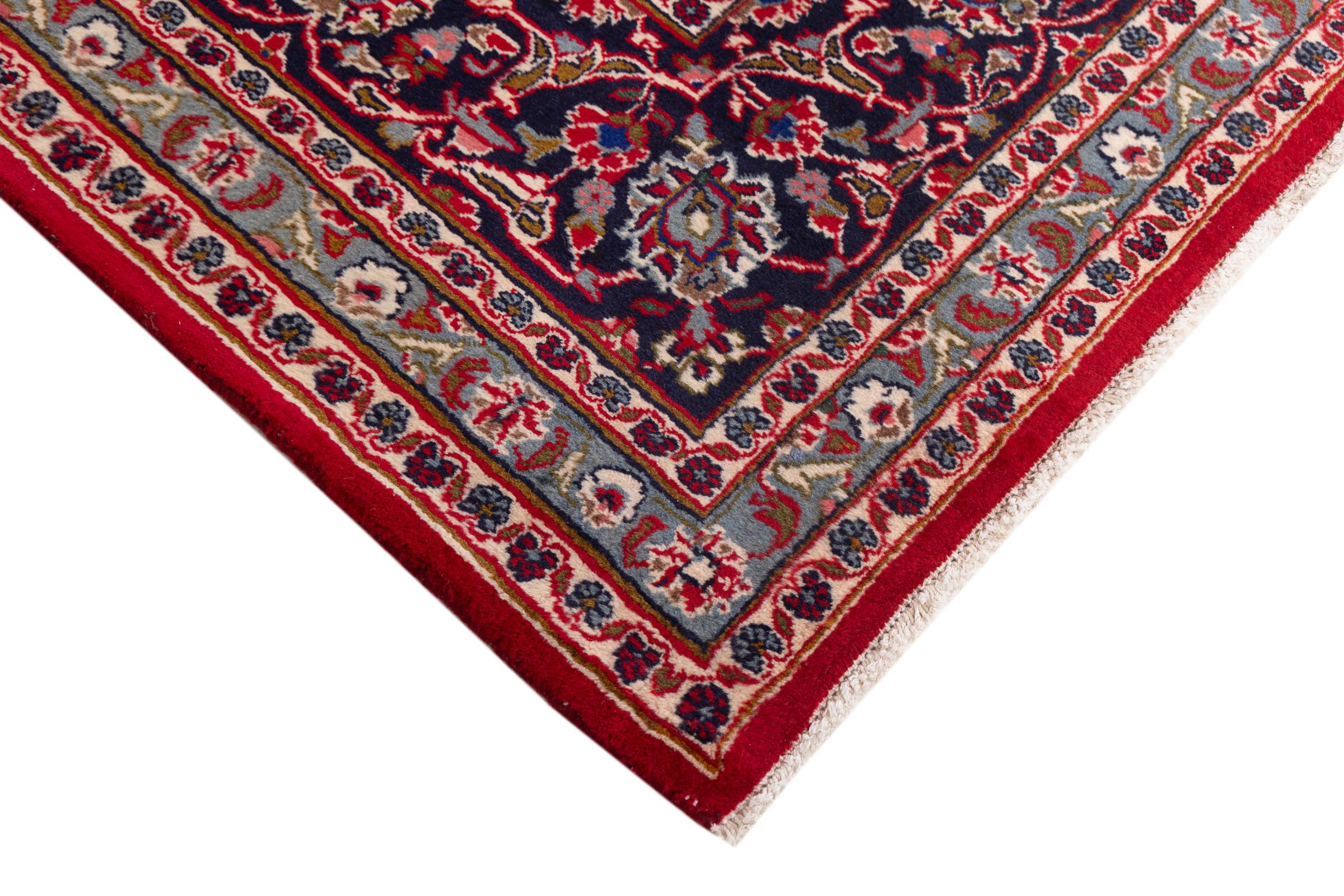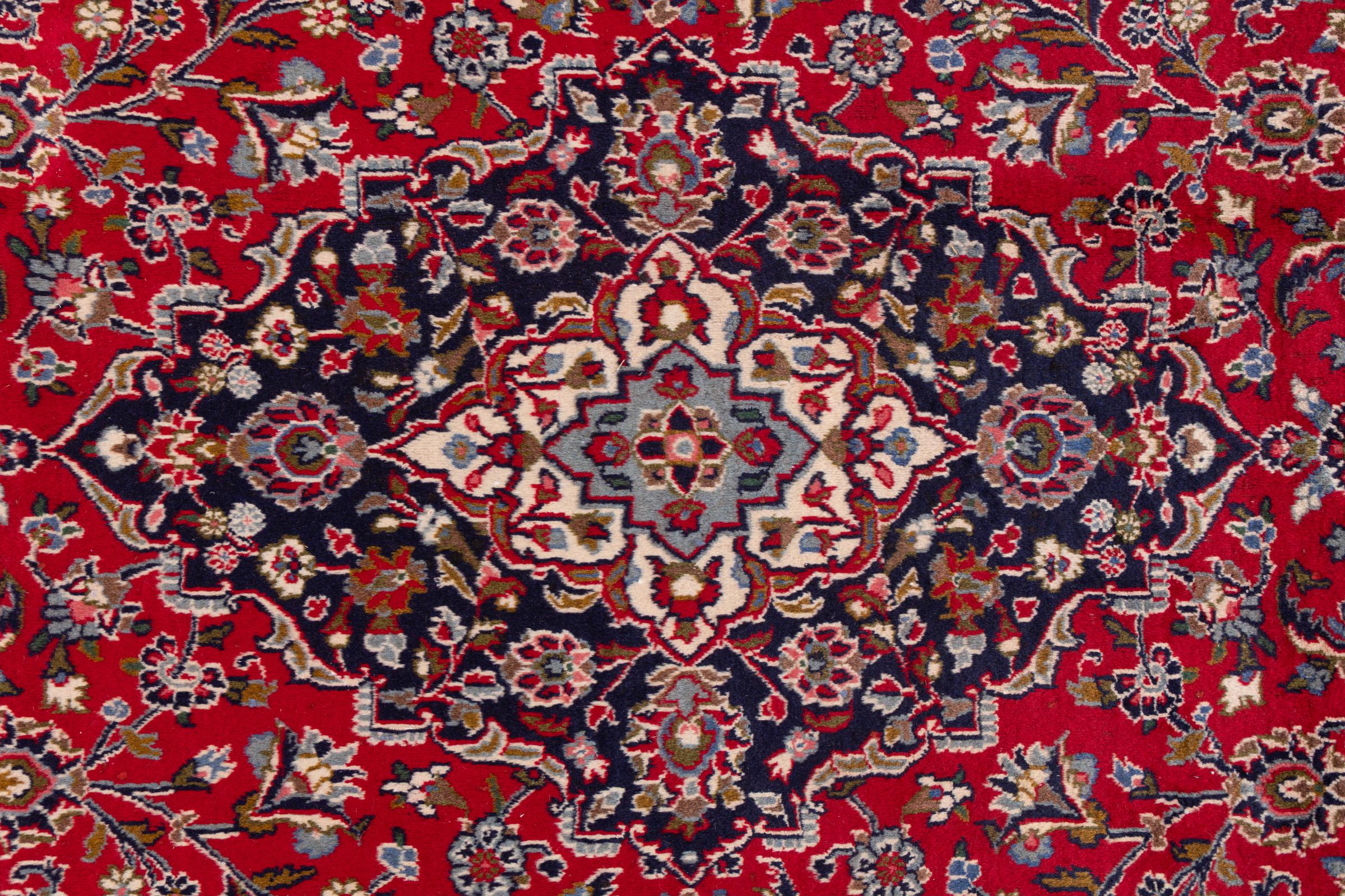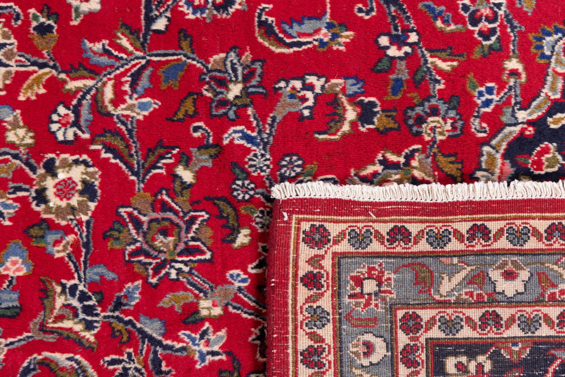 Tämä Kashanista (Keshan) kotoisin oleva matto on hyvin perinteinen ja tyypillinen persialainen muotoilu kauniilla koristeilla. Kashan-matot ovat erittäin suosittuja poikkeuksellisen tyylikkään muotoilunsa ansiosta. Nämä matot ovat peräisin Kashanista, muinaisen Silkkitien varrella sijaitsevasta kaupungista. Tämä matto on solmittu käsin korkealaatuisesta lampaanvillasta, ja se tulee olemaan ainutlaatuinen kohokohta kotiisi.
