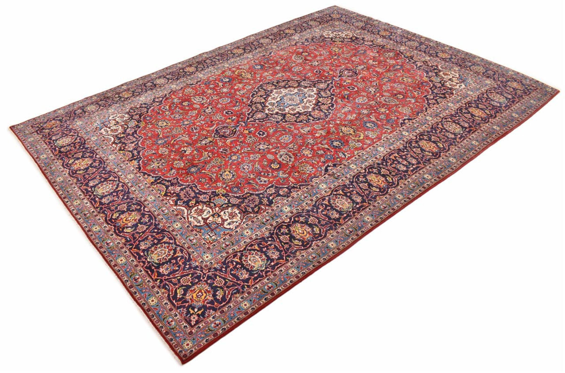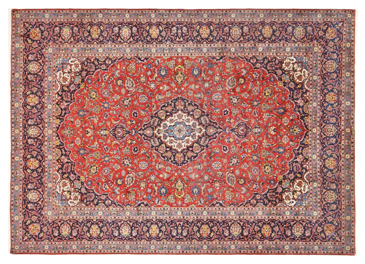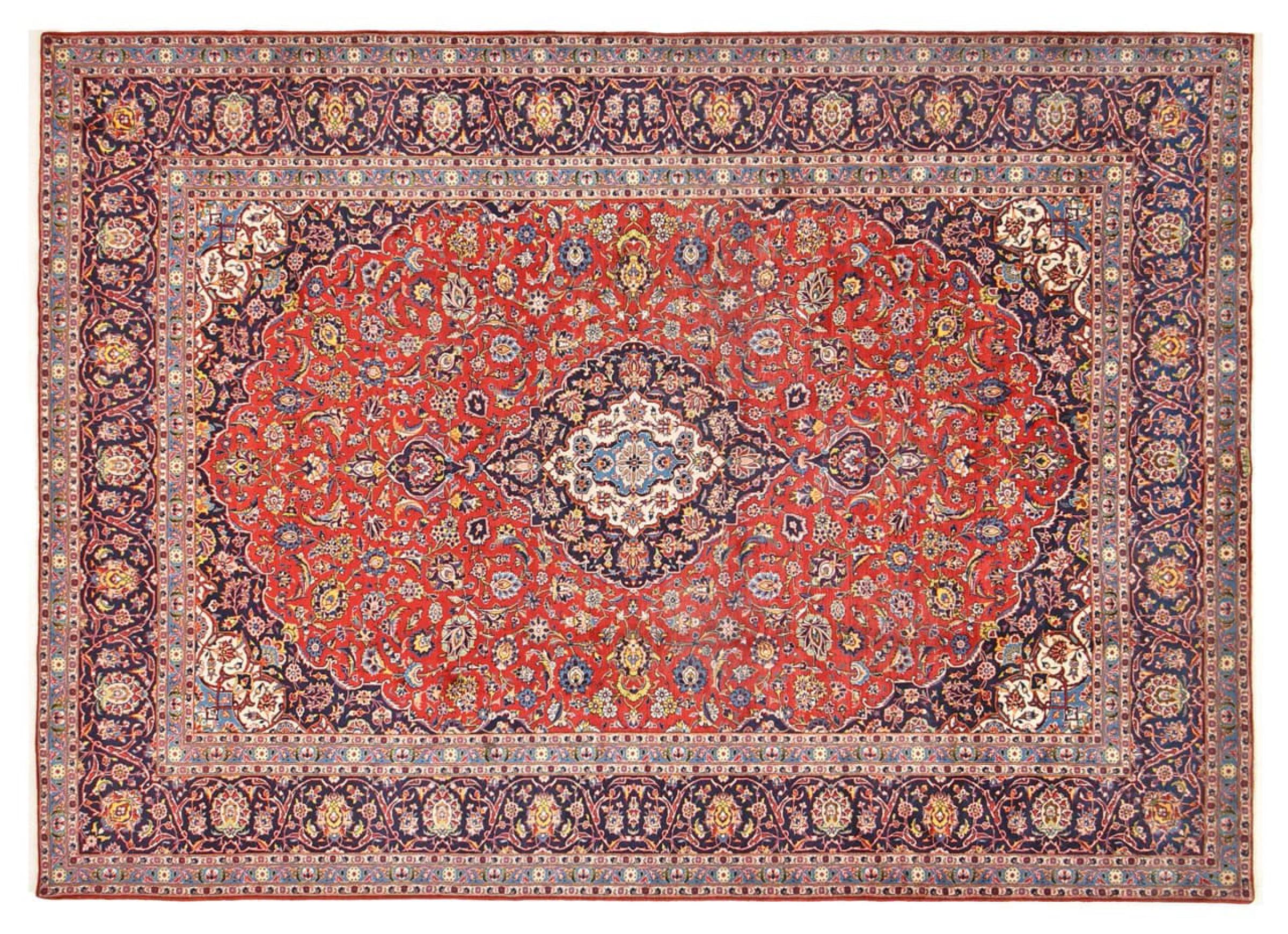 Tämä Kashanista (Keshan) kotoisin oleva matto on hyvin perinteinen ja tyypillinen persialainen muotoilu kauniilla koristeilla. Kashan-matot ovat erittäin suosittuja poikkeuksellisen tyylikkään muotoilunsa ansiosta. Nämä matot ovat peräisin Kashanista, muinaisen Silkkitien varrella sijaitsevasta kaupungista. Tämä matto on solmittu käsin korkealaatuisesta lampaanvillasta, ja se tulee olemaan ainutlaatuinen kohokohta kotiisi.